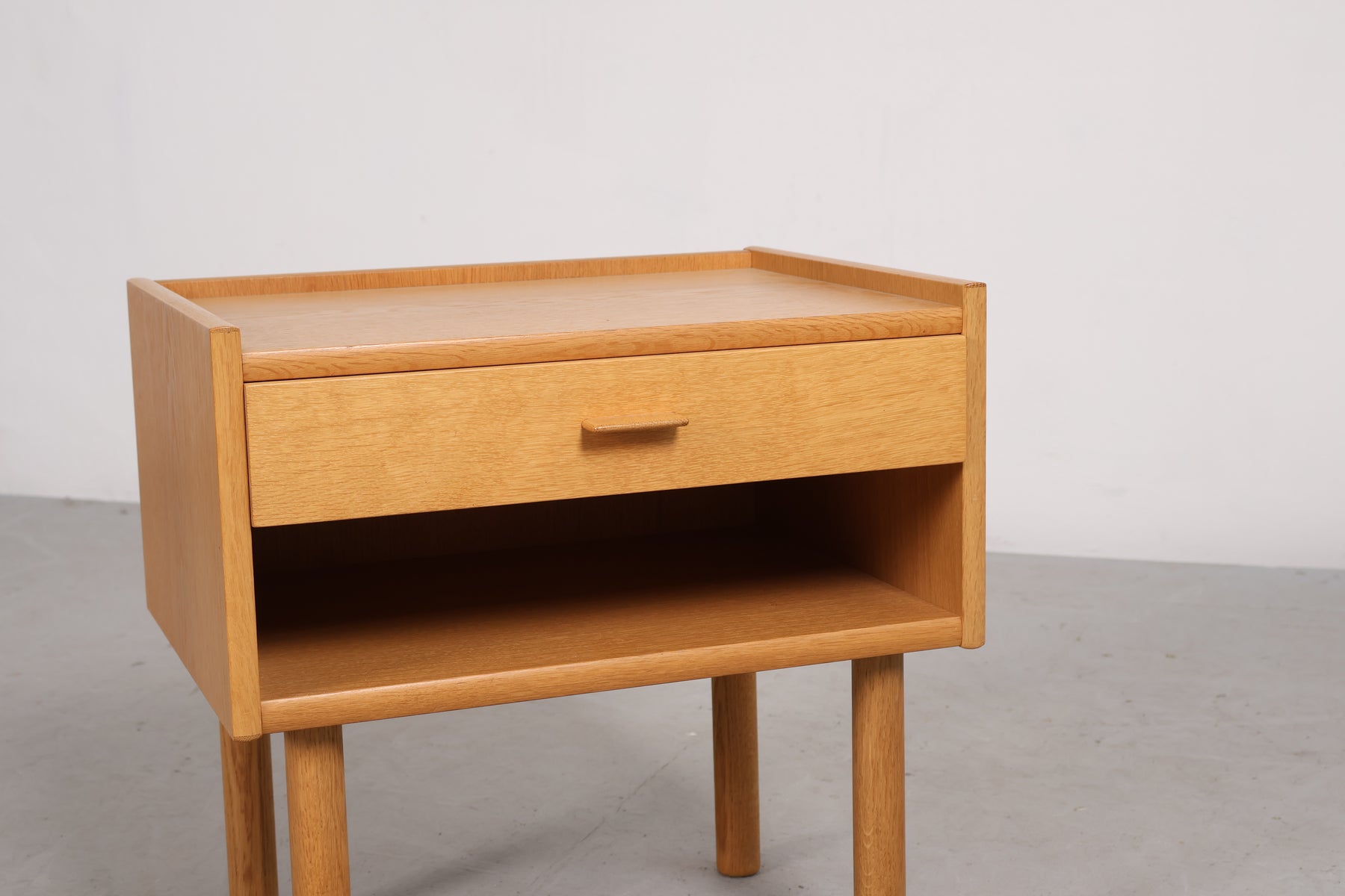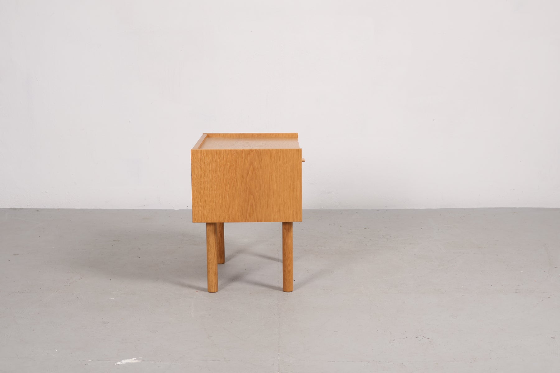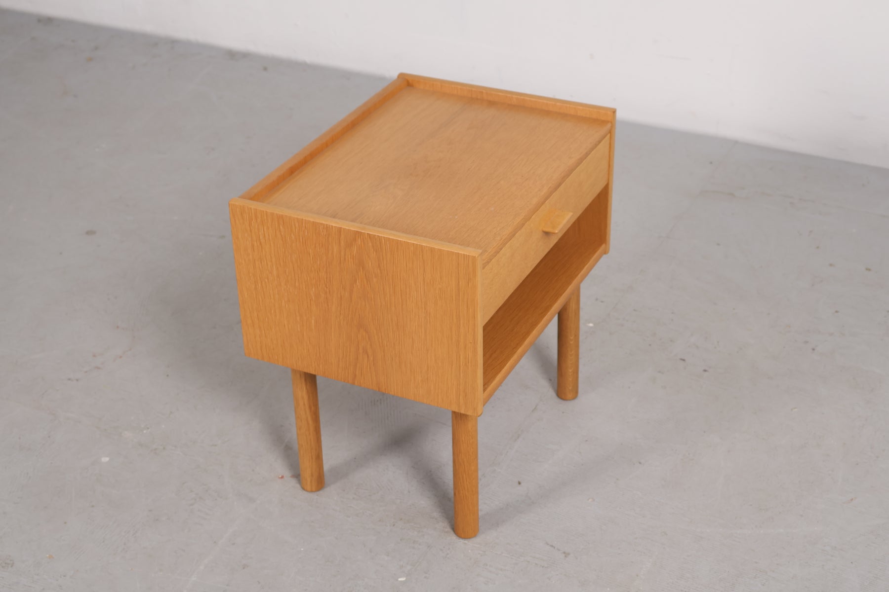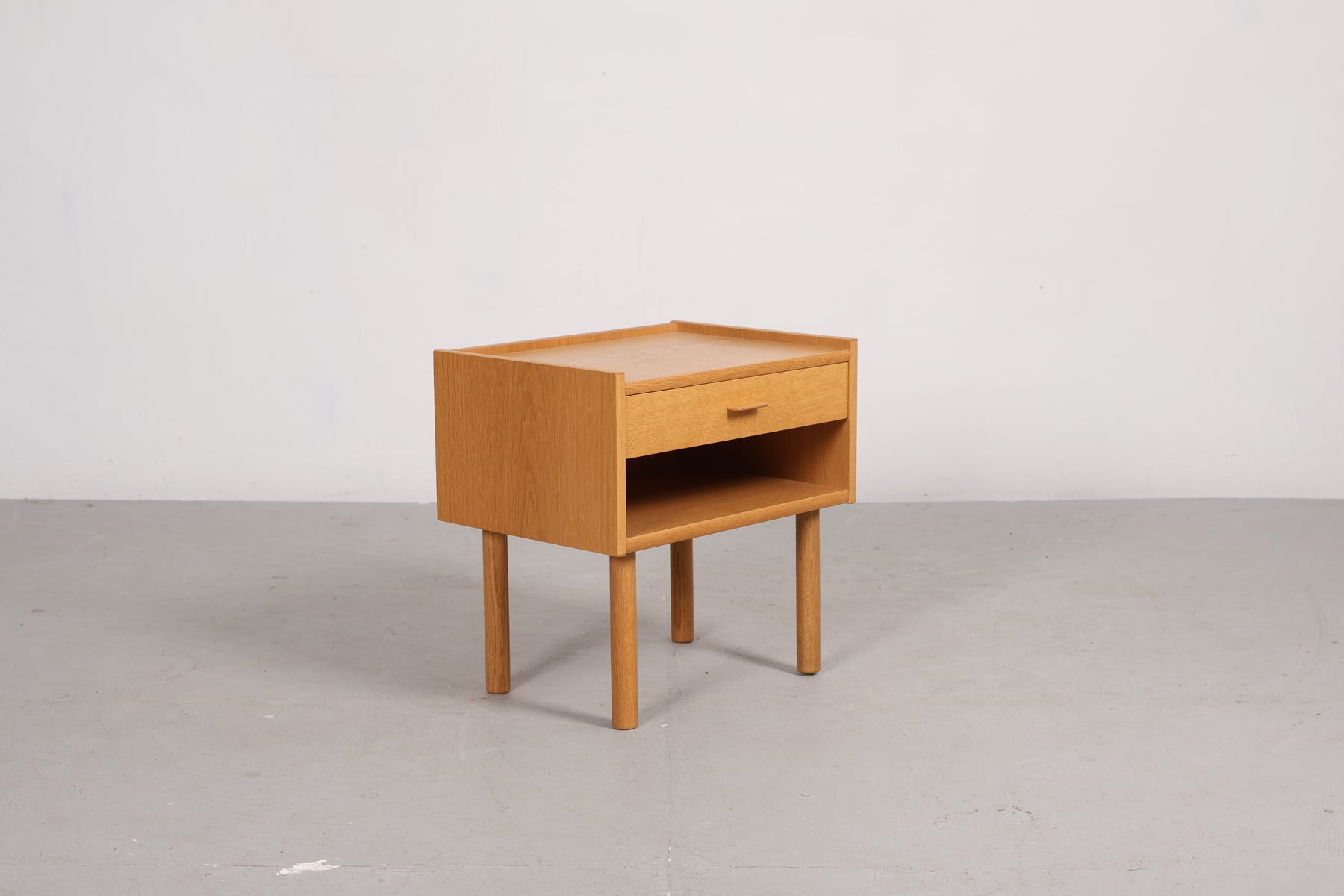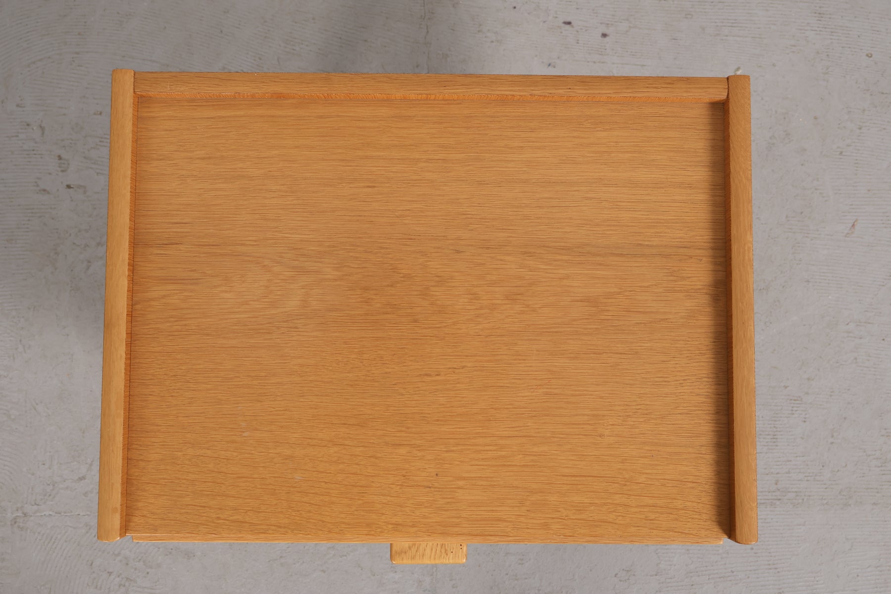 Nachttische aus den 60er-Jahren von Hans Wegner. Hergestellt in Dänemark. Gefertigt aus Eiche. Höhe 48 cm, Breite 48 cm, Tiefe 35 cm.