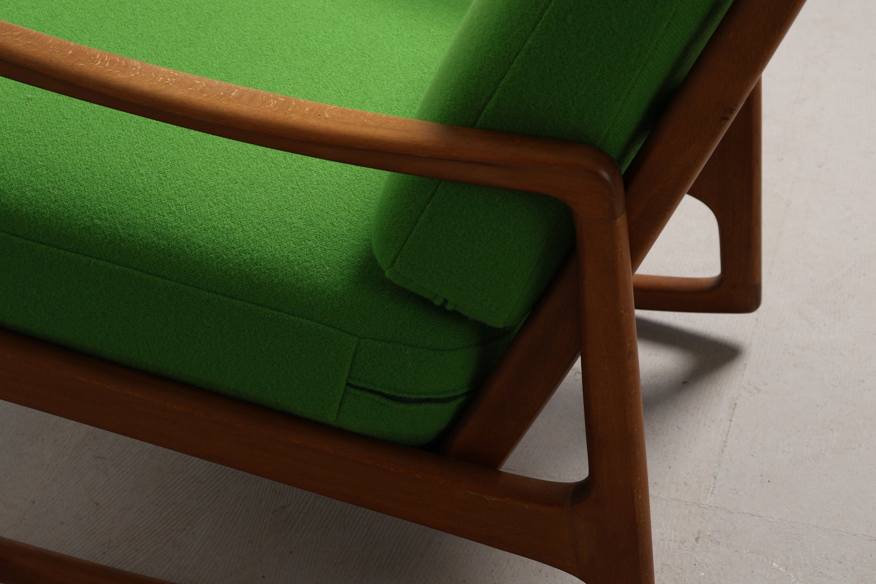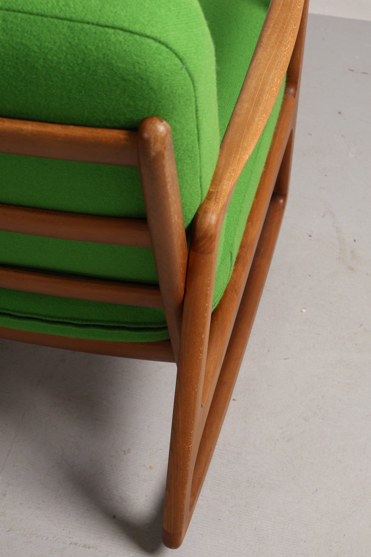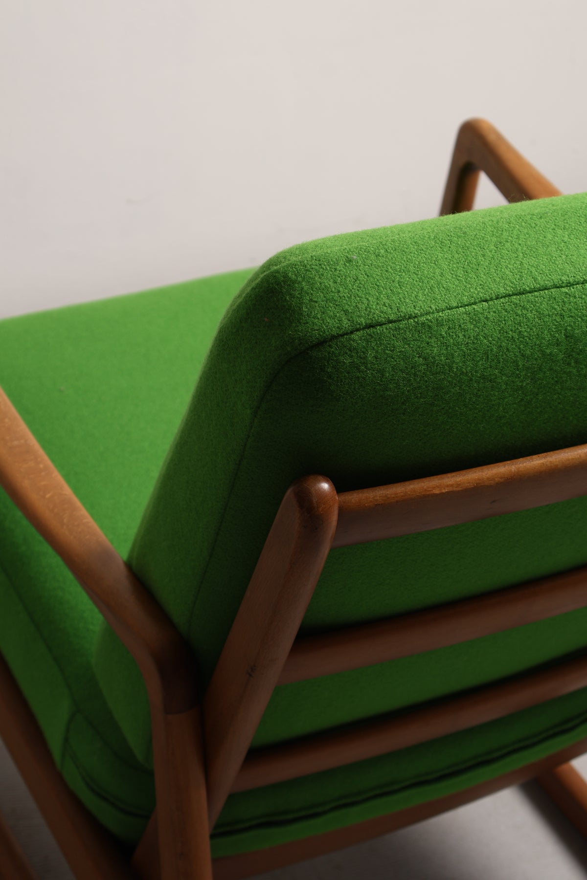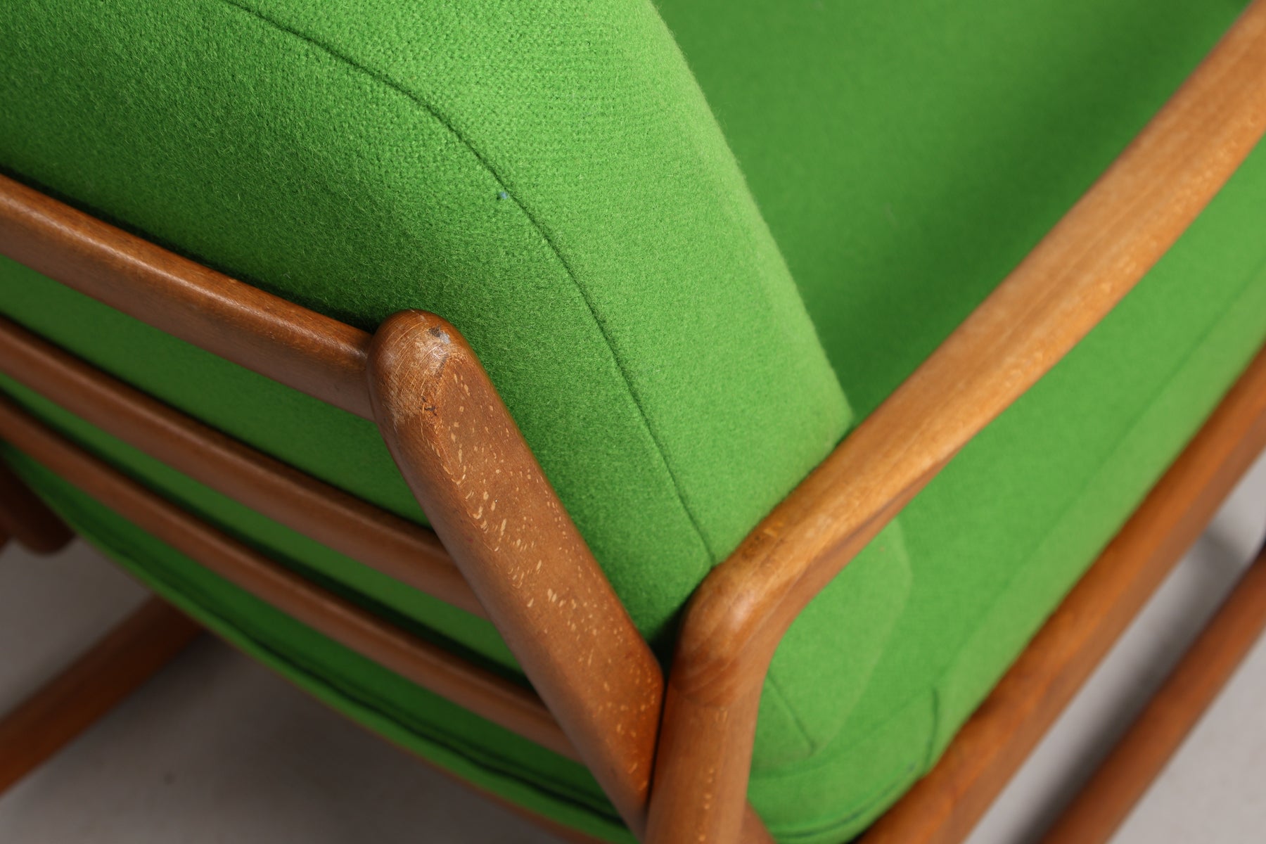 Schaukelstuhl „FD 120“ aus den 60er-Jahren von Ole Wanscher. Hergestellt in Dänemark. Gefertigt aus Eiche. Höhe 85 cm, Breite 62 cm, Tiefe 76 cm.