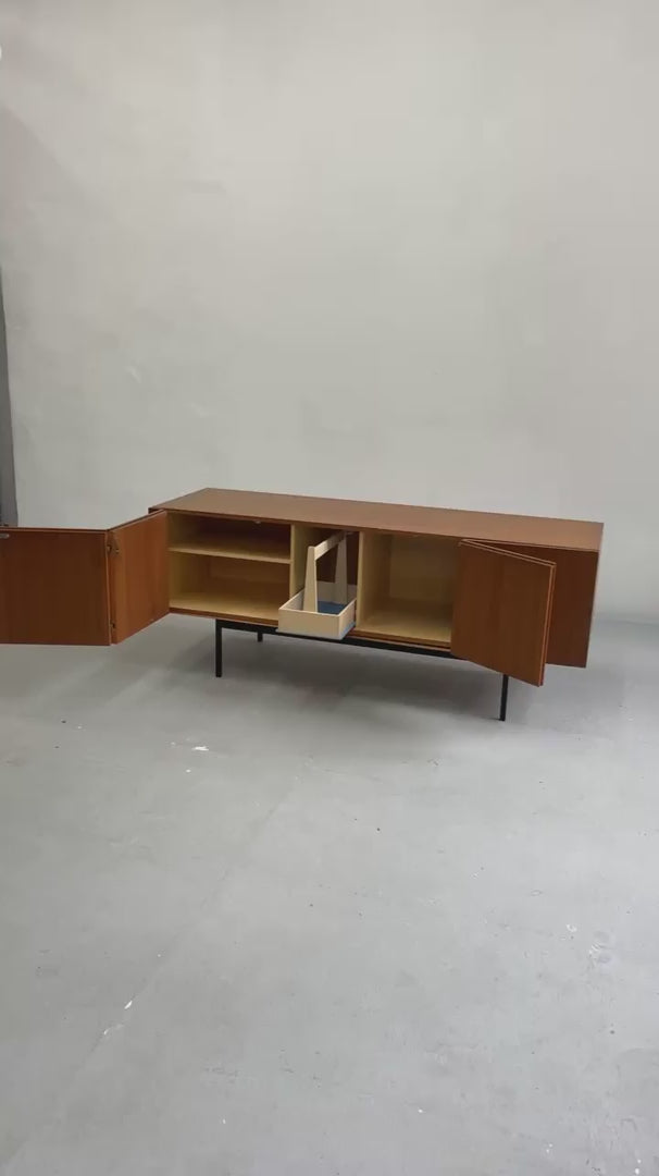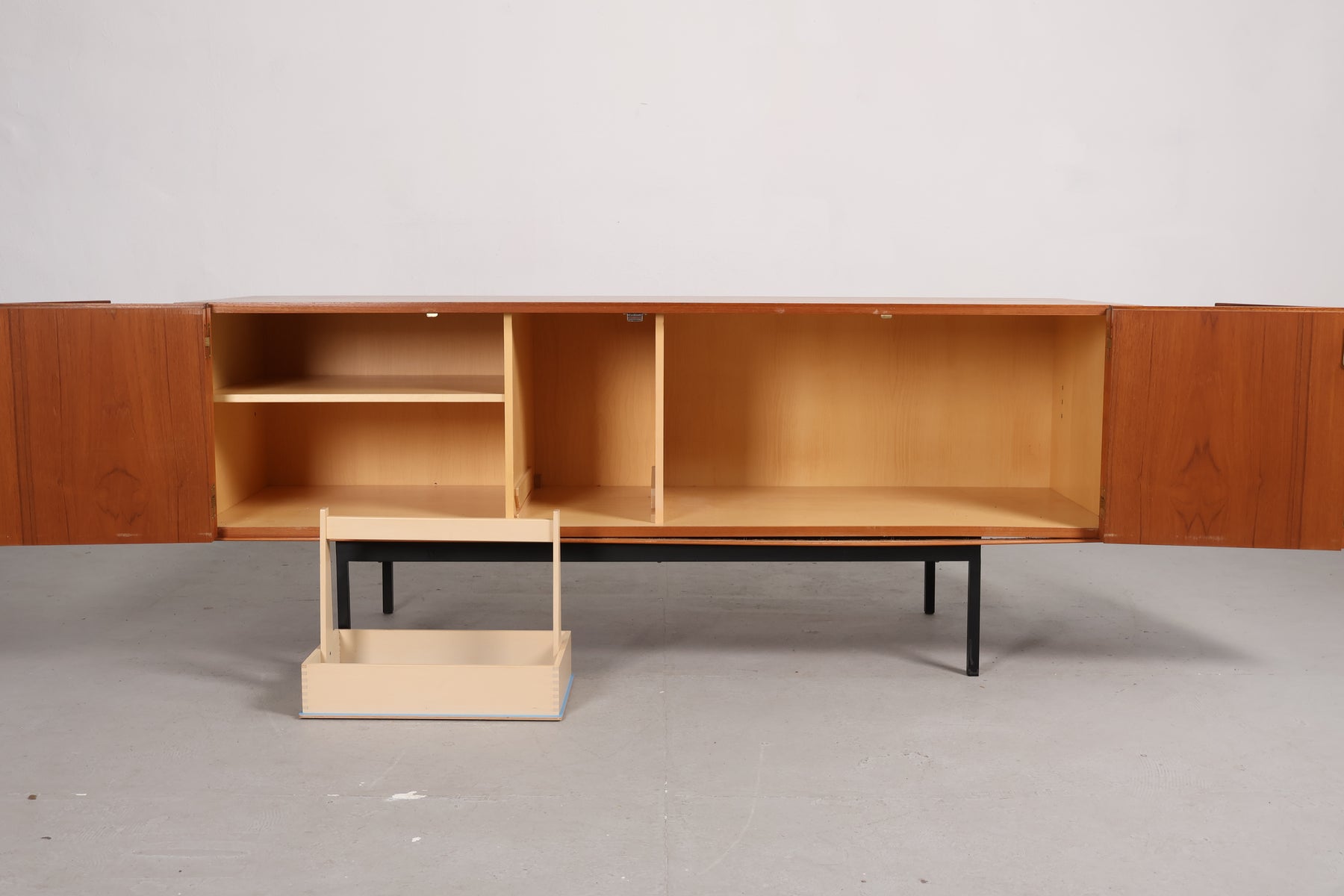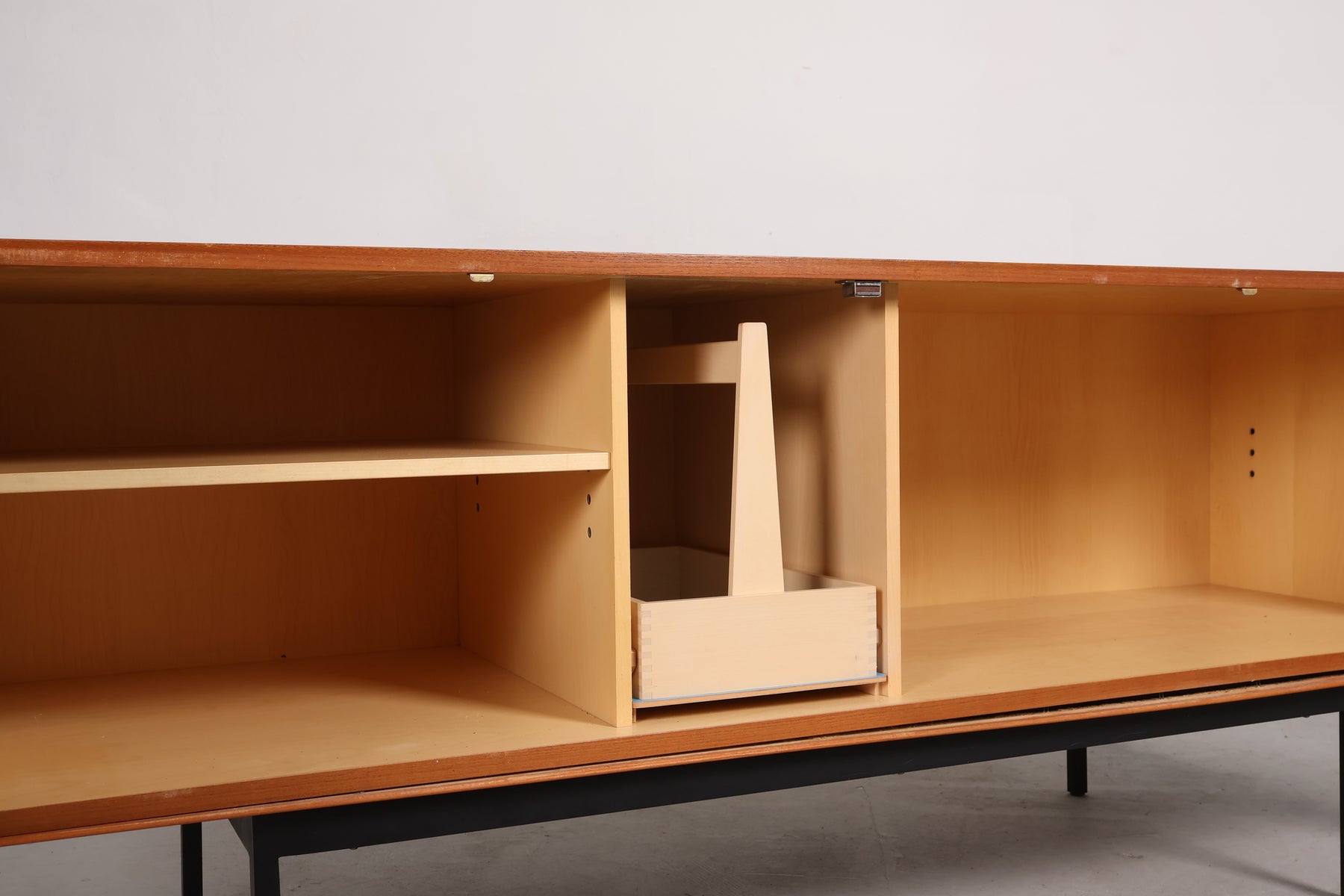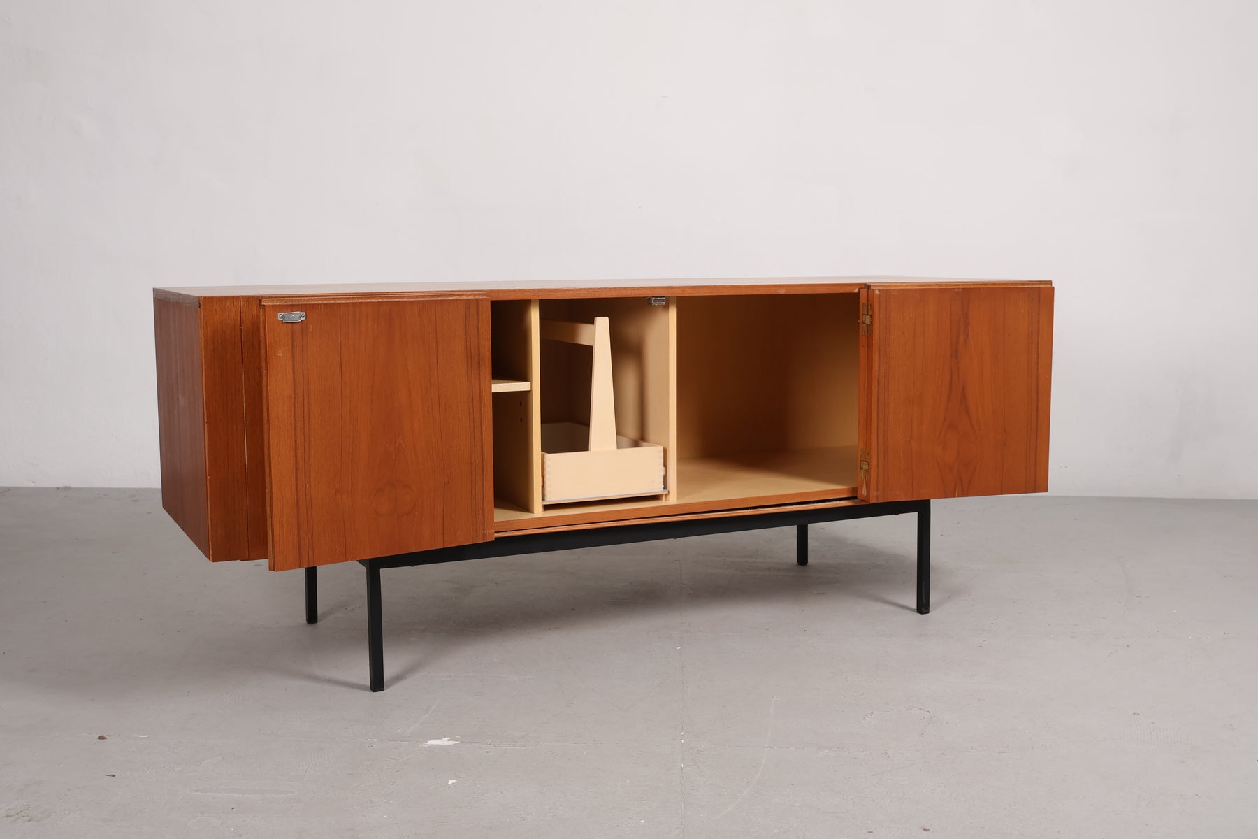 Sideboard „B20“ aus den 60er-Jahren von Dieter Waeckerlin für Behr. Hergestellt in Deutschland. Gefertigt aus Teak. Höhe 70 cm, Breite 174 cm, Tiefe 56 cm.