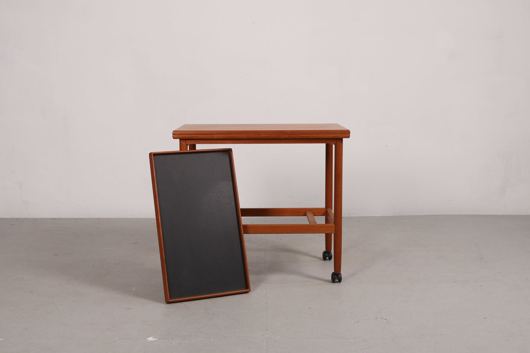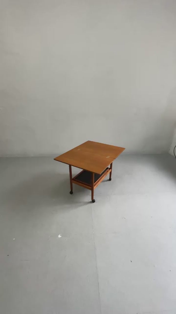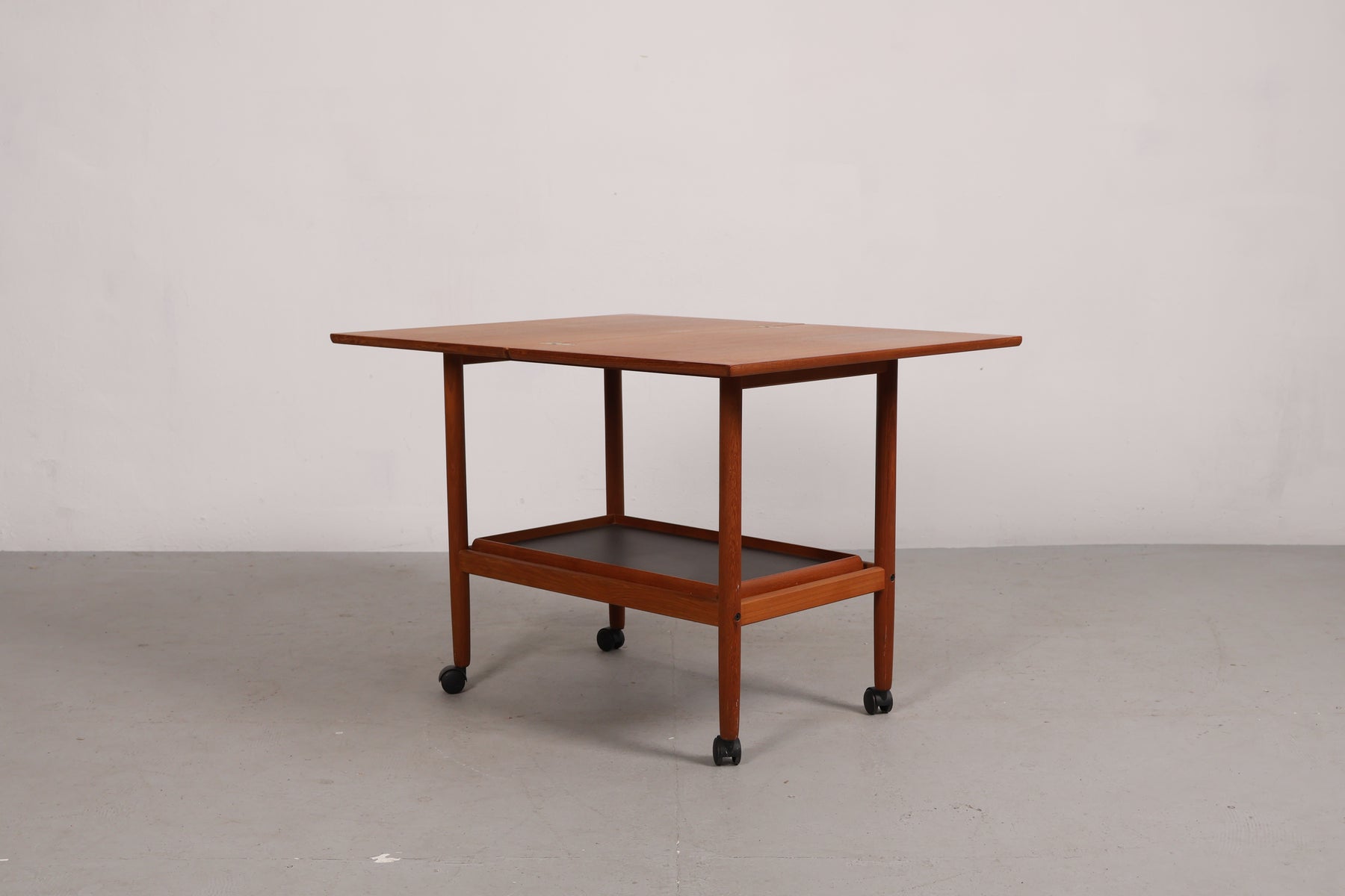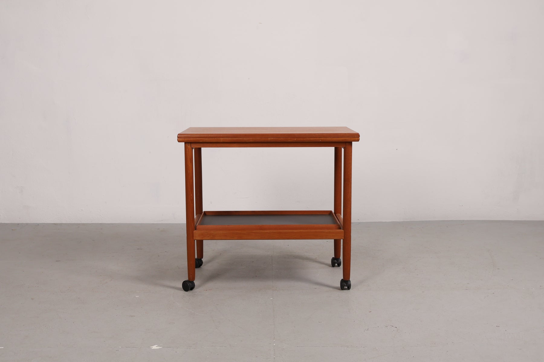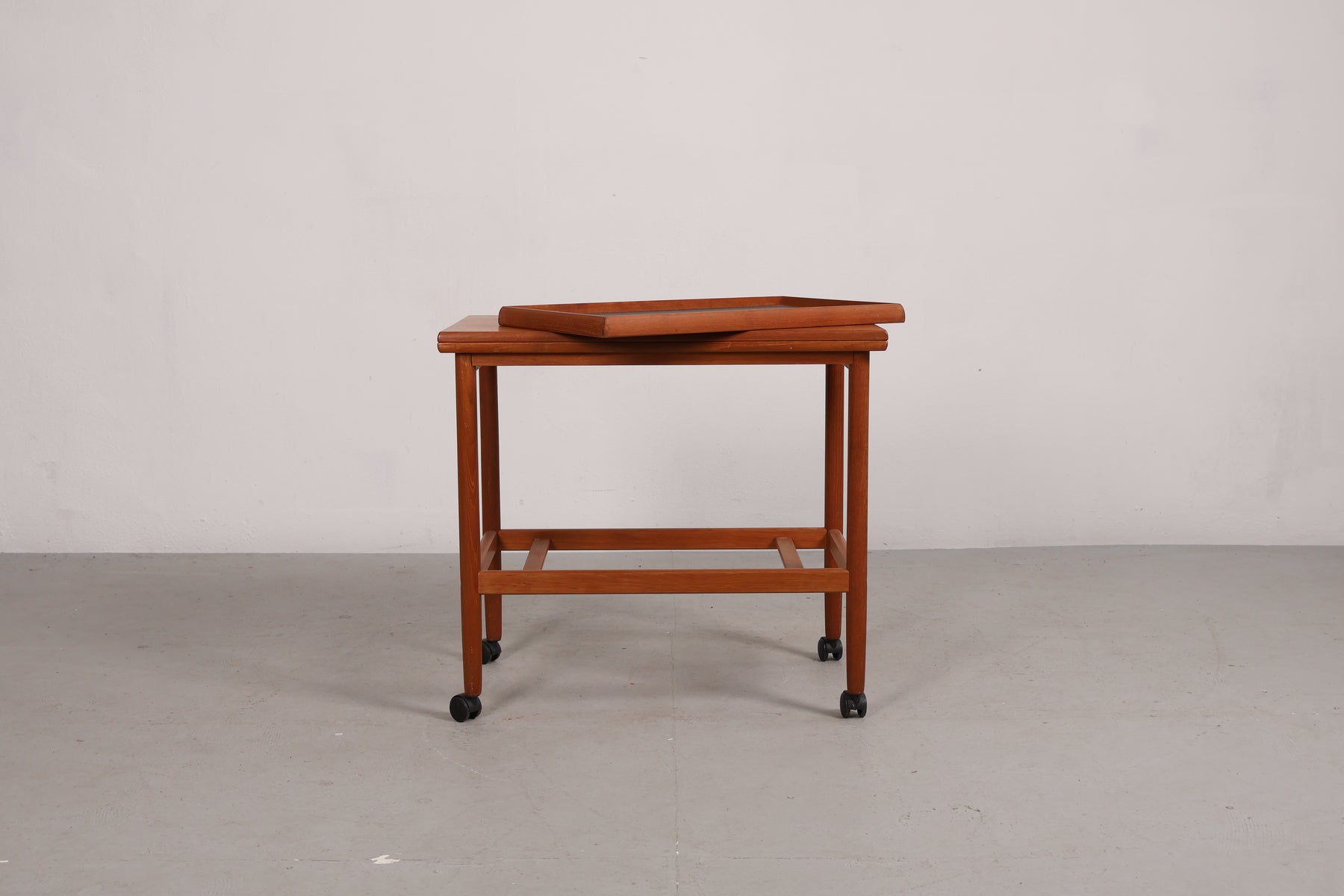 Servierwagen aus den 60er-Jahren von Grete Jalk. Hergestellt in Dänemark. Gefertigt aus Teak. Höhe 64 cm, Breite 70 cm, Tiefe 44 cm.