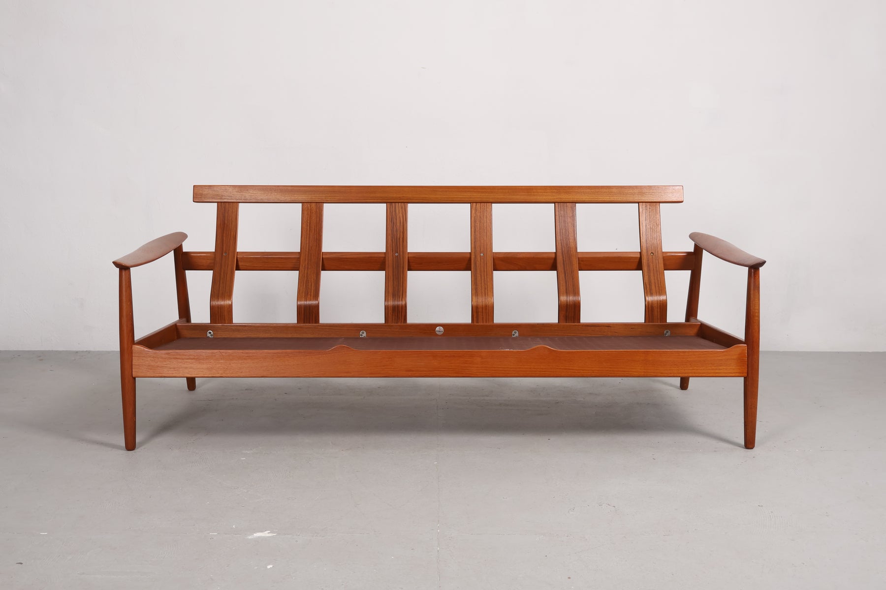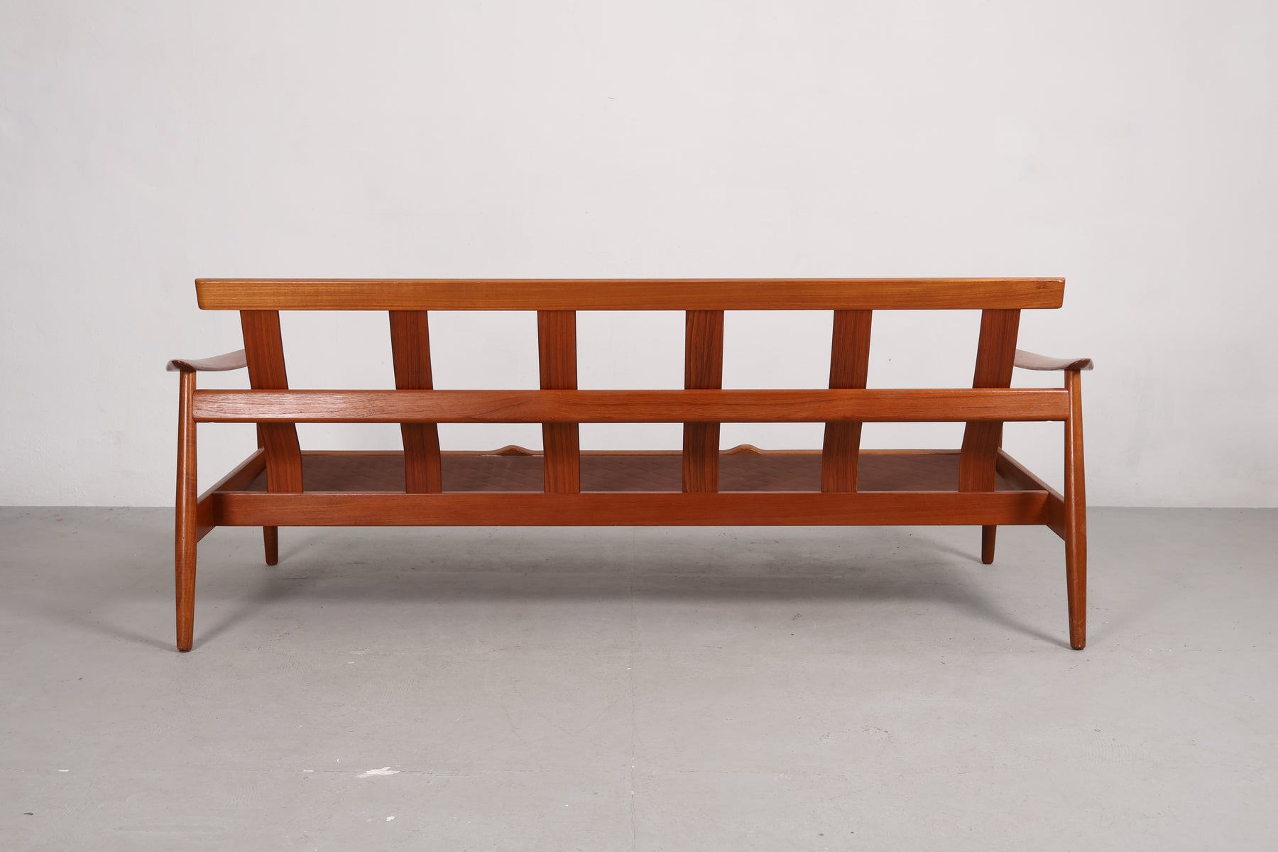 3er-Sofa aus den 60er-Jahren von Arne Vodder. Hergestellt in Dänemark. Gefertigt aus Teak. Höhe 77 cm, Breite 180 cm, Tiefe 82 cm.