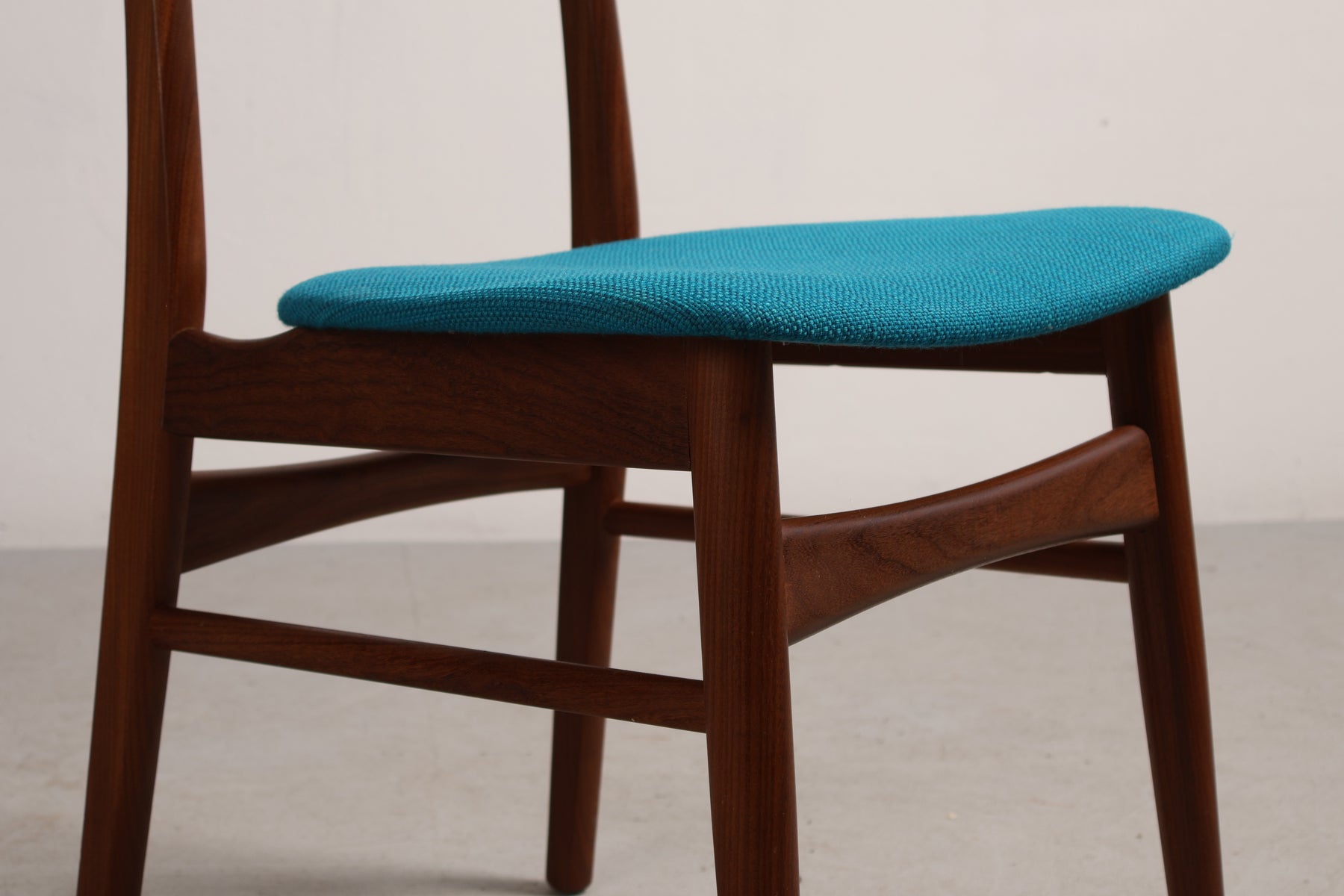 Stuhl „Modell 210“ aus den 60er-Jahren von Thomas Harlev für Farstrup. Hergestellt in Dänemark. Gefertigt aus Teak. Höhe 78 cm, Breite 46 cm, Tiefe 49 cm.