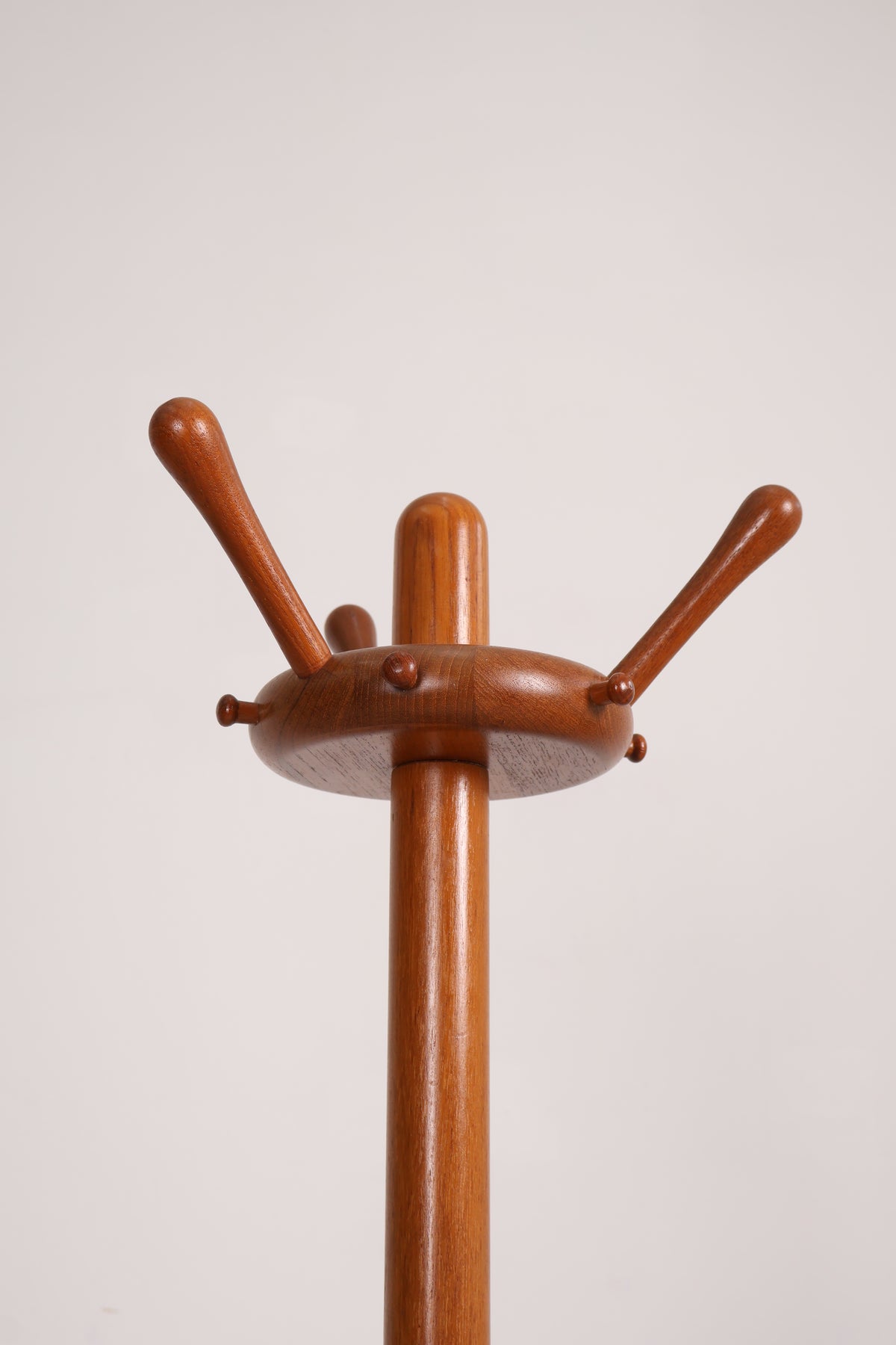 Garderobe aus den 60er-Jahren. Hergestellt in Dänemark. Gefertigt aus Teak. Höhe 167 cm, Breite 35 cm, Tiefe 35 cm.
