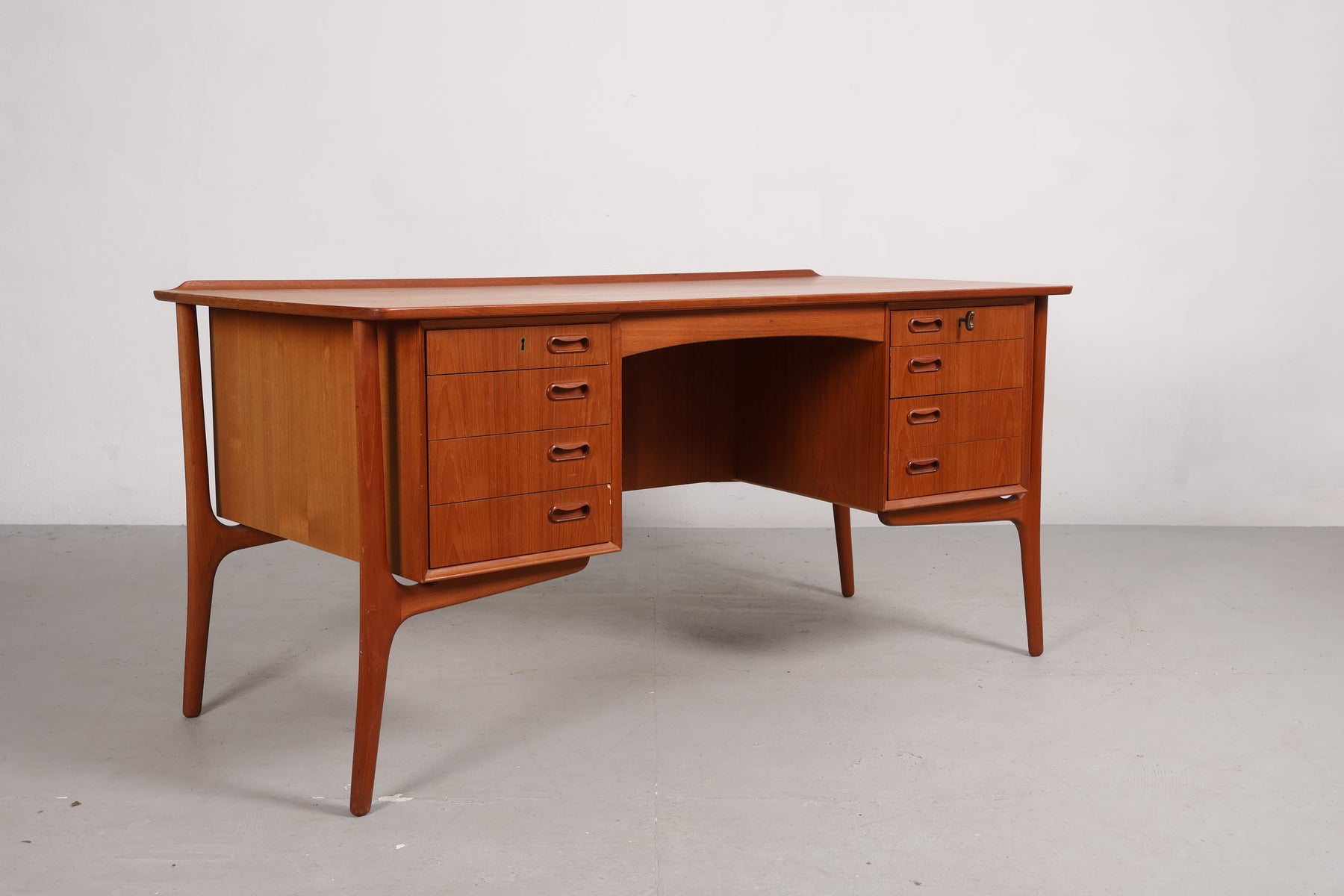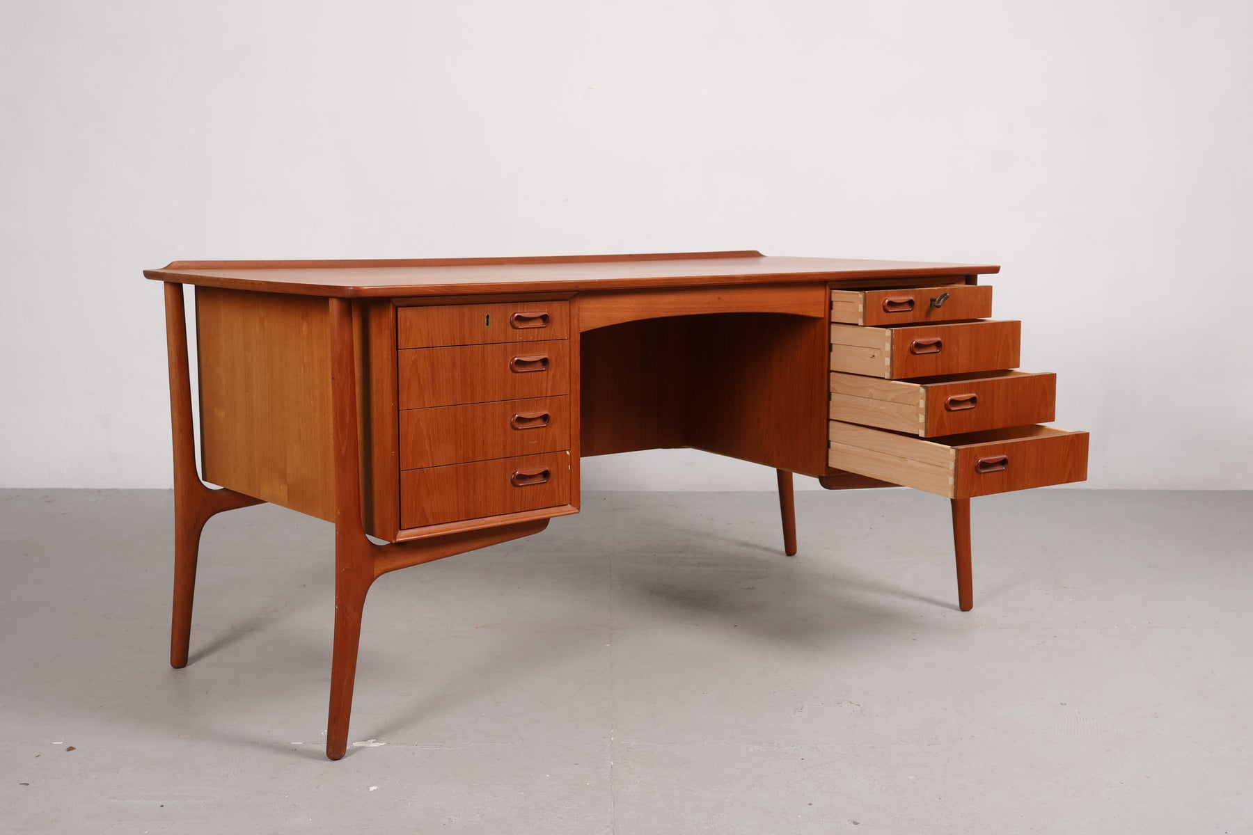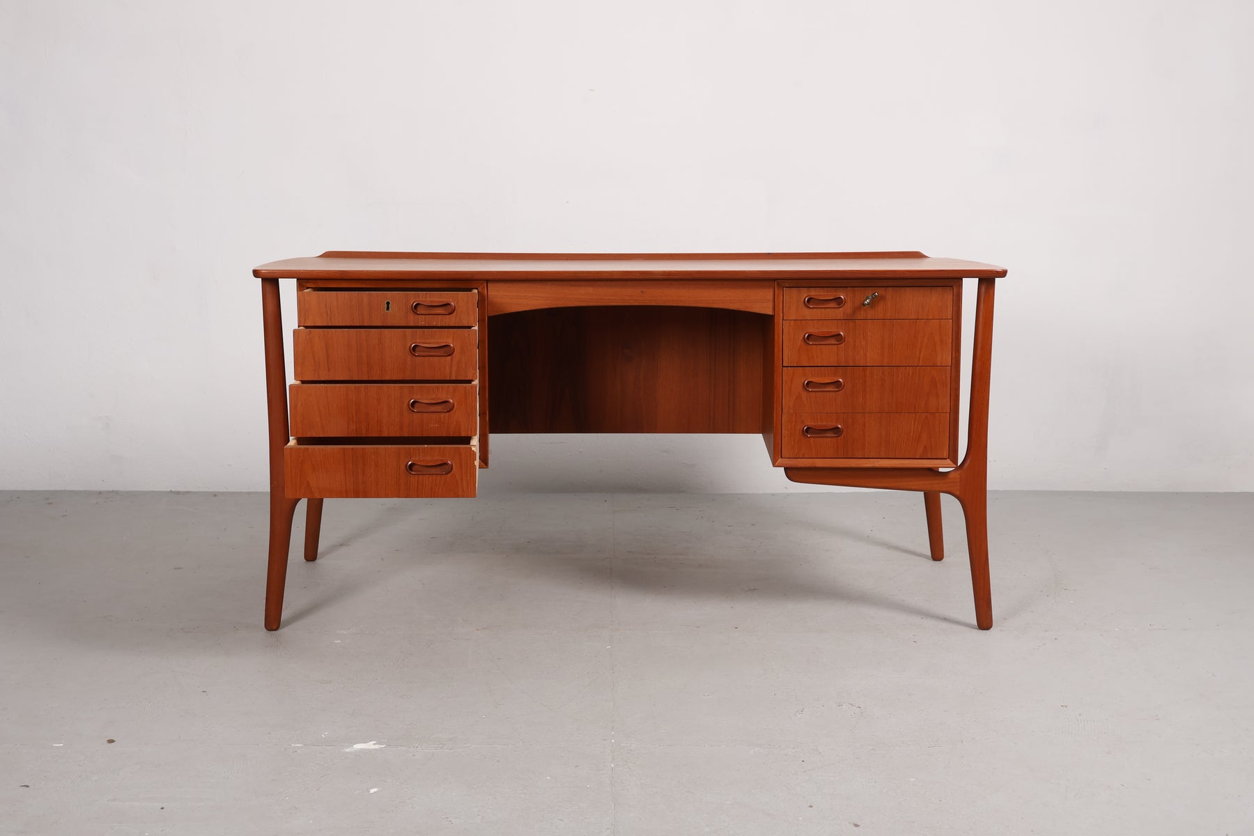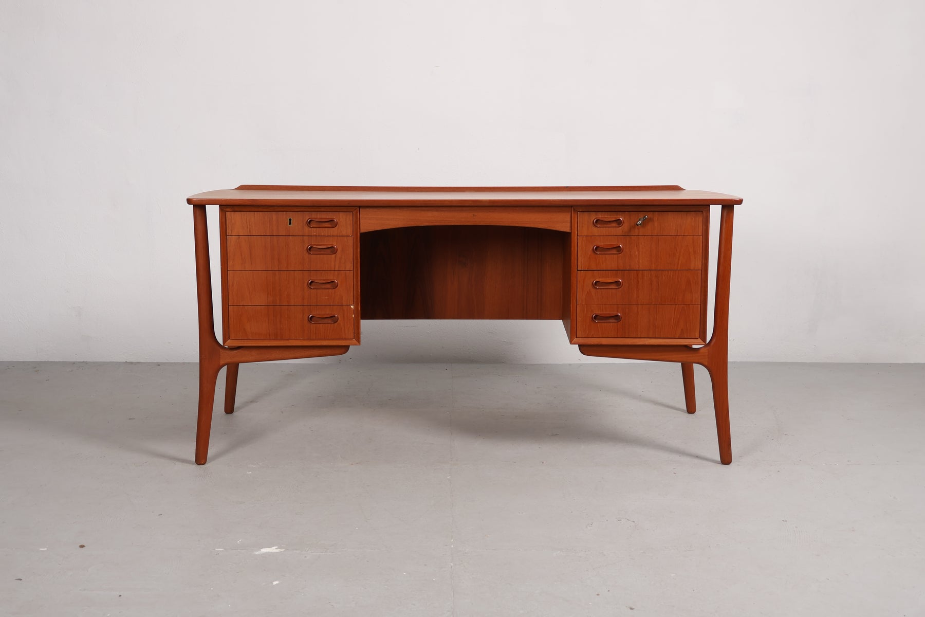 Schreibtisch aus den 60er-Jahren von H. P. Hansen für Svend A. Madsen. Hergestellt in Dänemark. Gefertigt aus Teak. Höhe 74 cm, Breite 151 cm, Tiefe 74 cm.