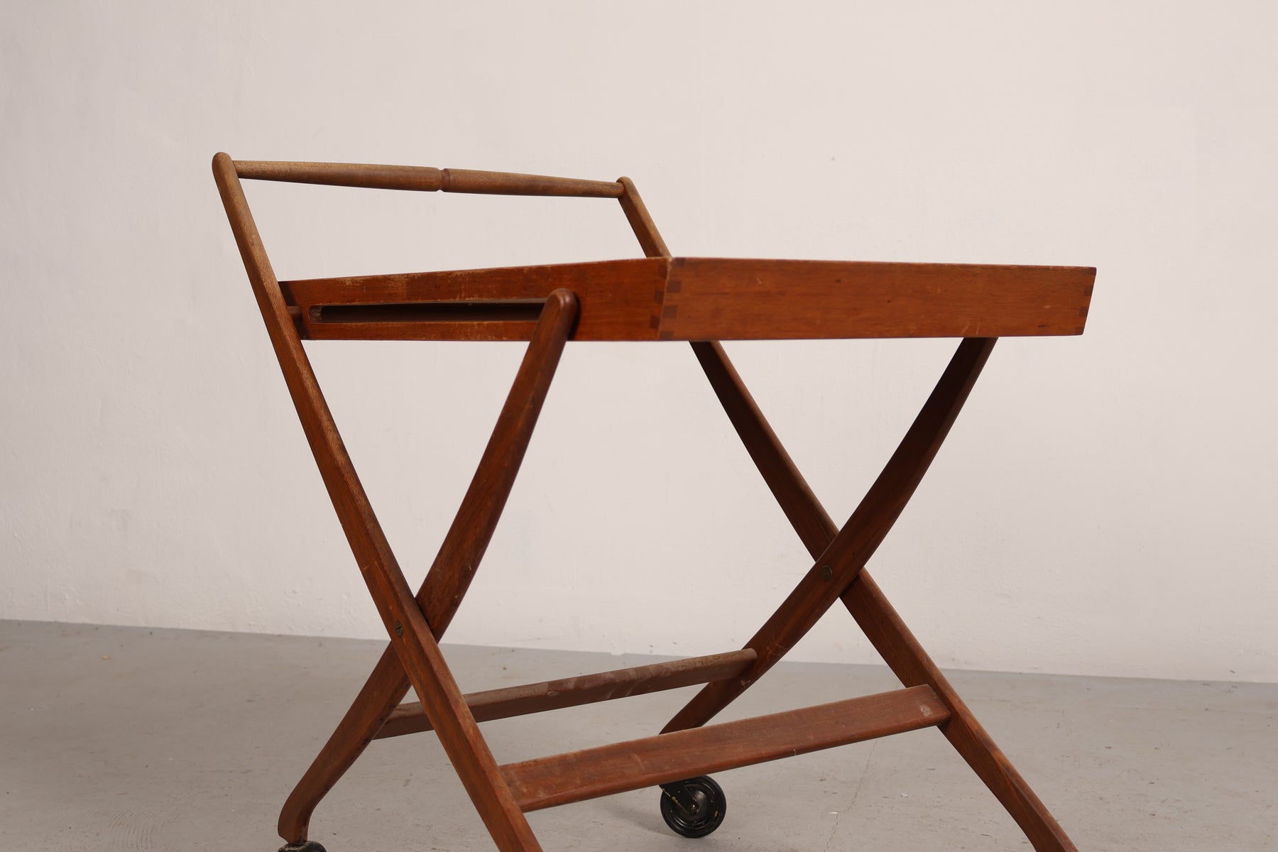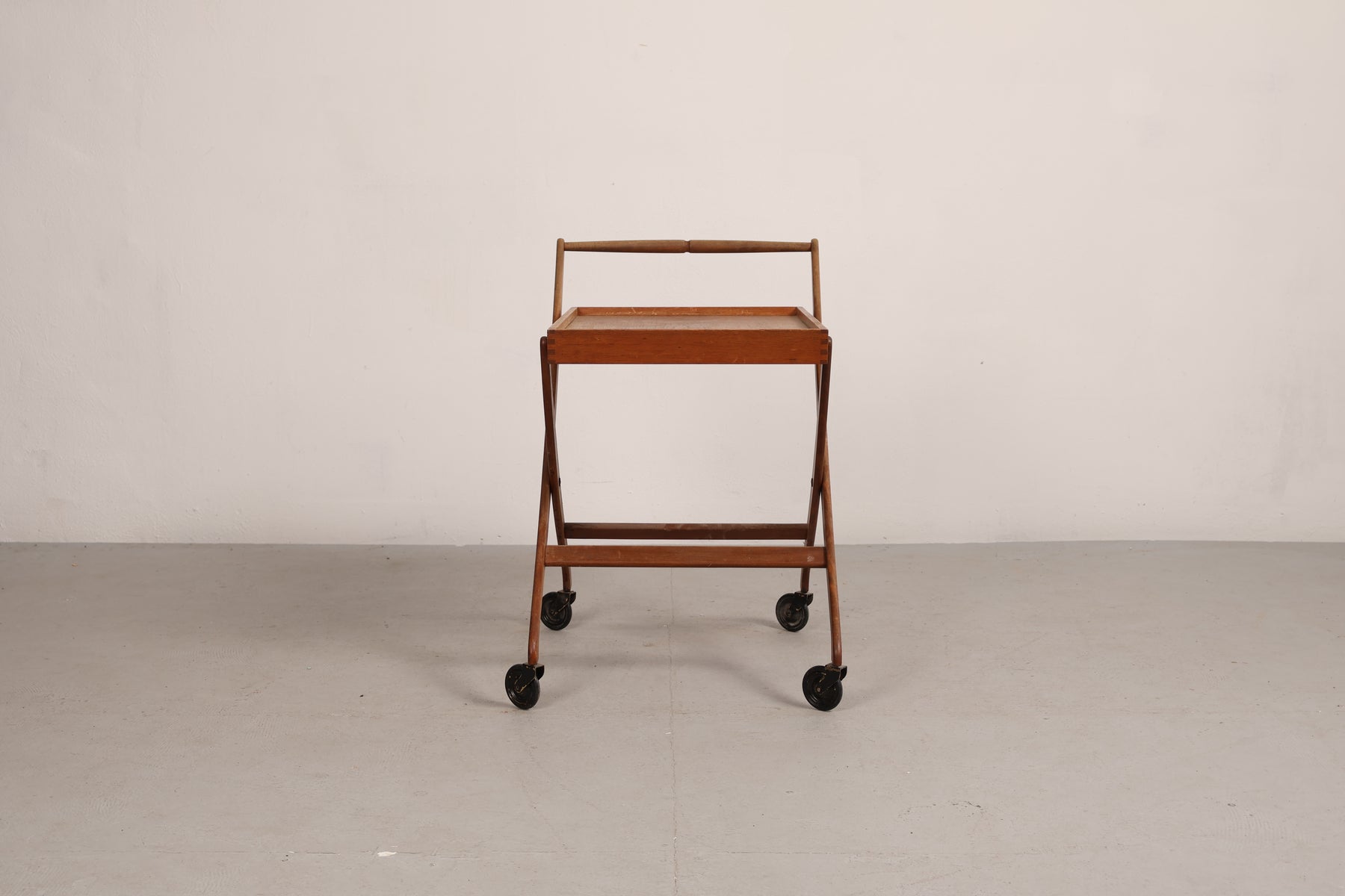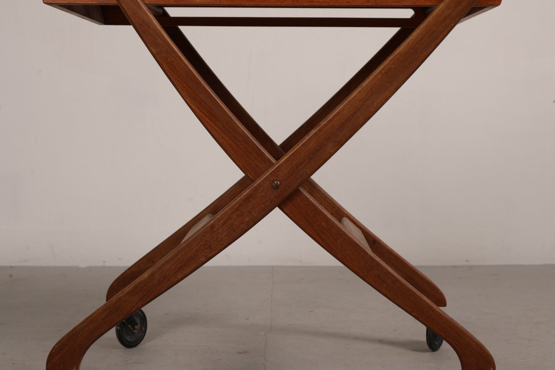 Servierwagen aus den 60er-Jahren von Svend Aage Madsen. Hergestellt in Dänemark. Gefertigt aus Teak. Höhe 75 cm, Breite 73 cm, Tiefe 49 cm.