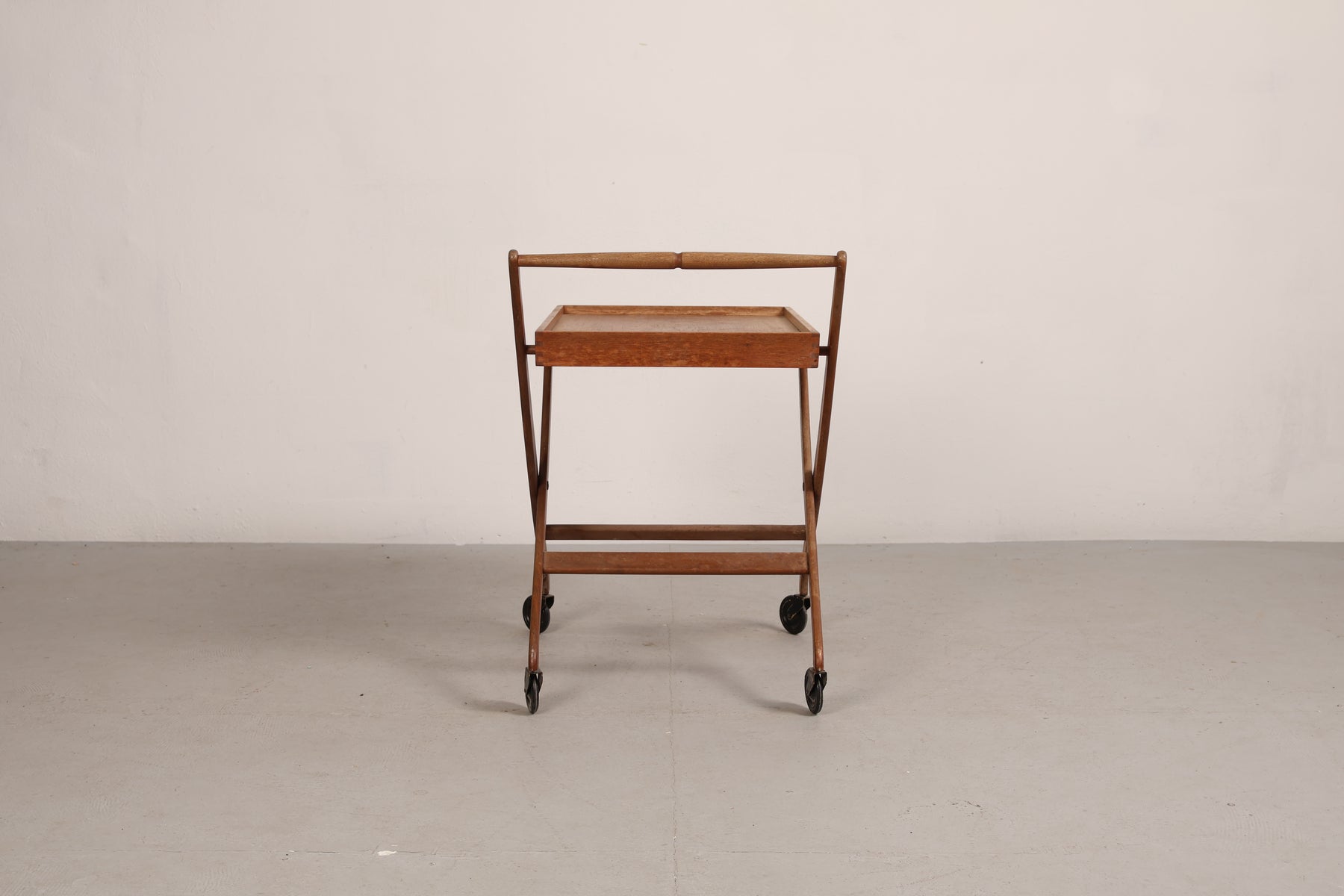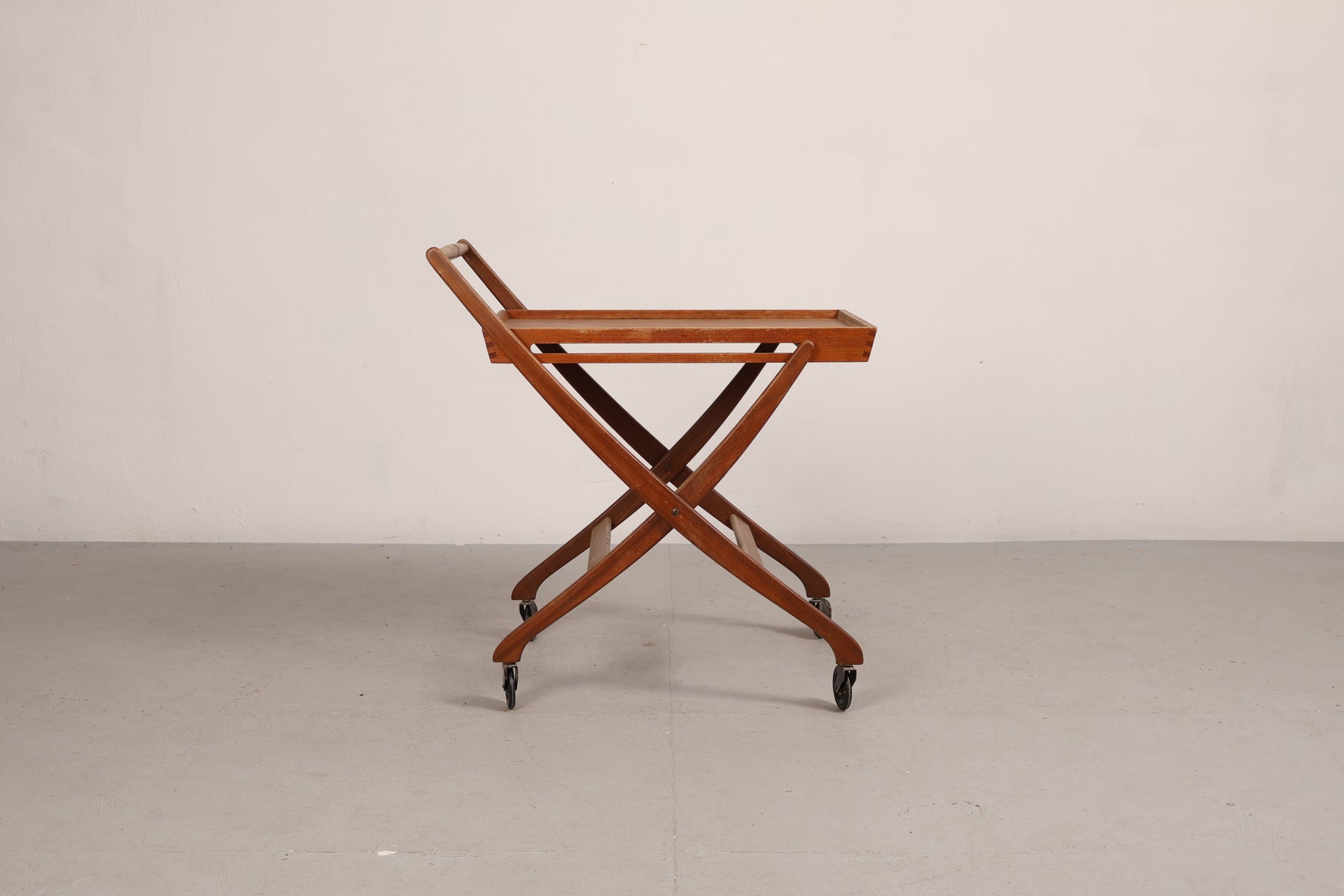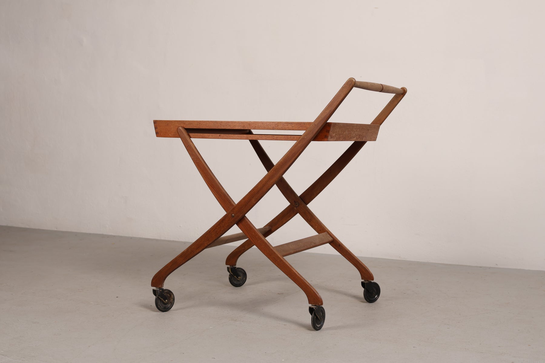 Servierwagen aus den 60er-Jahren von Svend Aage Madsen. Hergestellt in Dänemark. Gefertigt aus Teak. Höhe 75 cm, Breite 73 cm, Tiefe 49 cm.