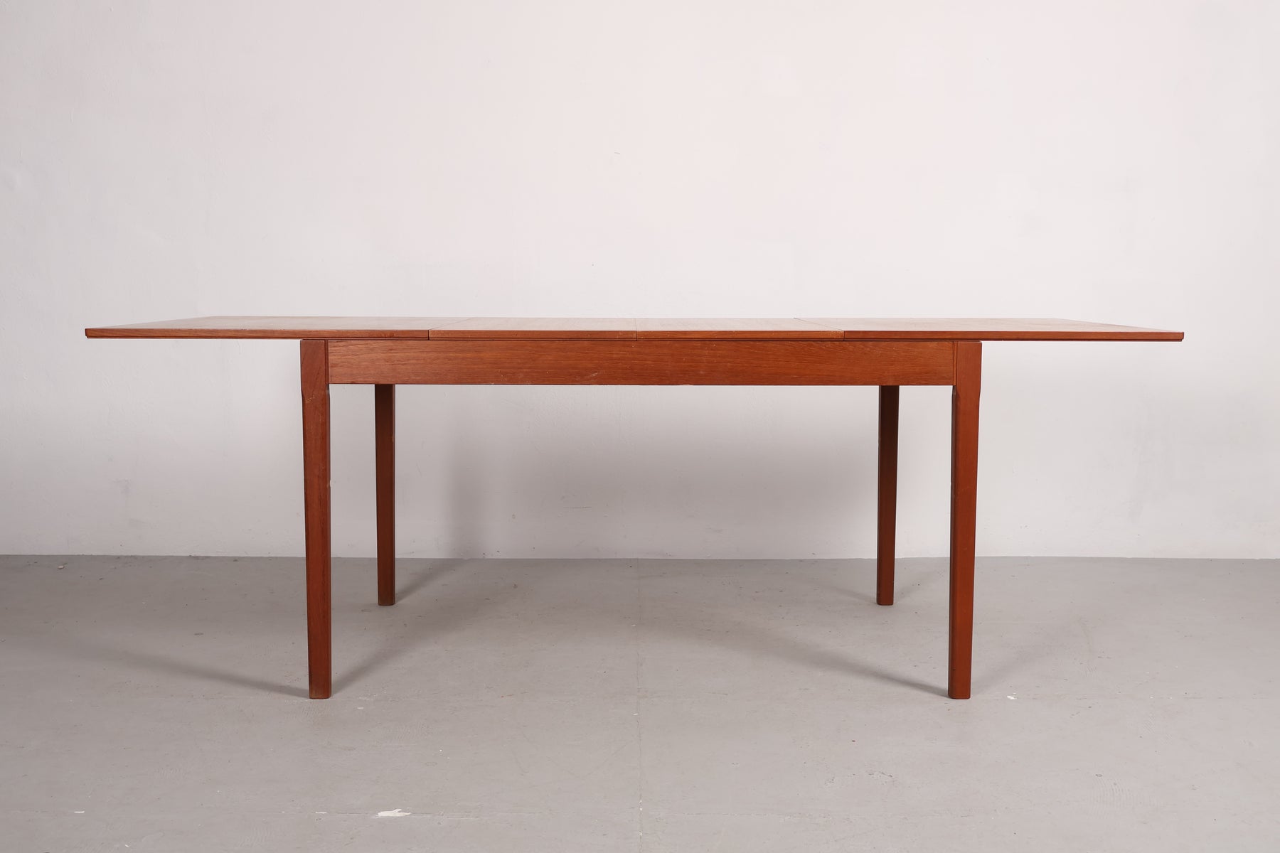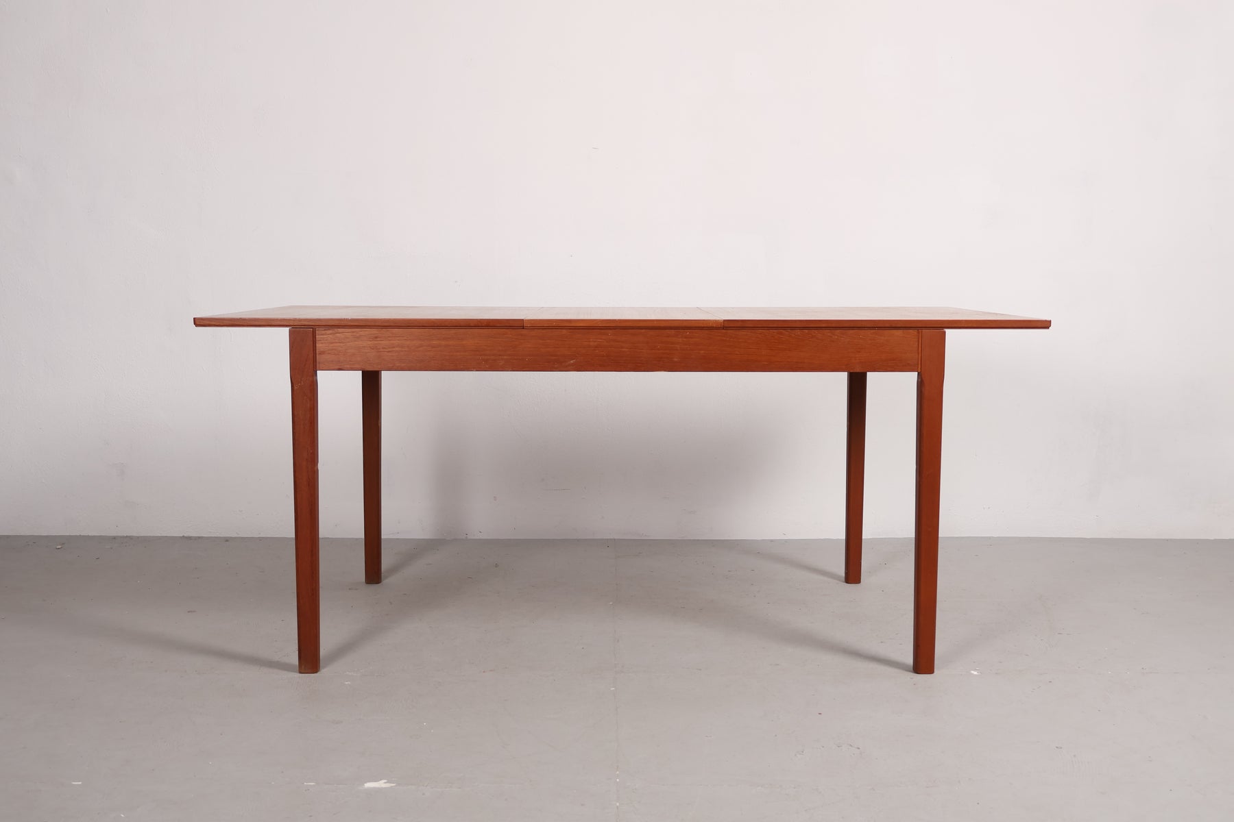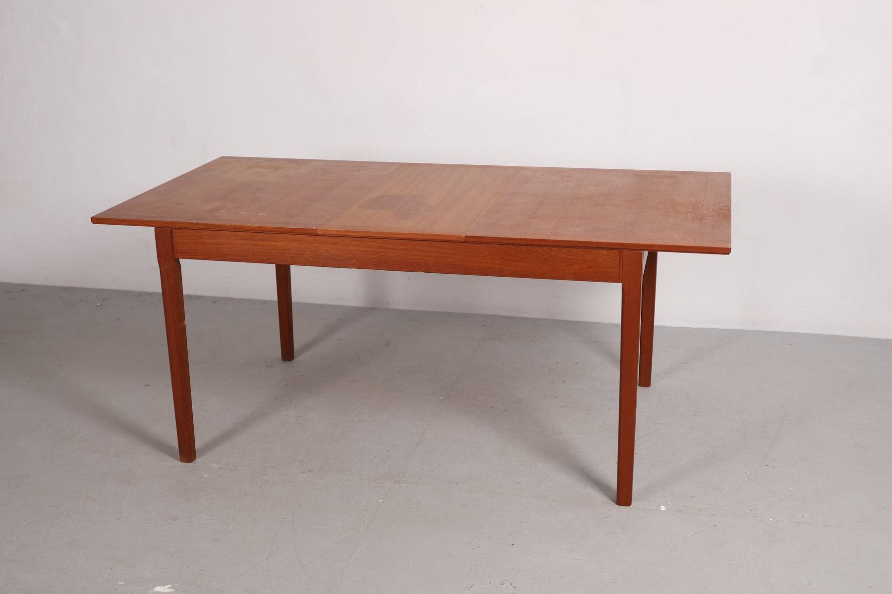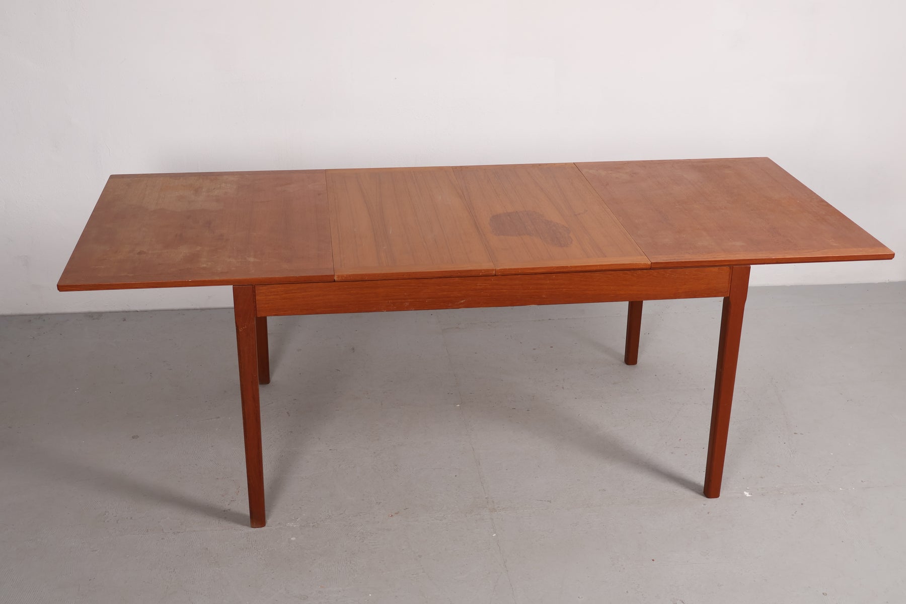 Esstisch aus den 60er-Jahren. Hergestellt in Dänemark. Gefertigt aus Teak. Höhe 72 cm, Breite 130 cm, Tiefe 87 cm.