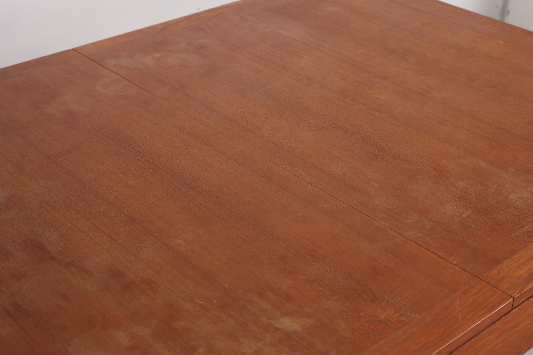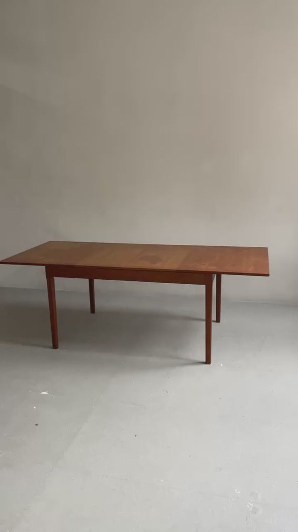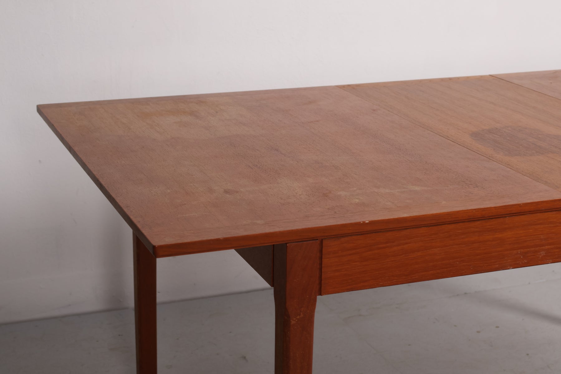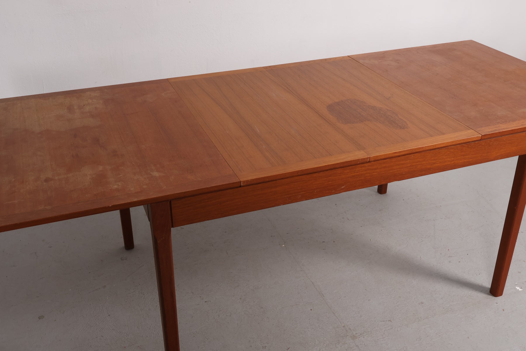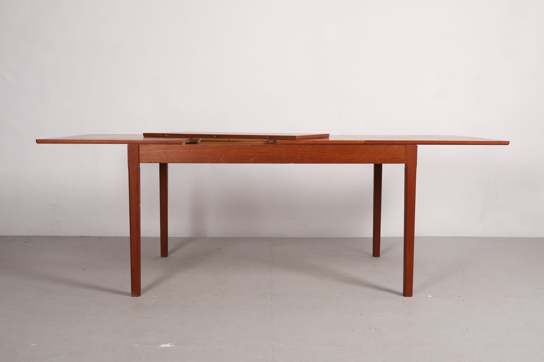 Esstisch aus den 60er-Jahren. Hergestellt in Dänemark. Gefertigt aus Teak. Höhe 72 cm, Breite 130 cm, Tiefe 87 cm.