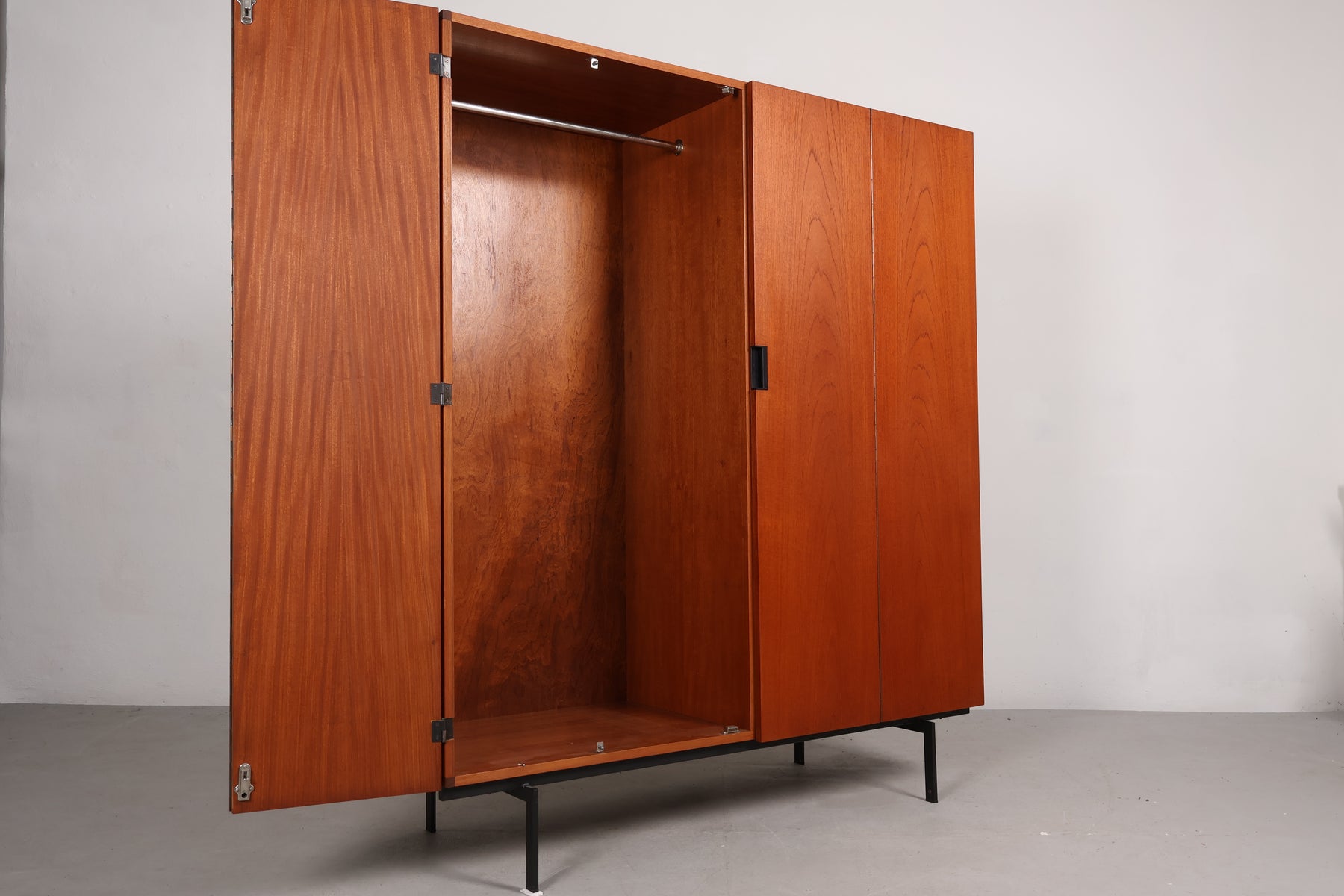 Schrank aus den 60er-Jahren von Cees Braakman. Hergestellt in Dänemark. Gefertigt aus Teak. Höhe 173 cm, Breite 150 cm, Tiefe 55 cm.
