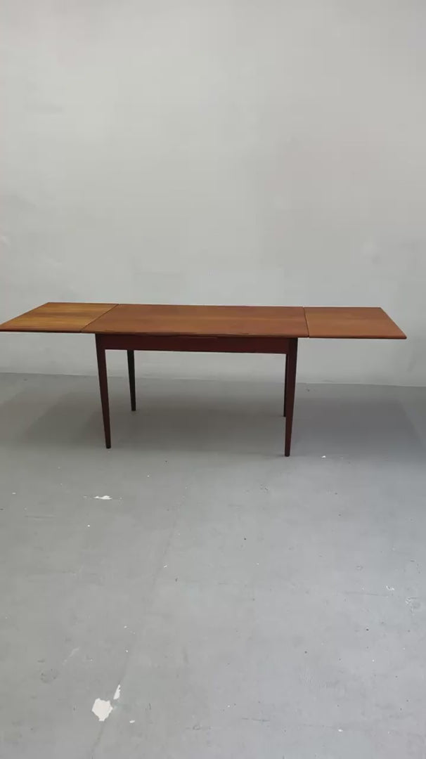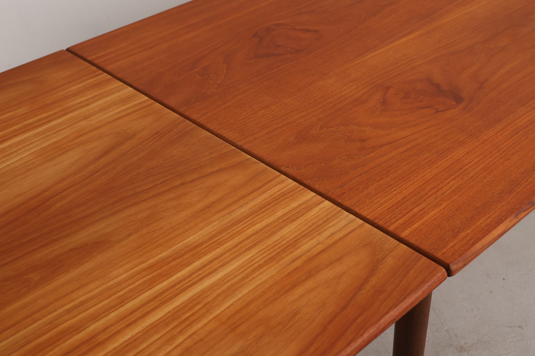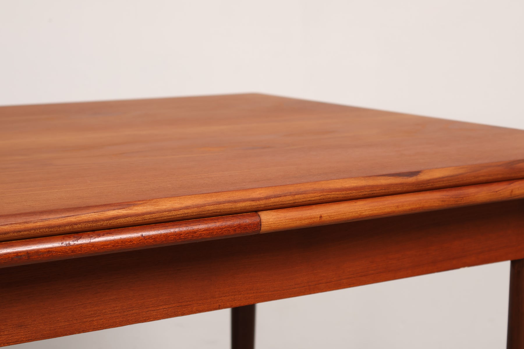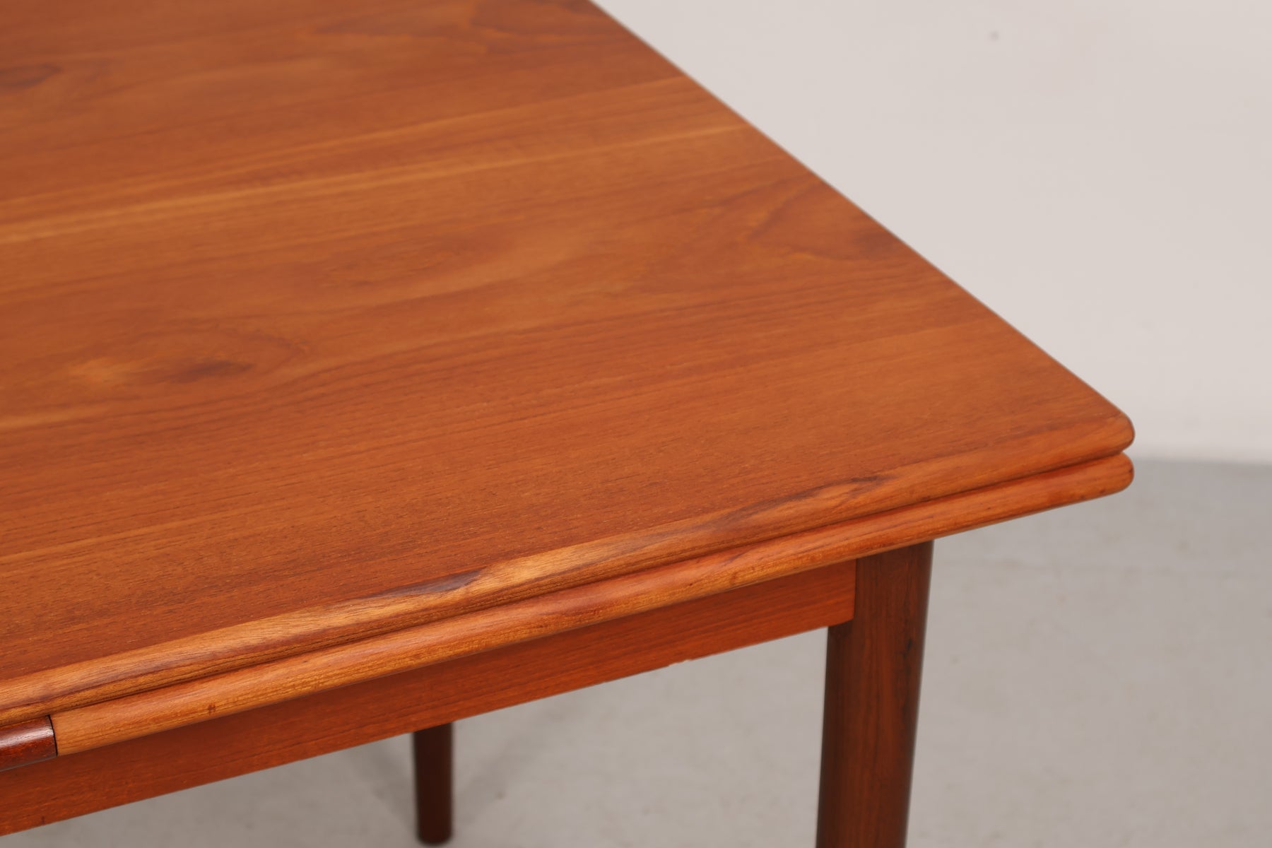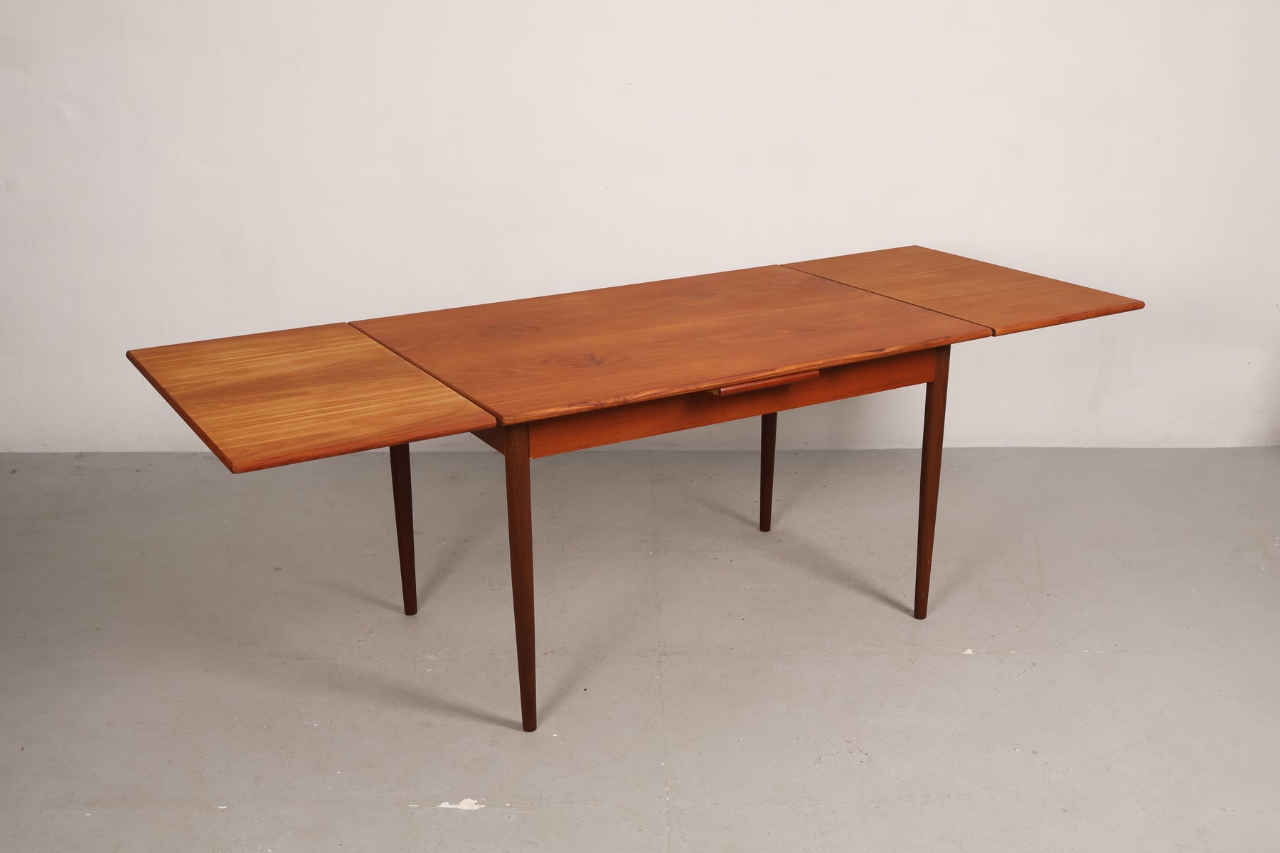 Esstisch aus den 60er-Jahren. Hergestellt in Dänemark. Gefertigt aus Teak. Höhe 74 cm, Breite 125 cm, Tiefe 85 cm.