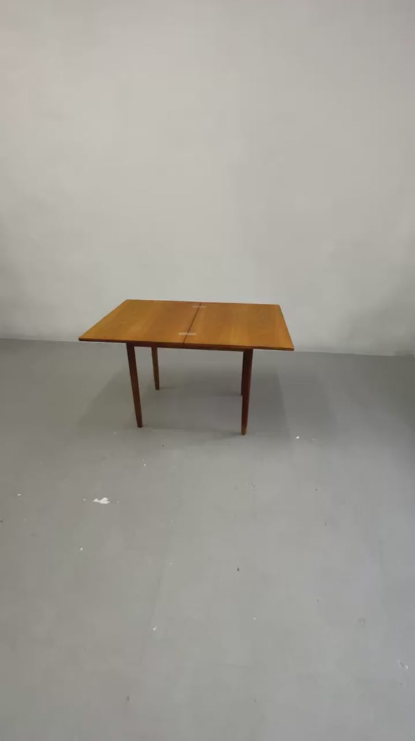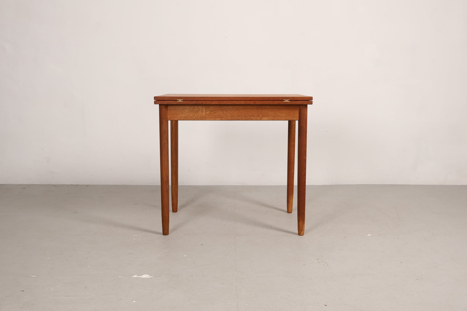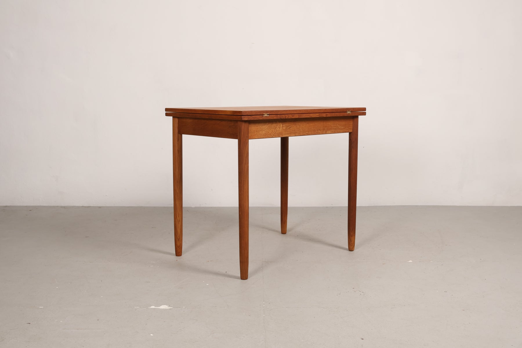 Esstisch aus den 60er-Jahren. Hergestellt in Dänemark. Gefertigt aus Teak. Höhe 75 cm, Breite 82 cm, Tiefe 60 cm.