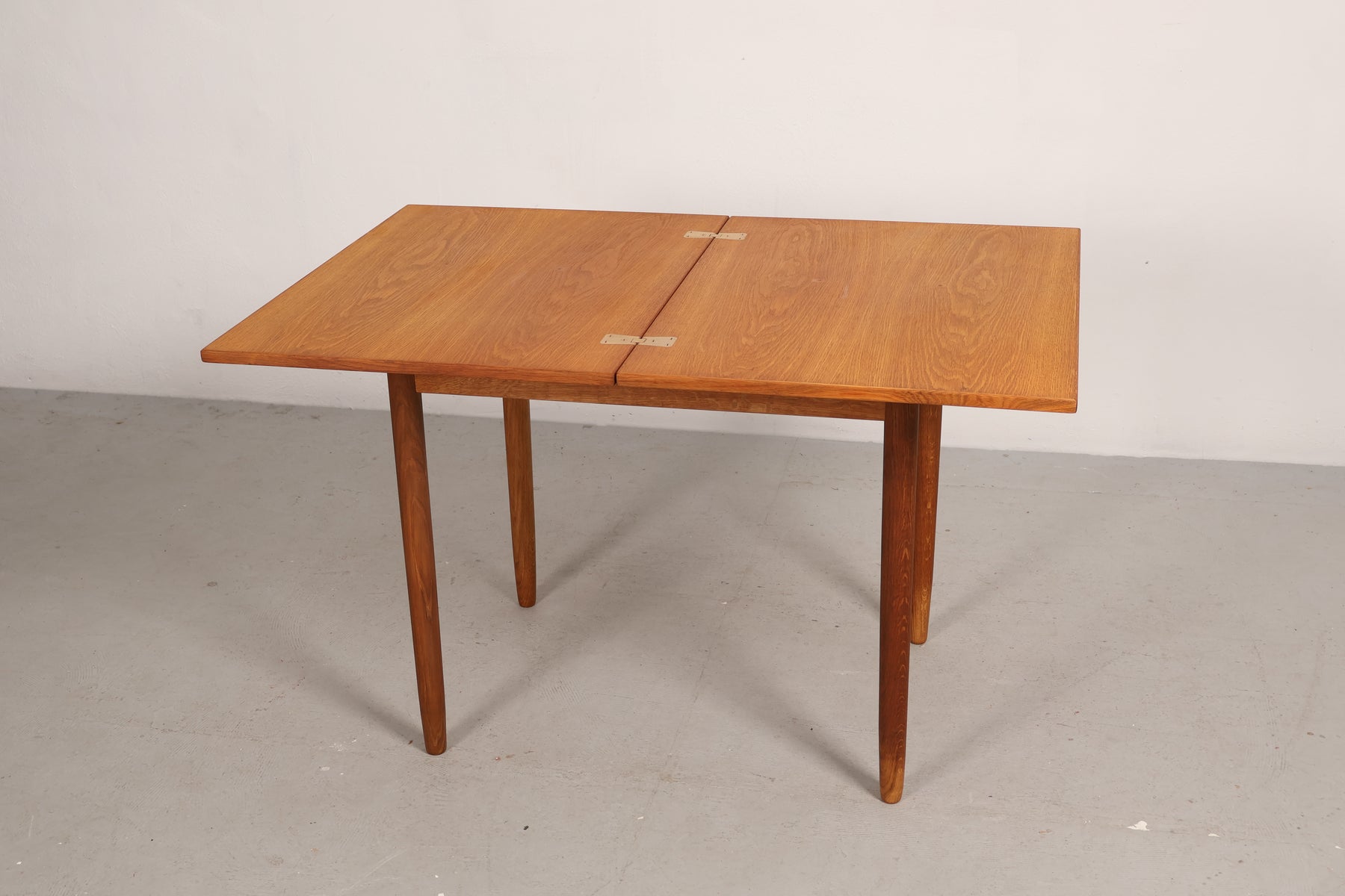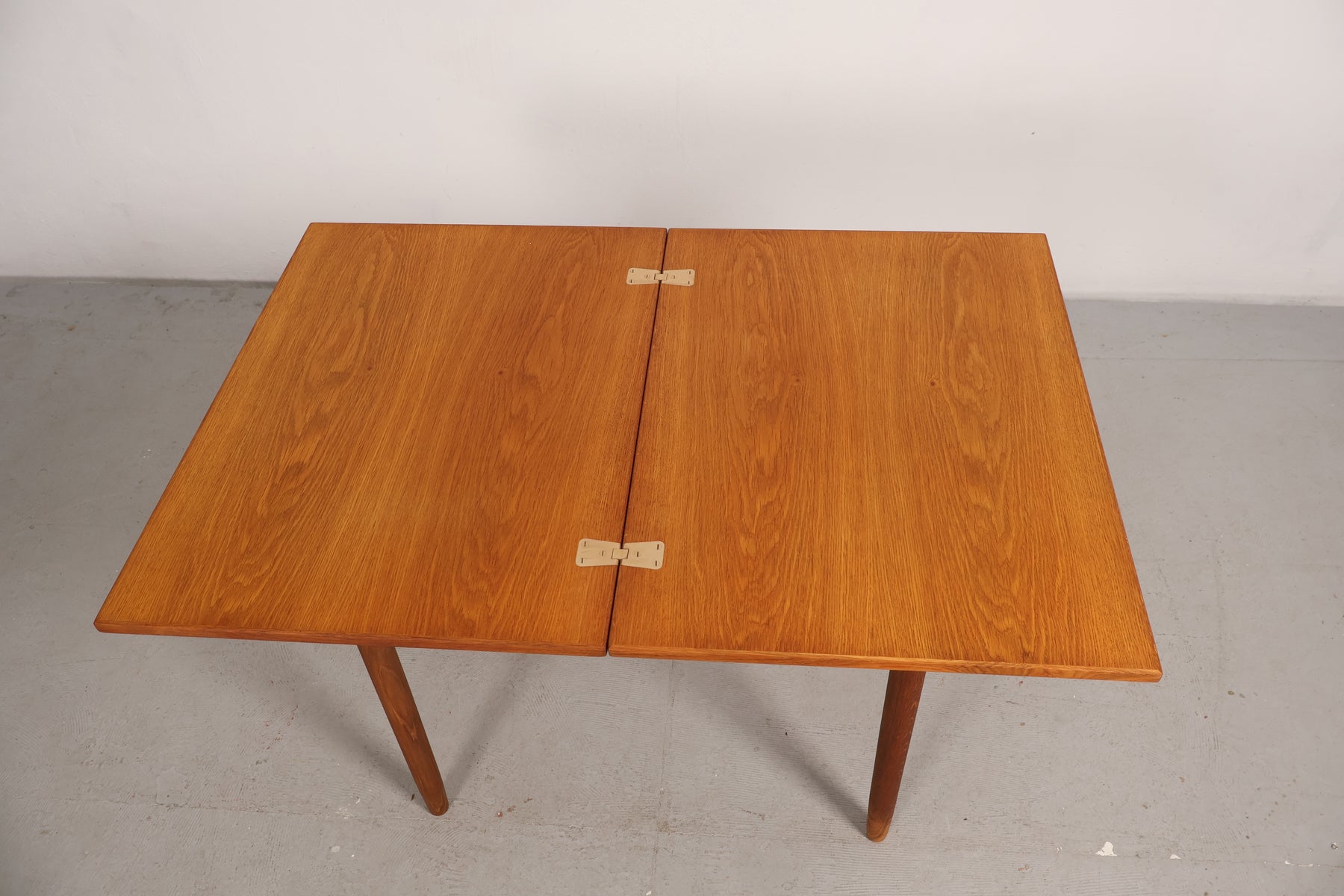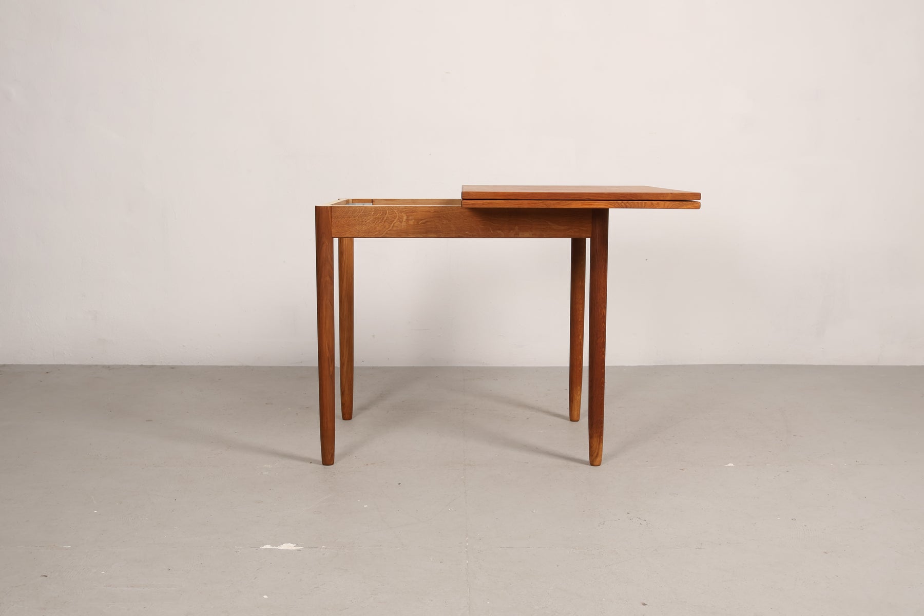 Esstisch aus den 60er-Jahren. Hergestellt in Dänemark. Gefertigt aus Teak. Höhe 75 cm, Breite 82 cm, Tiefe 60 cm.