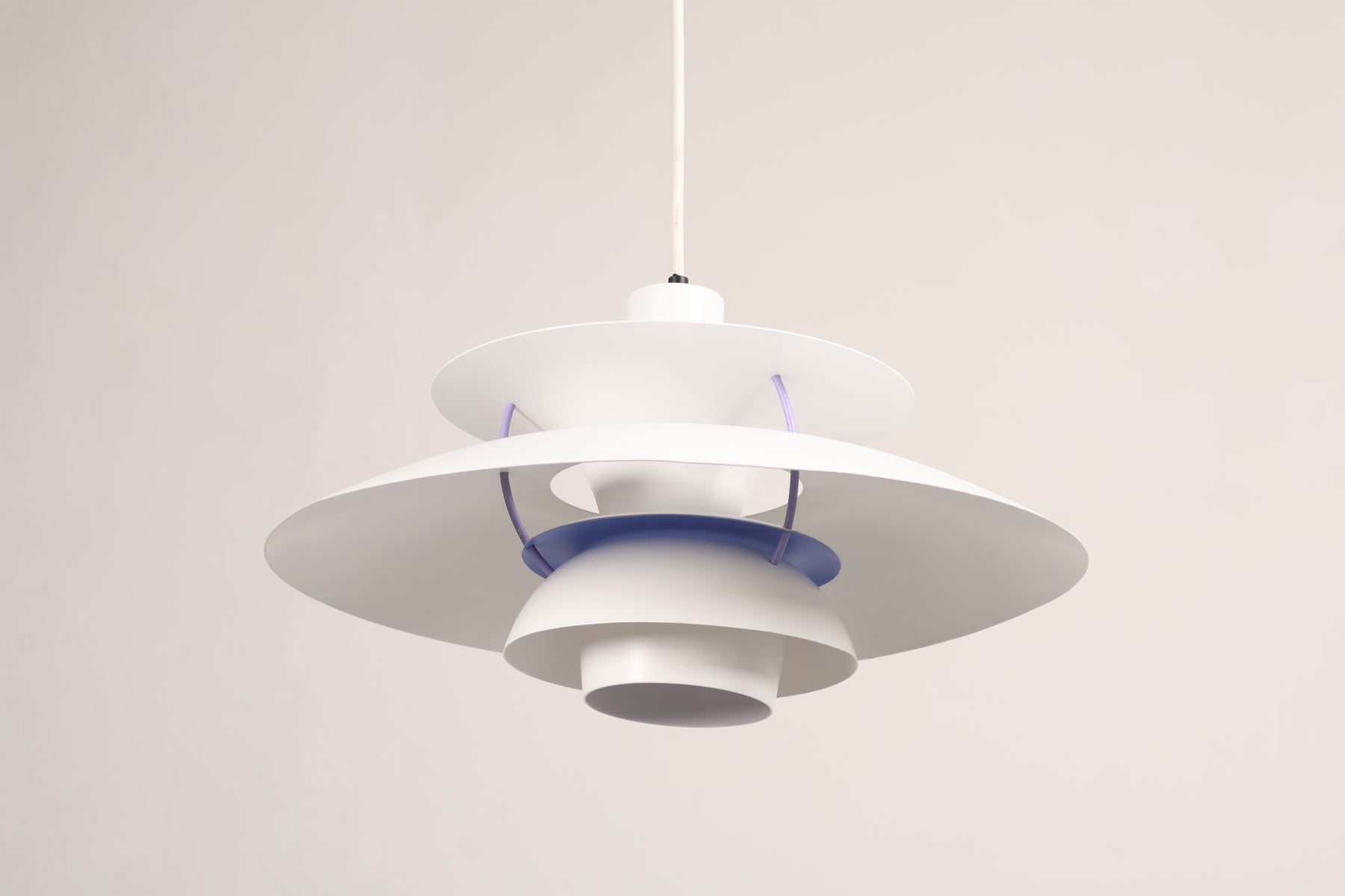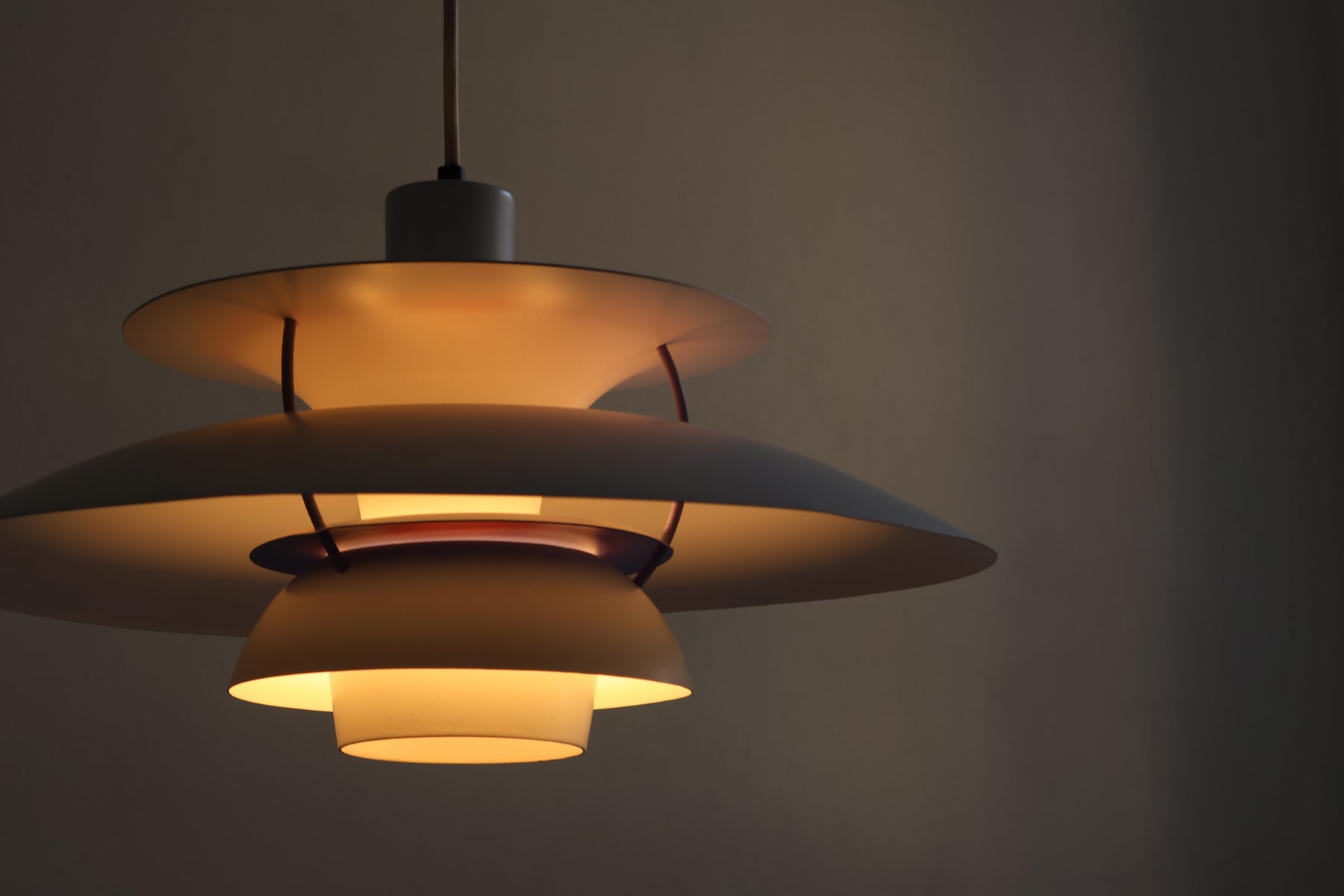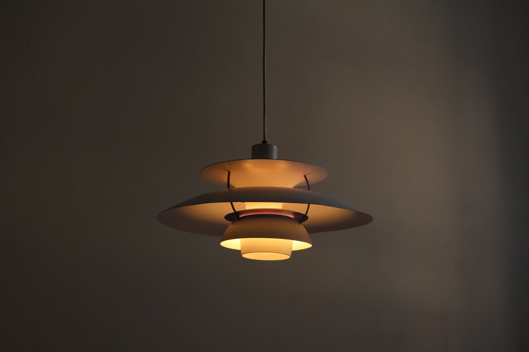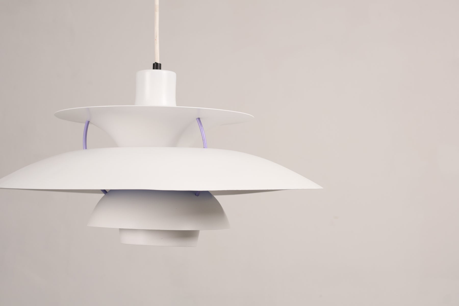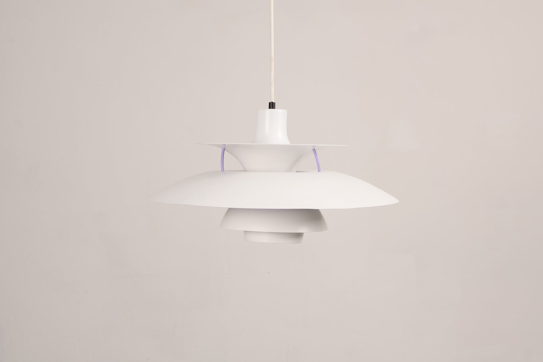 Deckenlampe „PH5“ von Louis Poulsen, Aluminium, Weiß, 60er, Dänemark