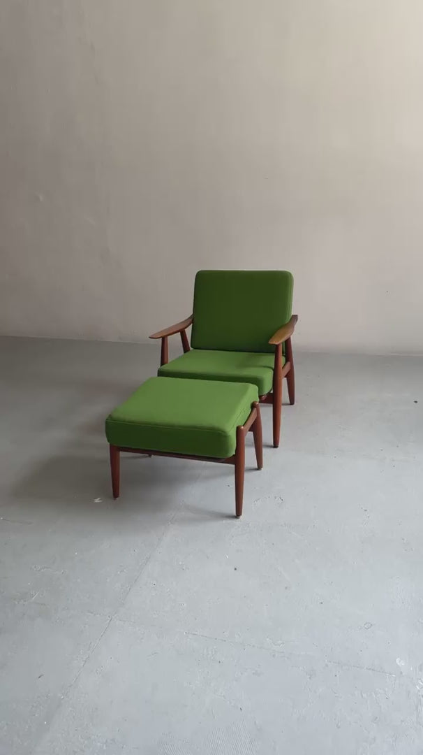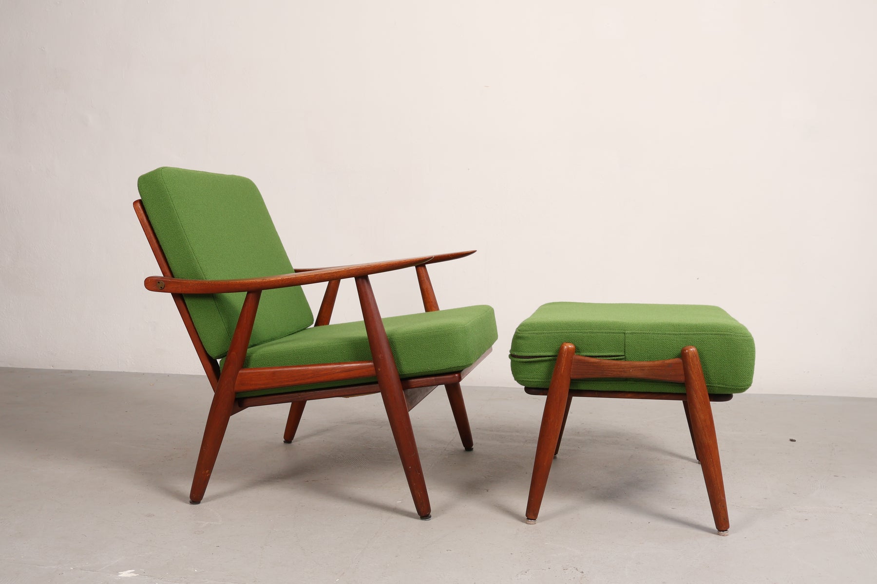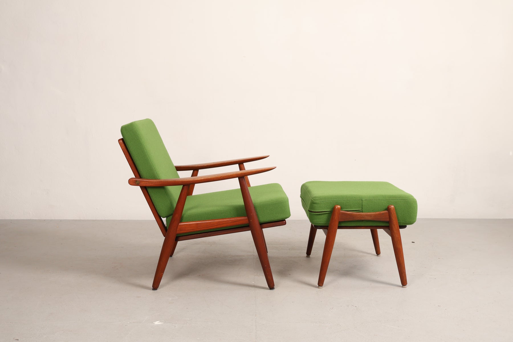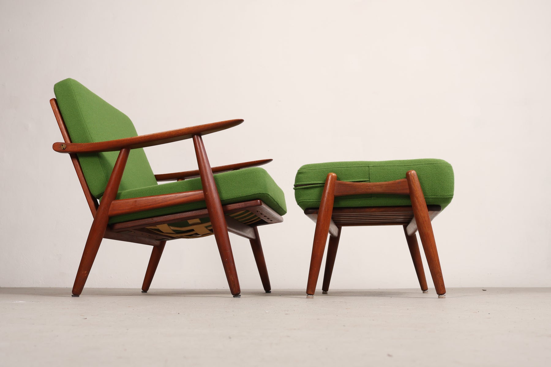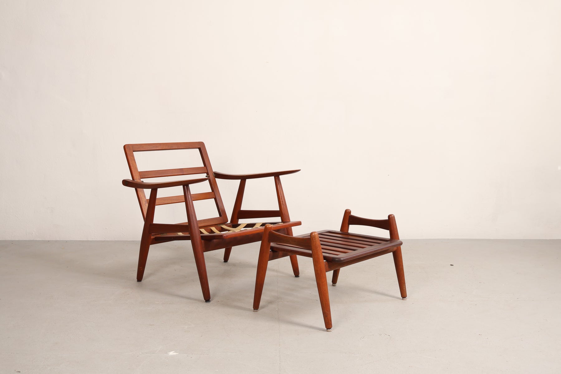 Sessel und Hocker „GE 270“ von Hans Wegner, Teak, 60er, Dänemark