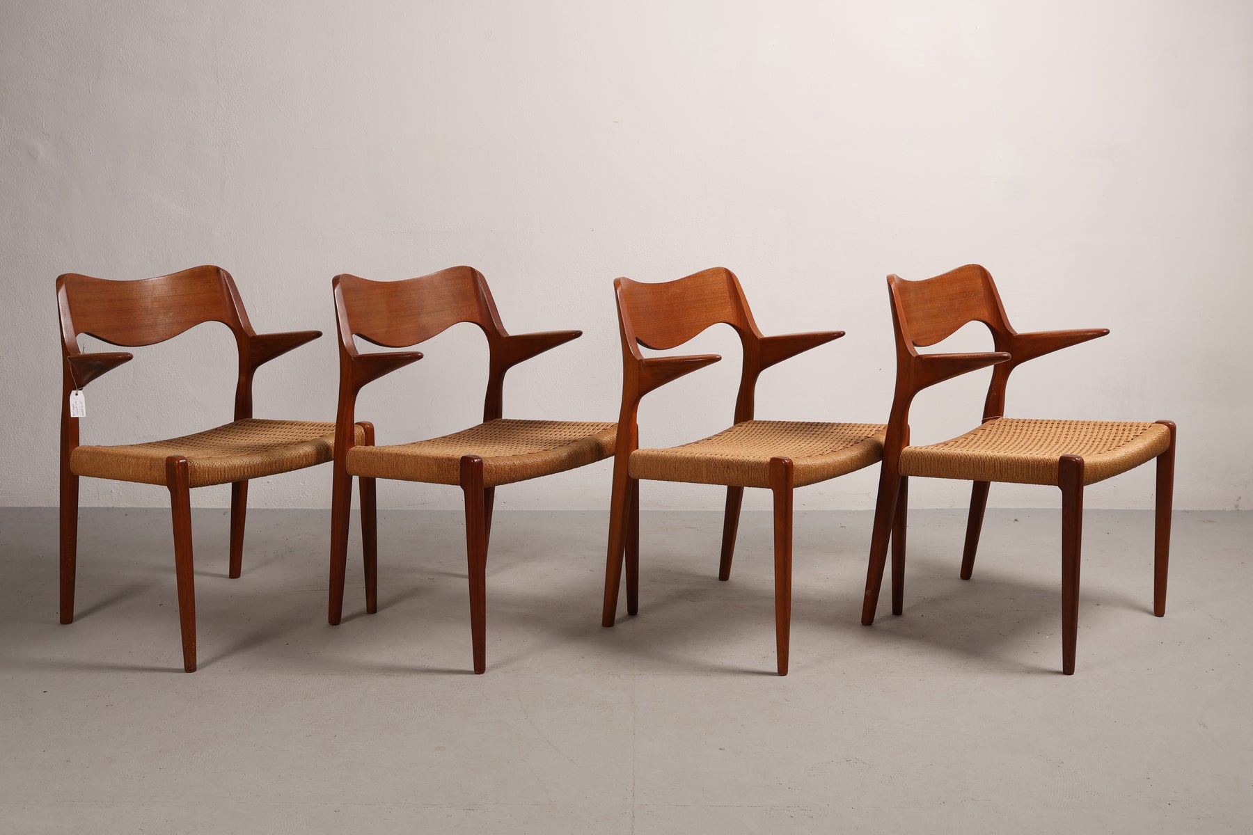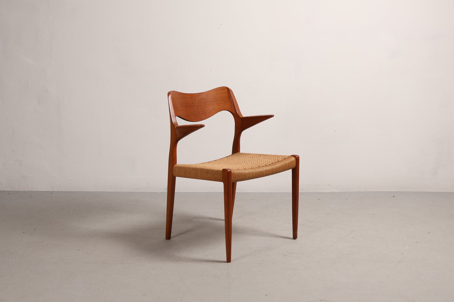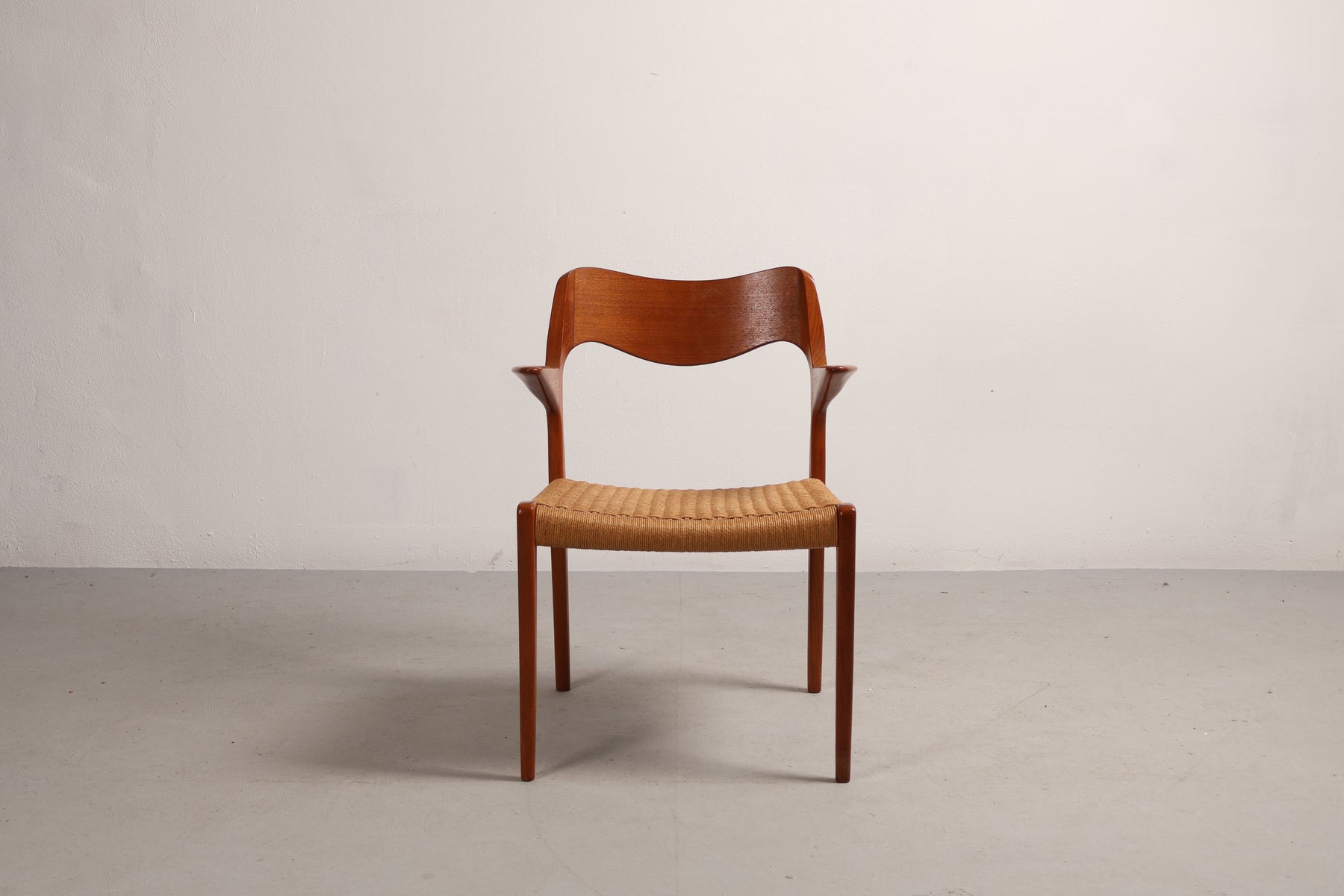 Stuhl „Modell 55“ von Niels Otto Møller, Teak, Papierkordel, 60er, Dänemark