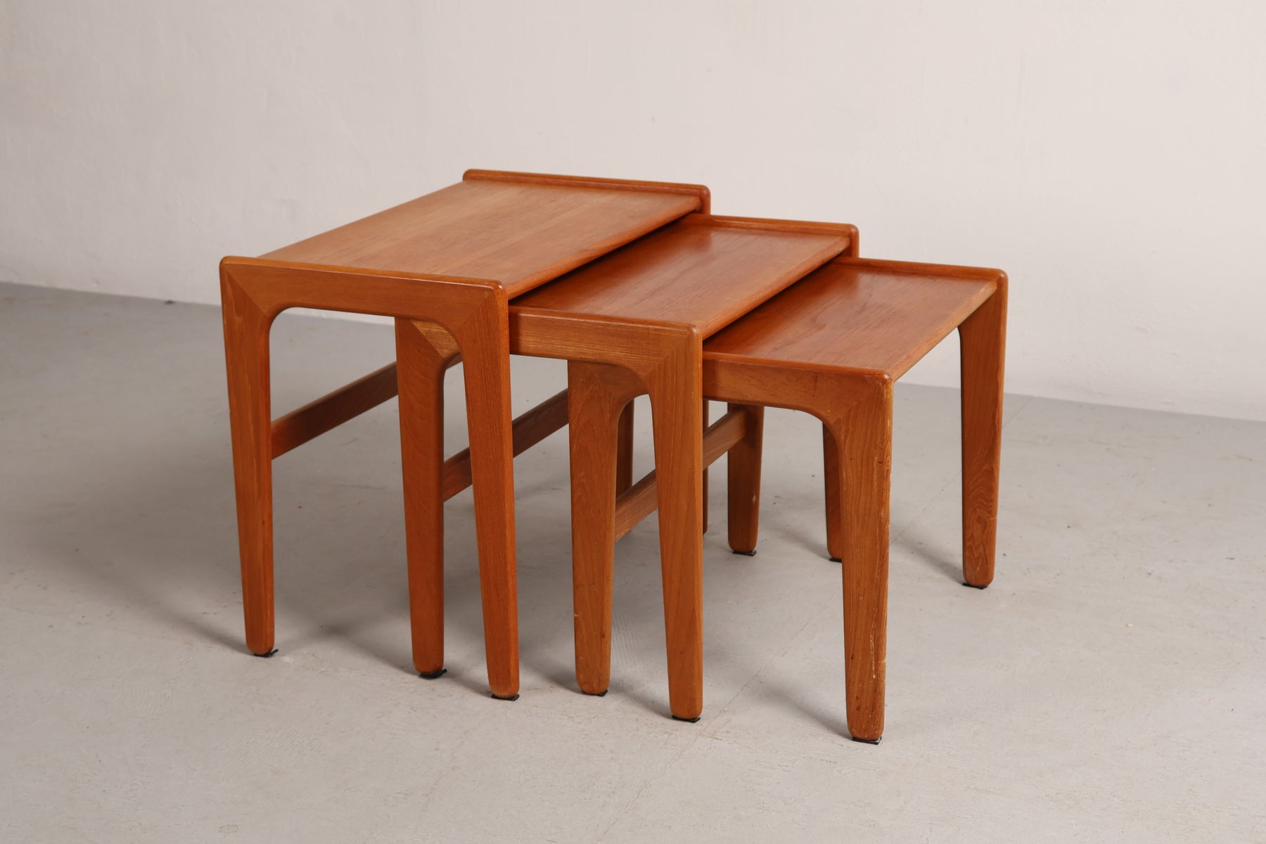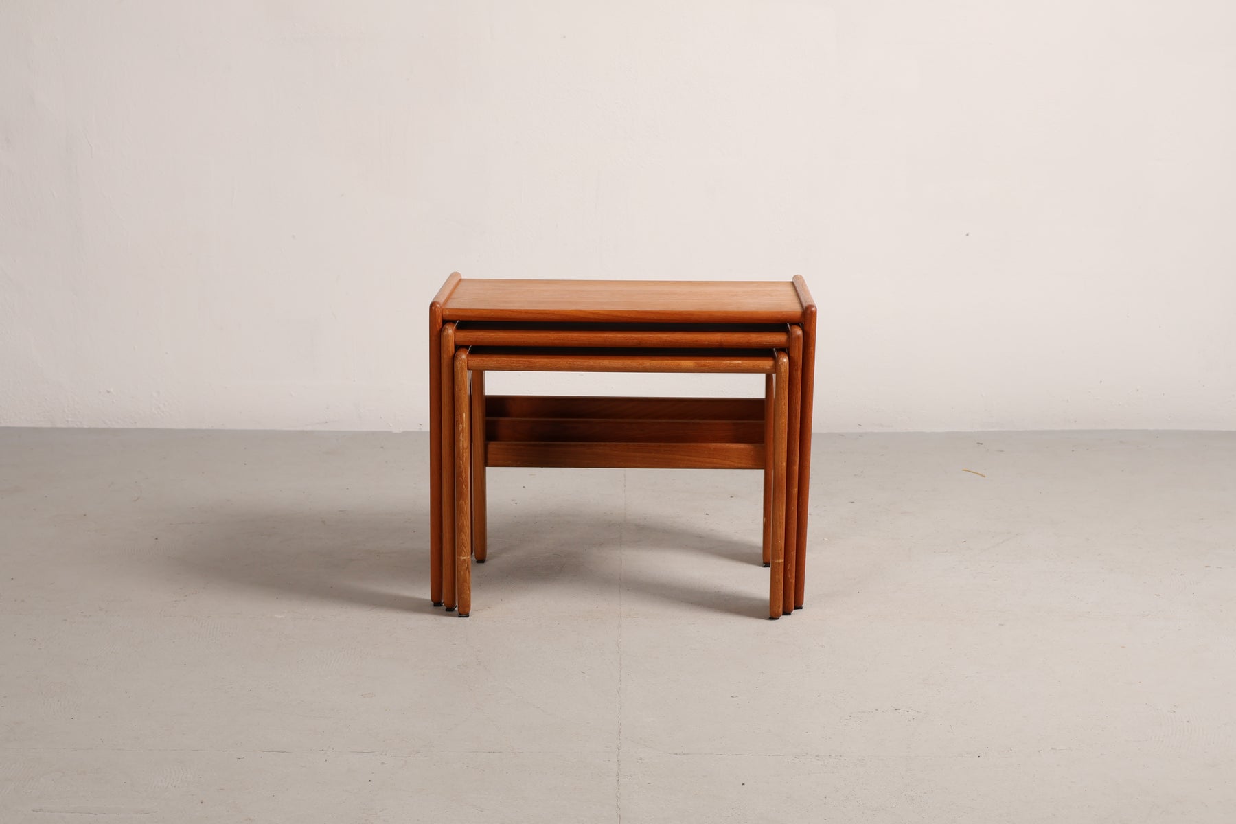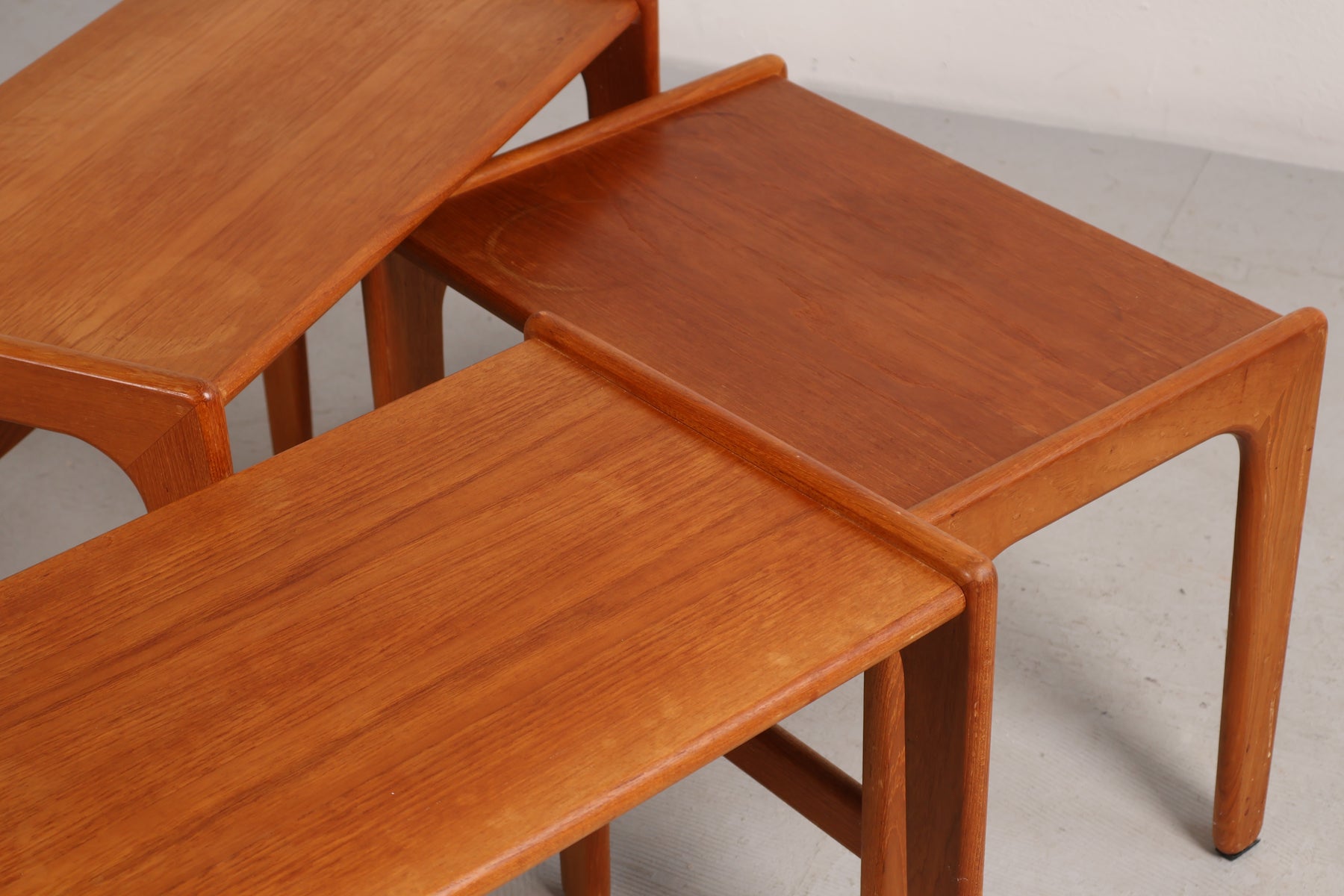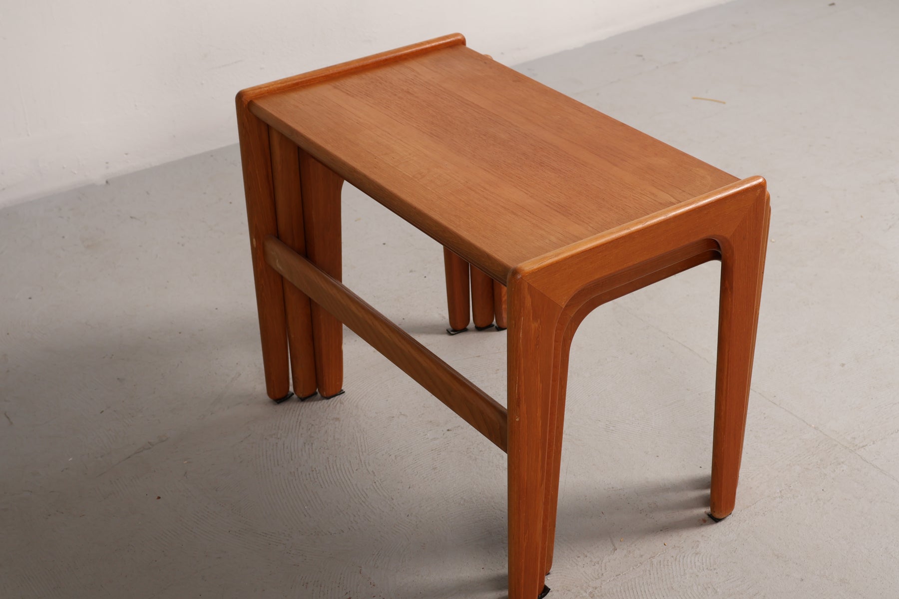 Bijzettafel uit de jaren 60. Gemaakt in Denemarken. Vervaardigd uit teak. Hoogte 49 cm, breedte 61 cm, diepte 37 cm.