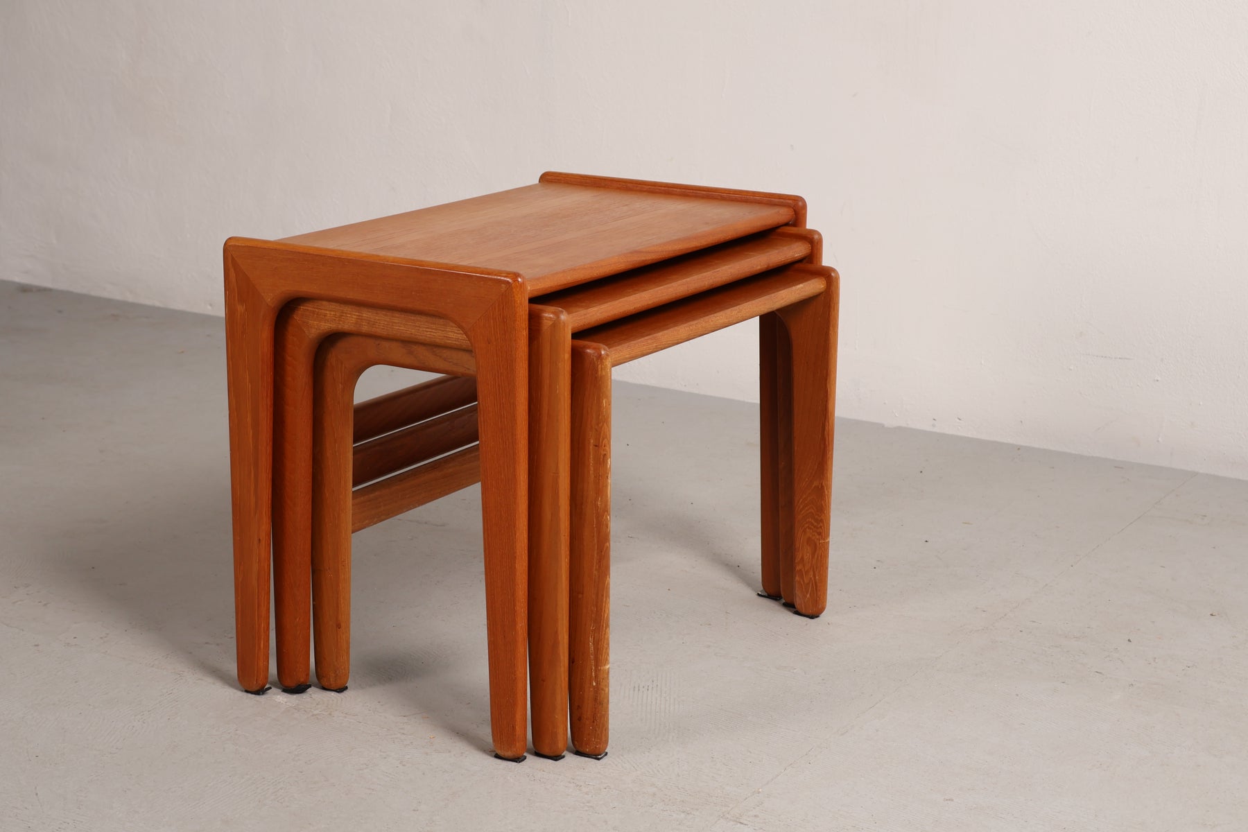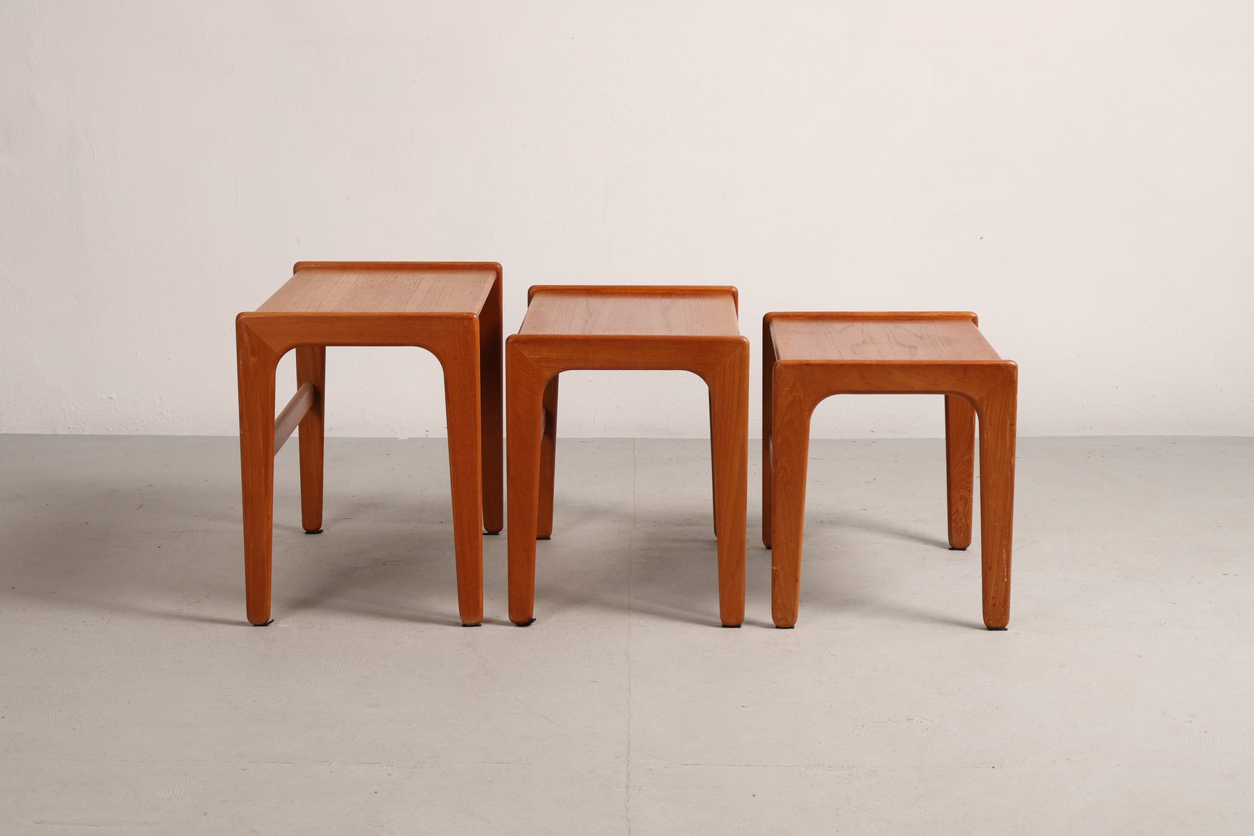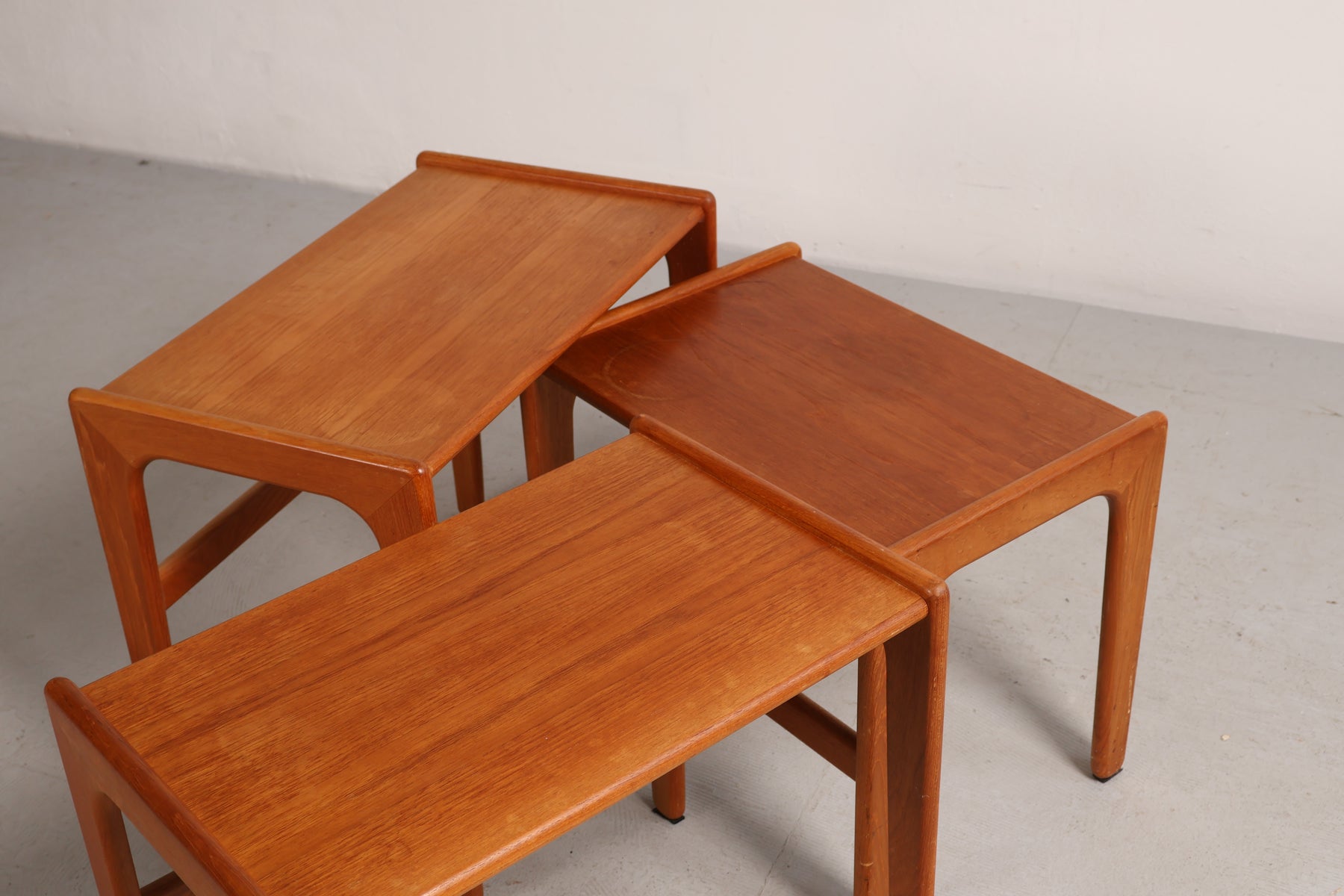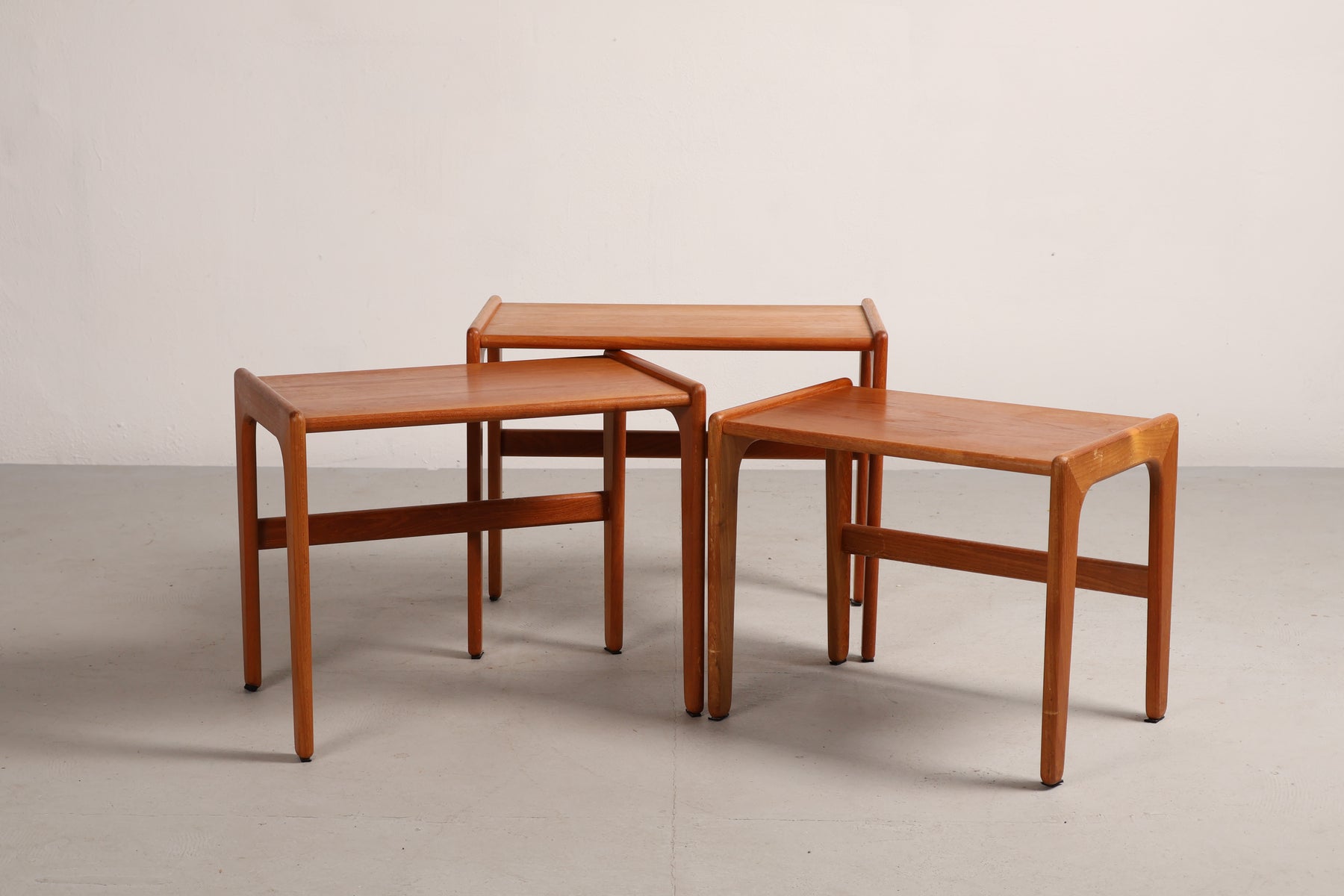 Bijzettafel uit de jaren 60. Gemaakt in Denemarken. Vervaardigd uit teak. Hoogte 49 cm, breedte 61 cm, diepte 37 cm.