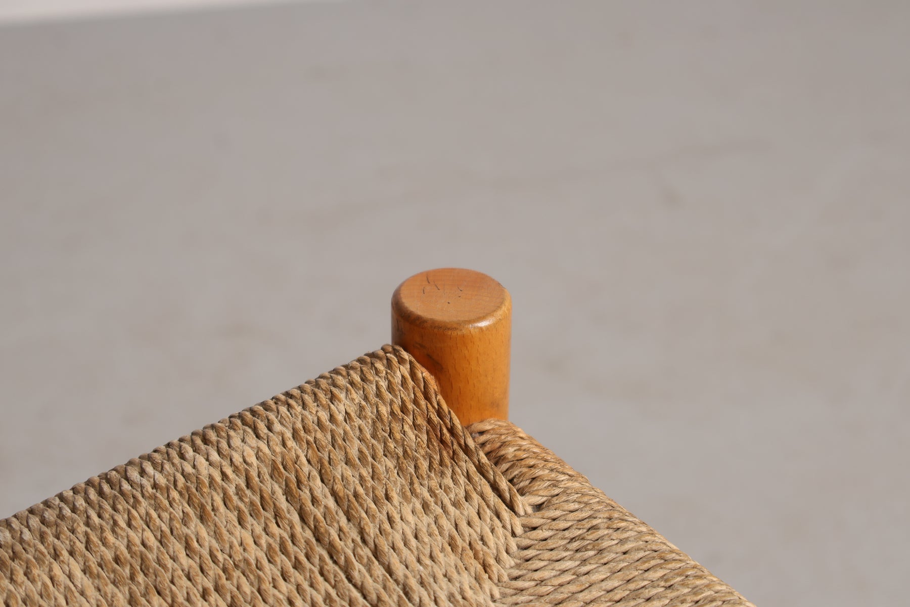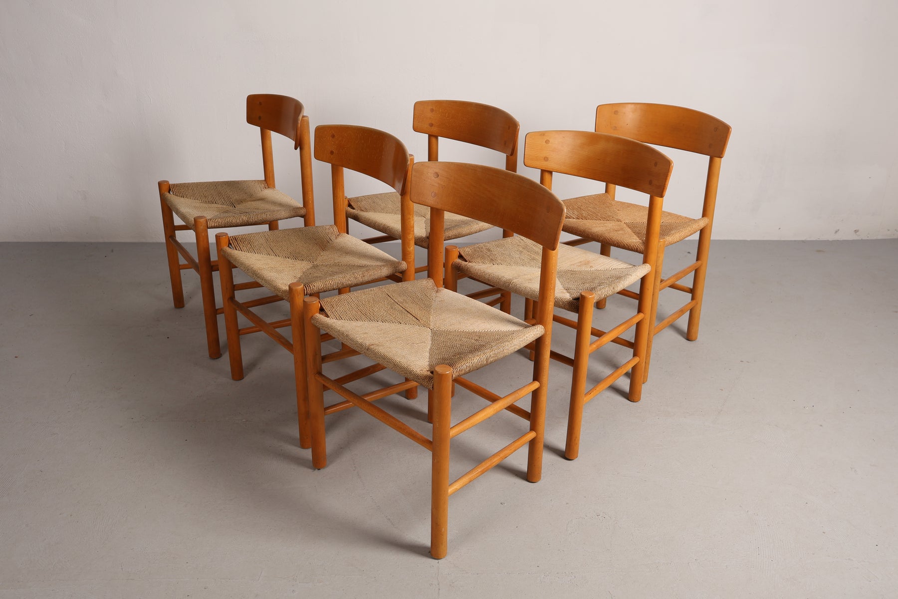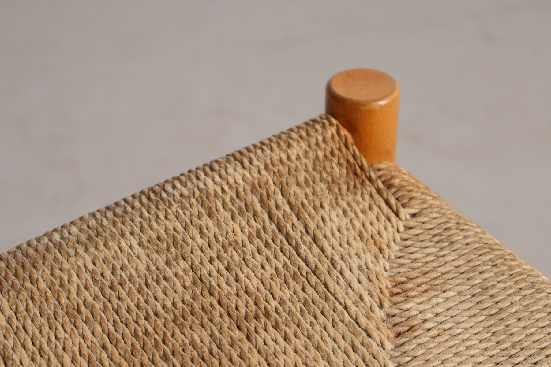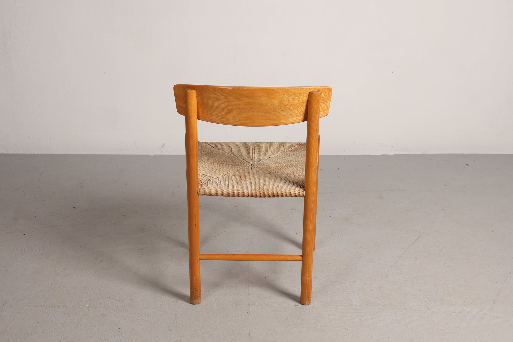 Stoel “J39” uit de jaren 60 van Børge Mogensen. Gemaakt in Denemarken. Vervaardigd uit eiken en papkoord. Hoogte 44 cm, breedte 48 cm, diepte 43 cm.