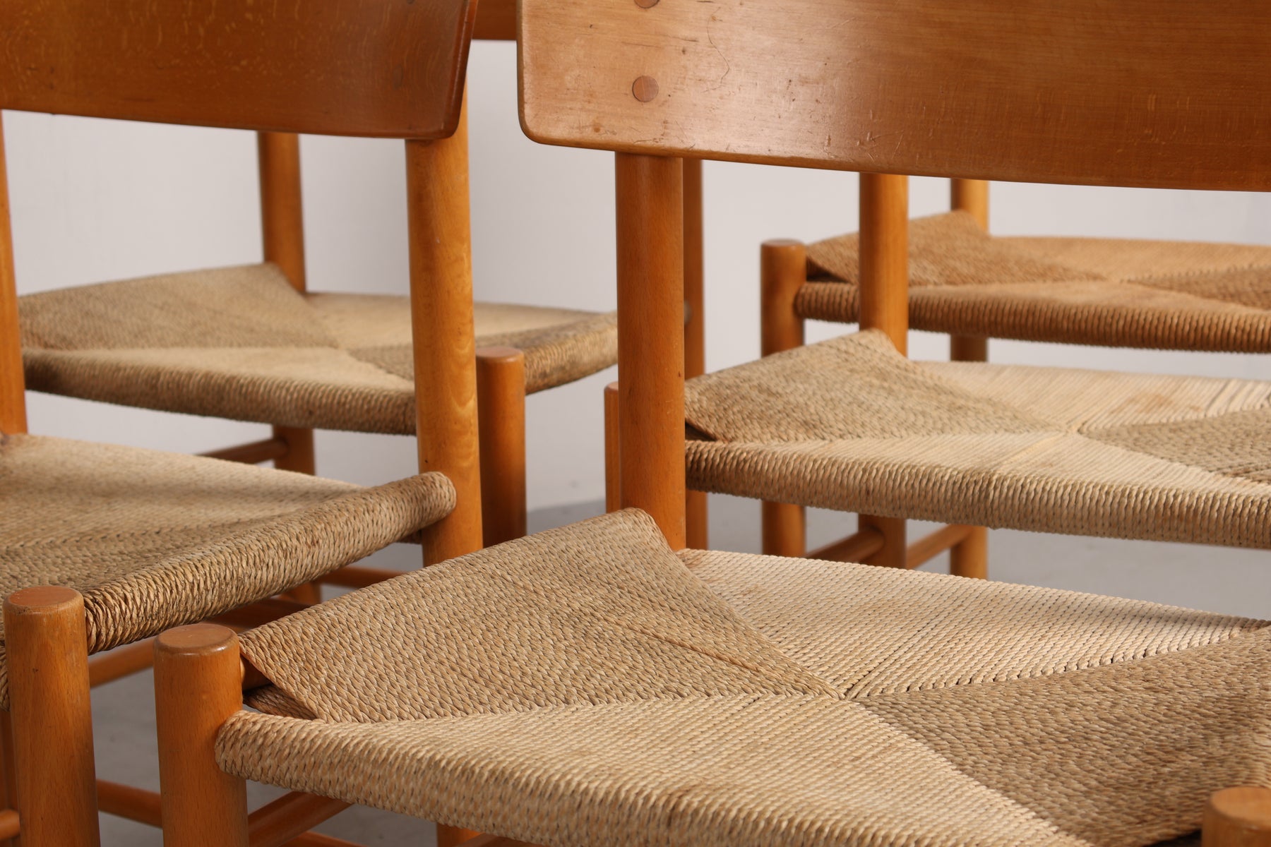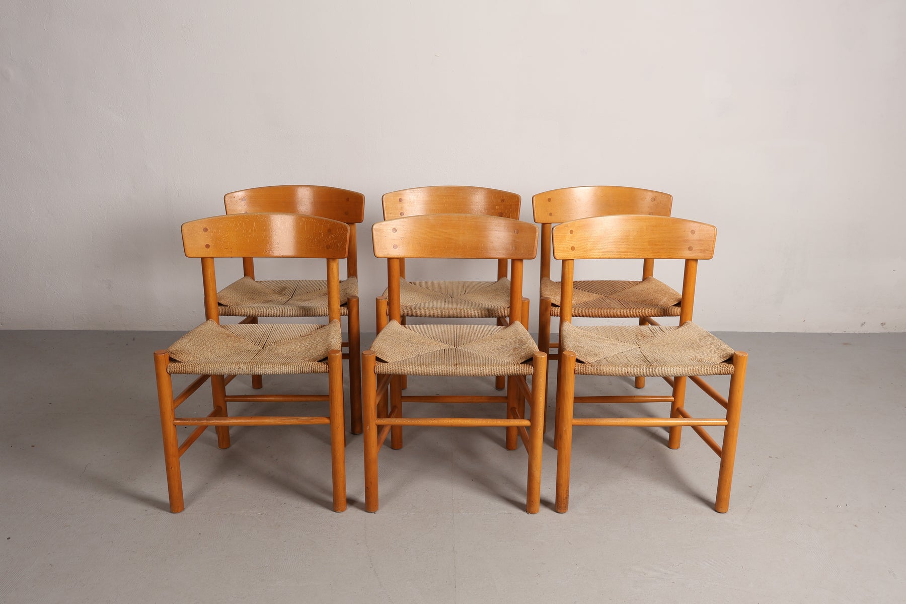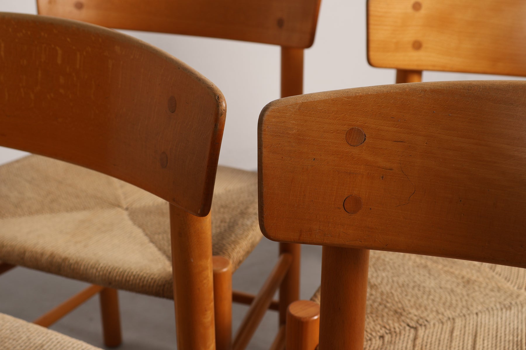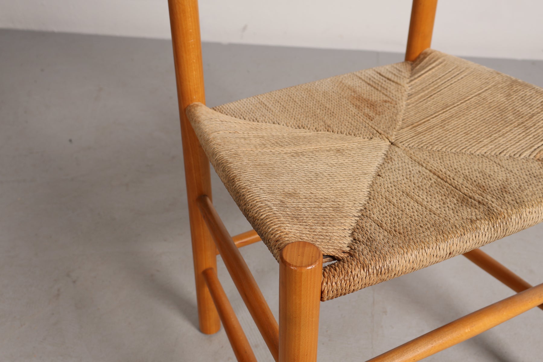 Stoel “J39” uit de jaren 60 van Børge Mogensen. Gemaakt in Denemarken. Vervaardigd uit eiken en papkoord. Hoogte 44 cm, breedte 48 cm, diepte 43 cm.