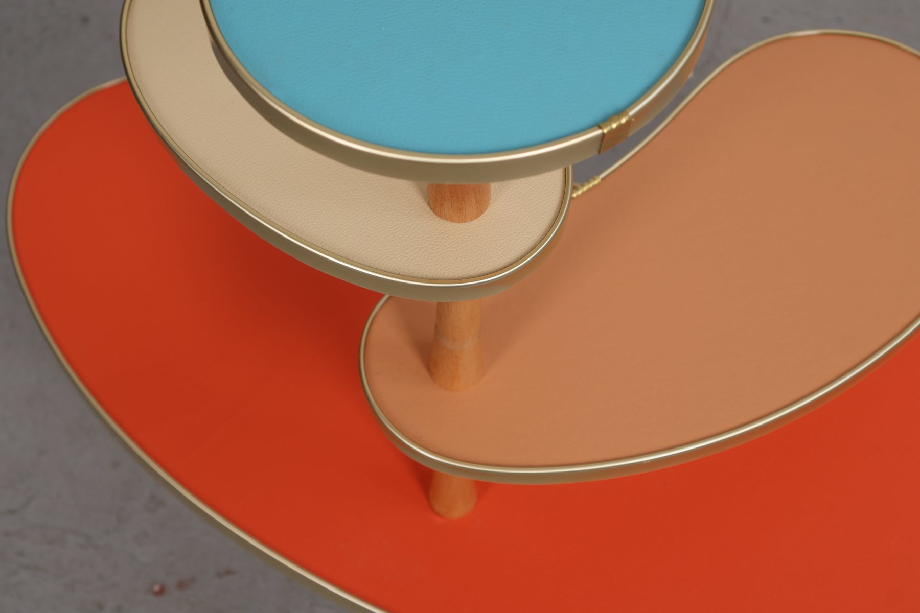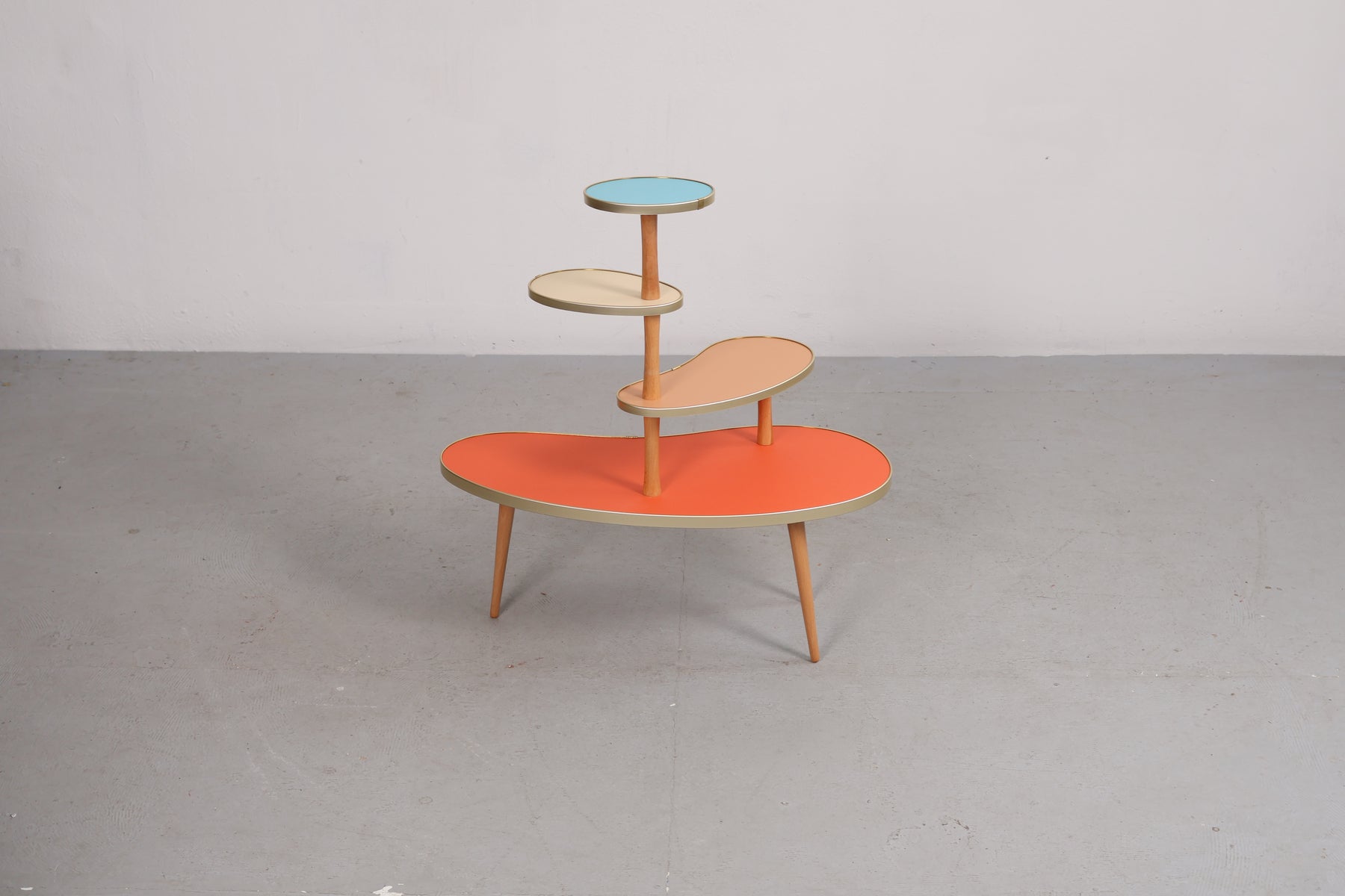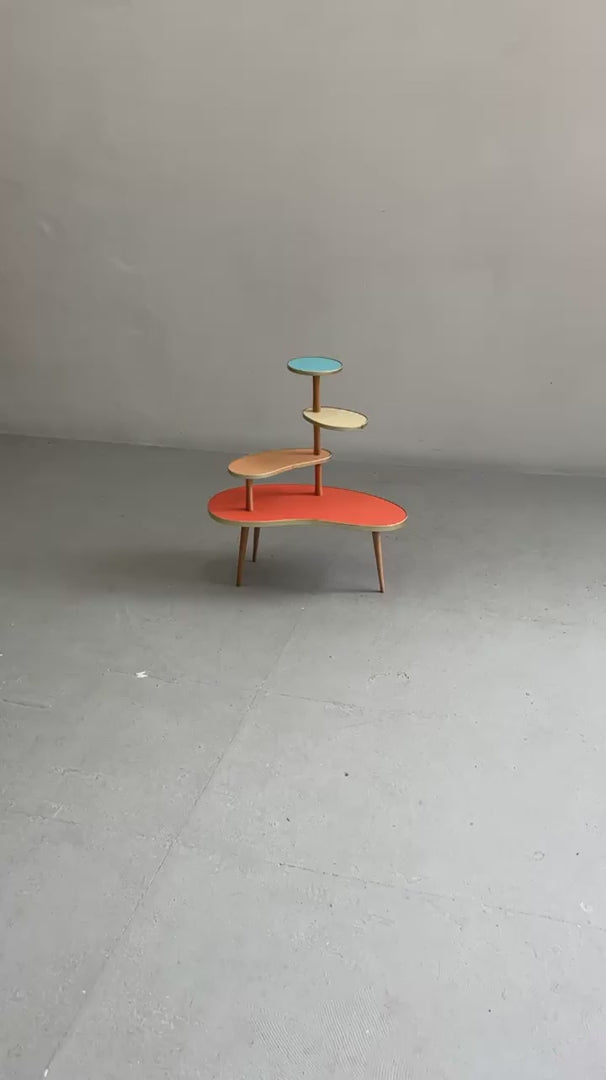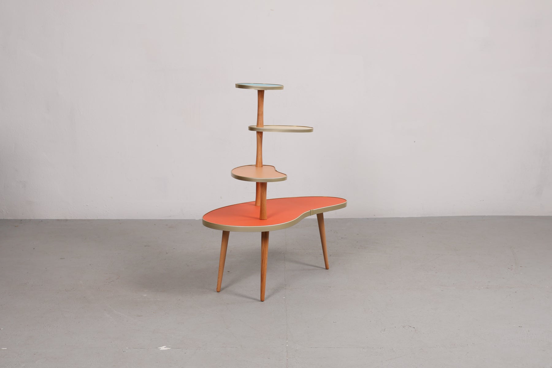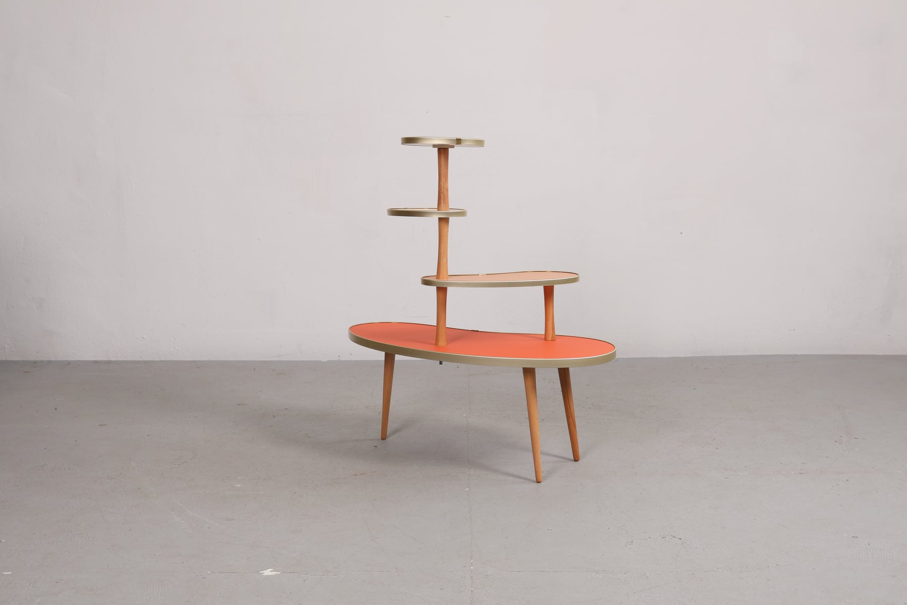 Etagère uit de jaren 50. Gemaakt in Duitsland. Hoogte 79 cm, breedte 73 cm, diepte 37 cm.