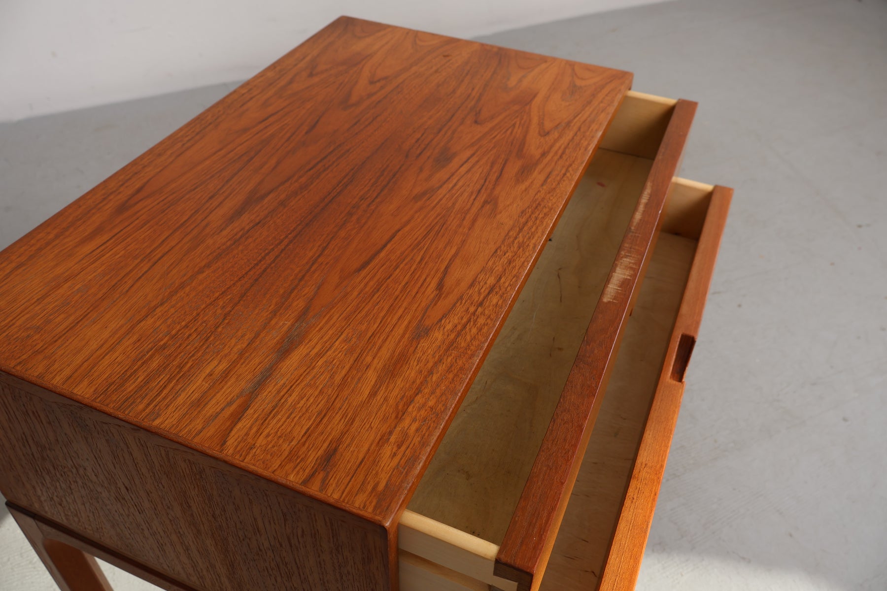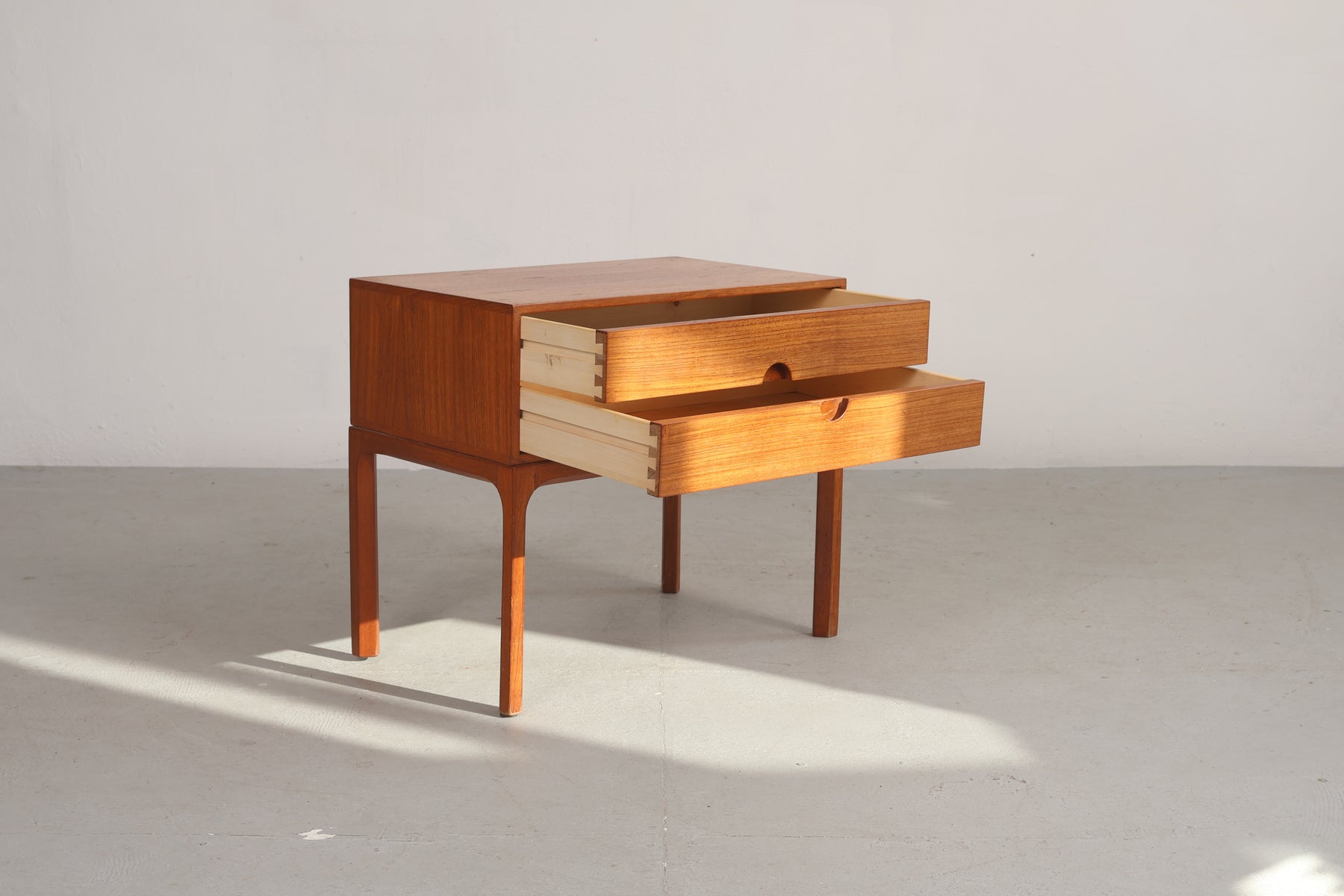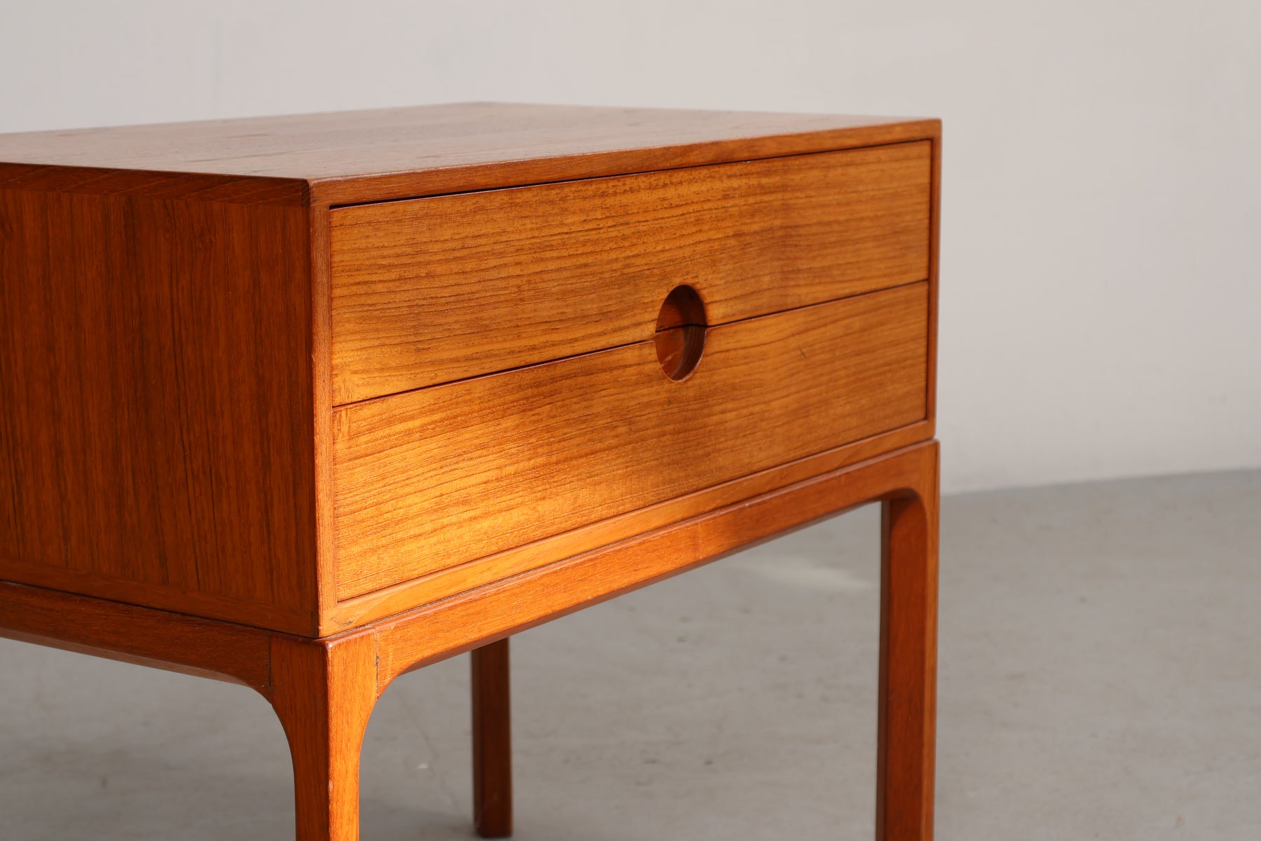 Bijzettafel “Model 384” uit de jaren 60 van Aksel Kjaersgaard voor Odder. Gemaakt in Denemarken. Vervaardigd uit teak. Hoogte 52 cm, breedte 59 cm, diepte 36 cm.
