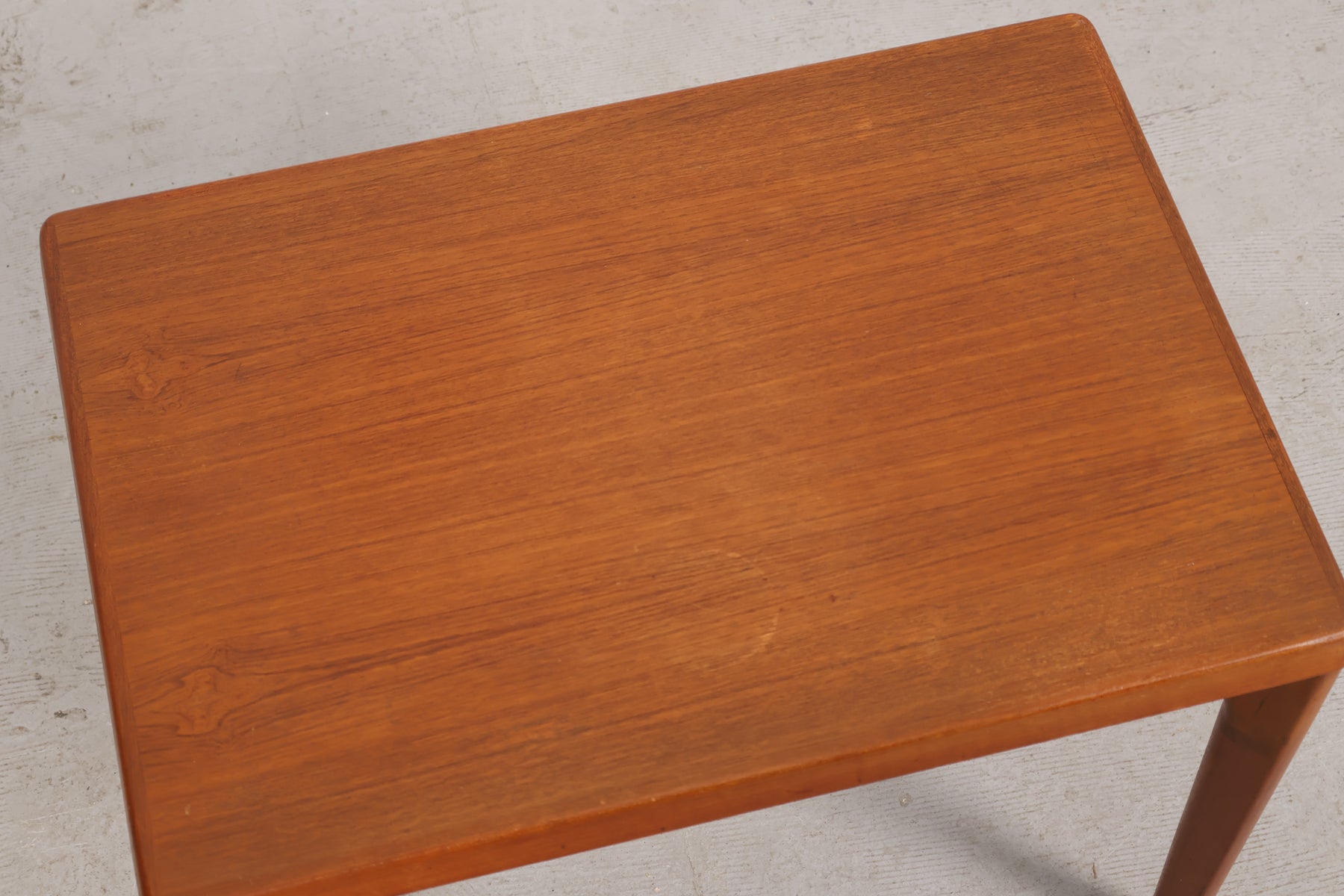 Couchtisch aus den 60er-Jahren von Henning Kjærnulf. Hergestellt in Dänemark. Gefertigt aus Teak. Höhe 51 cm, Breite 65 cm, Tiefe 45 cm.