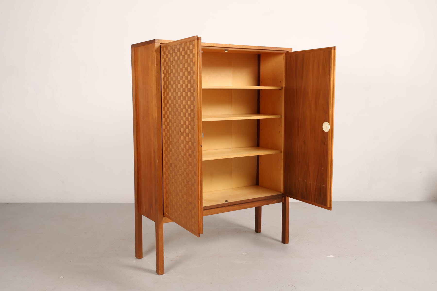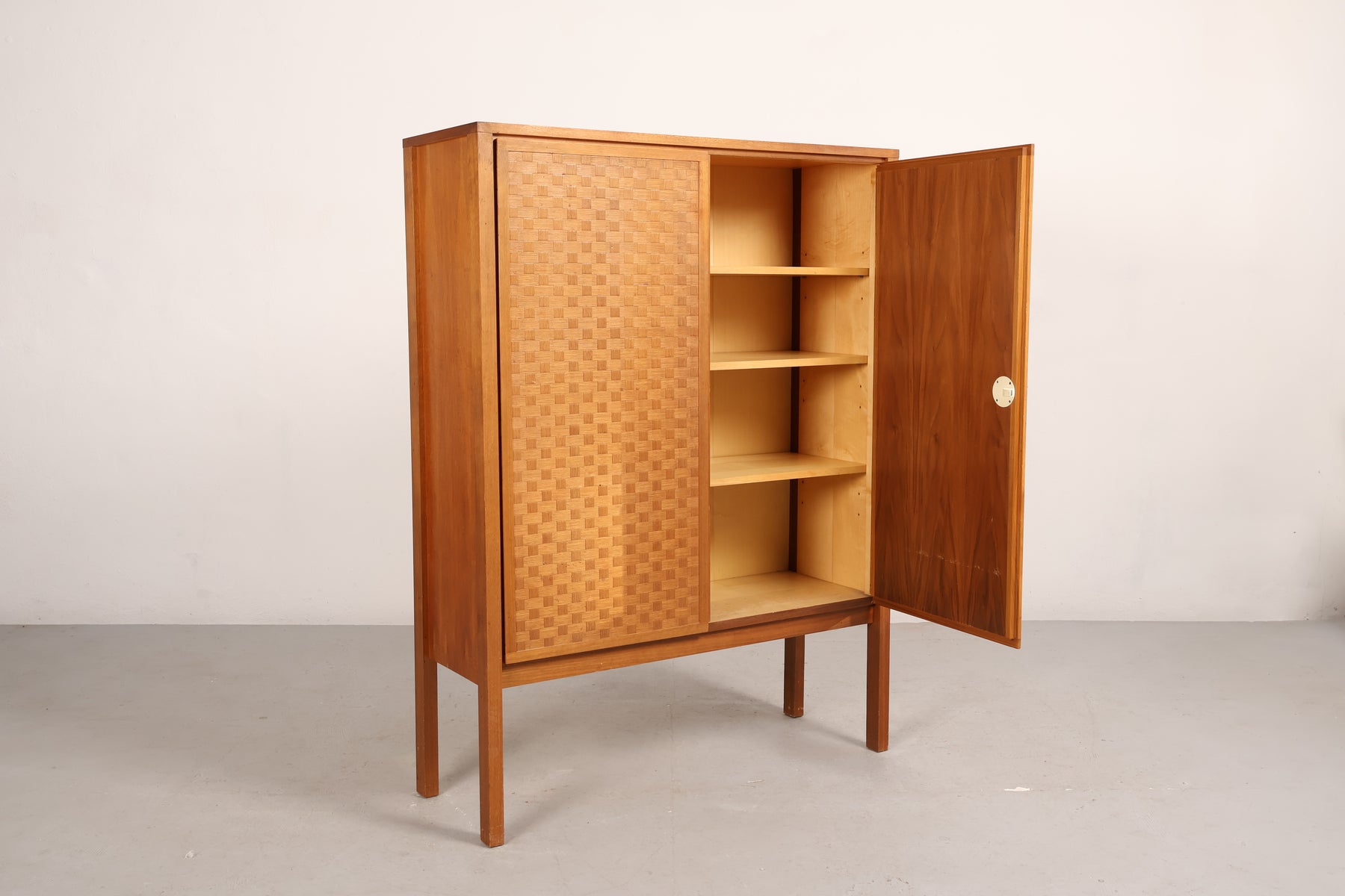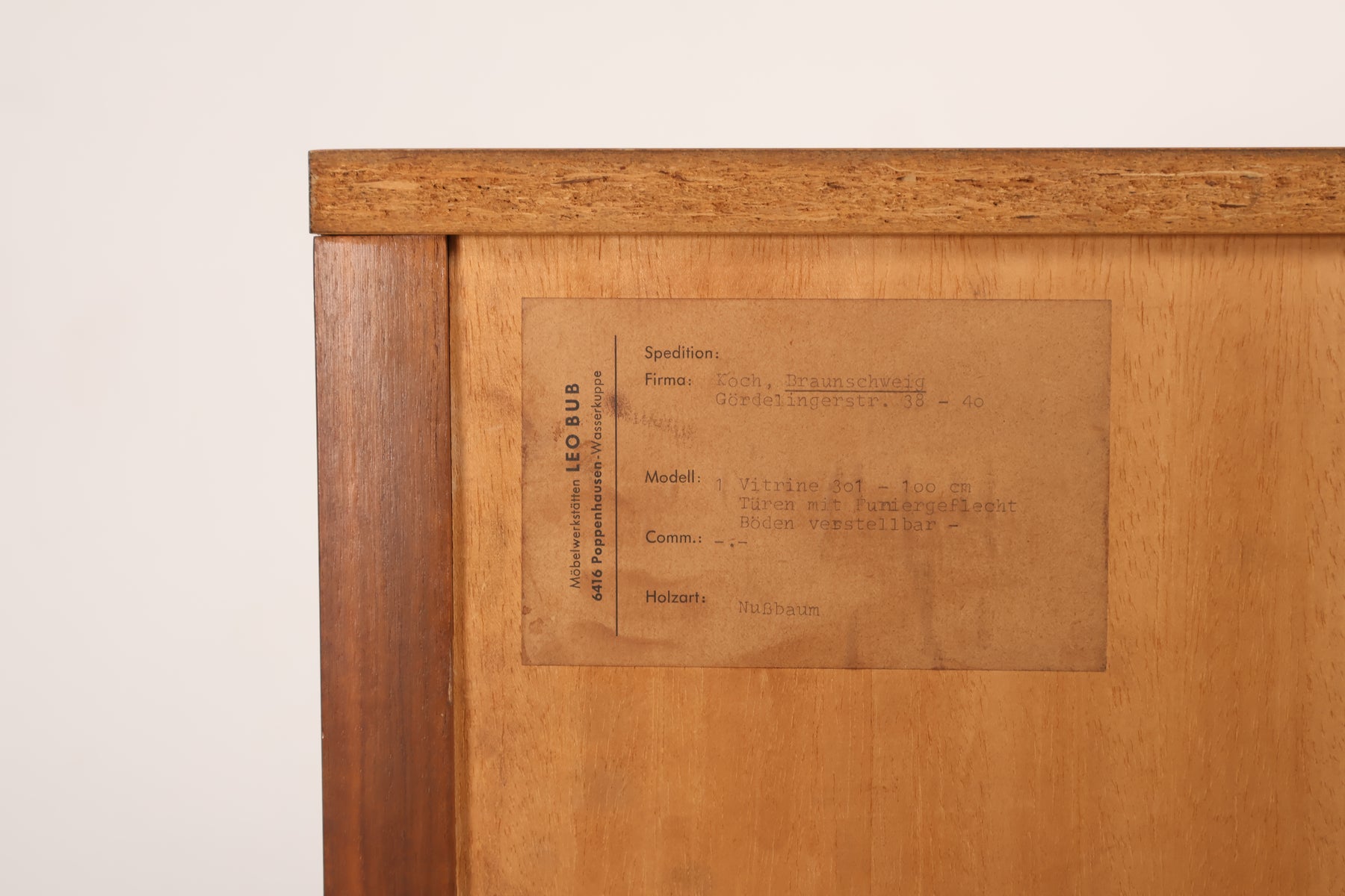 Highboard aus den 60er-Jahren von Leo Bub. Hergestellt in Deutschland. Gefertigt aus Nussbaum. Höhe 135 cm, Breite 100 cm, Tiefe 35 cm.