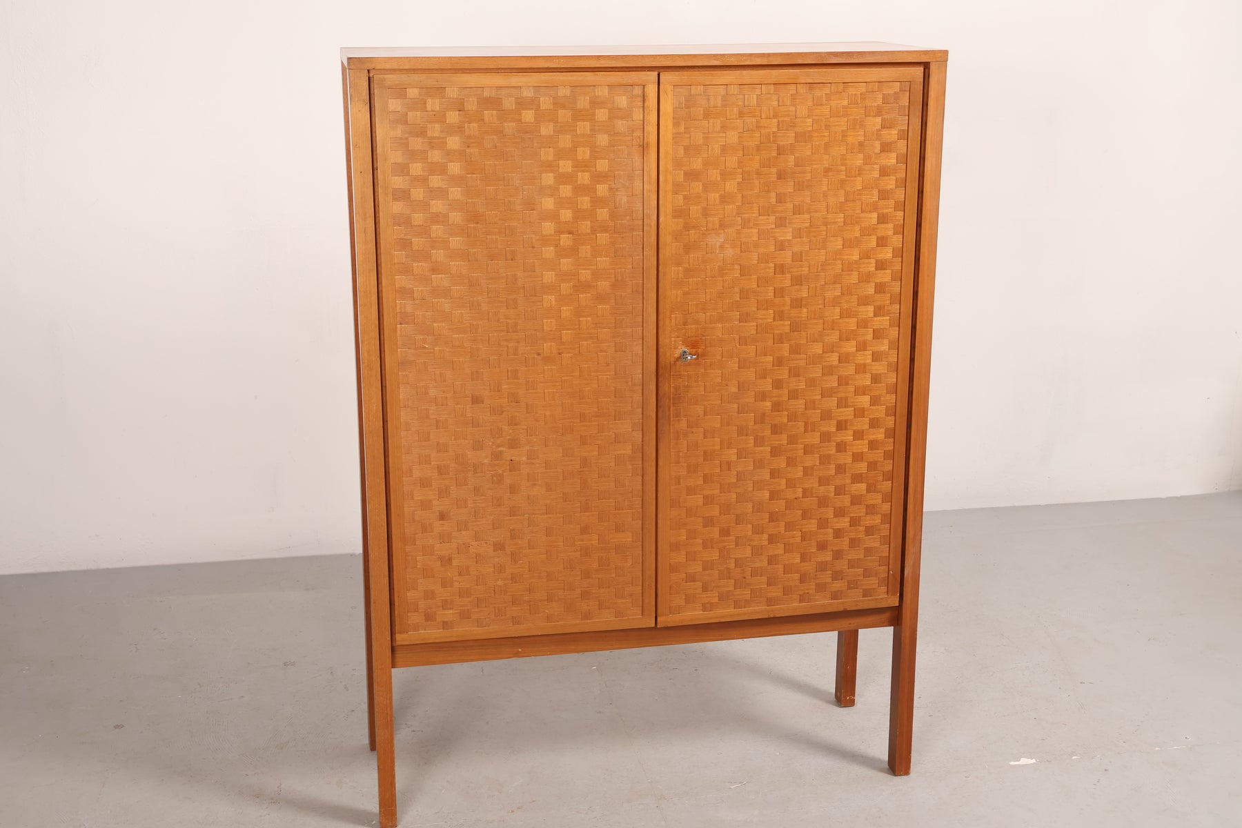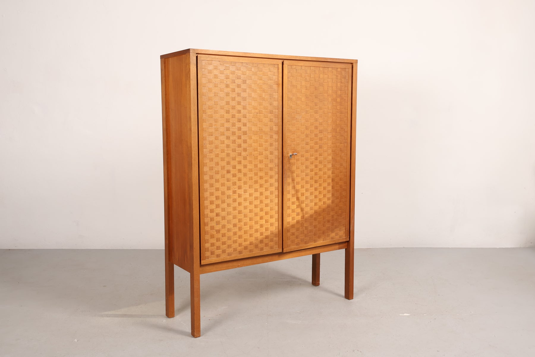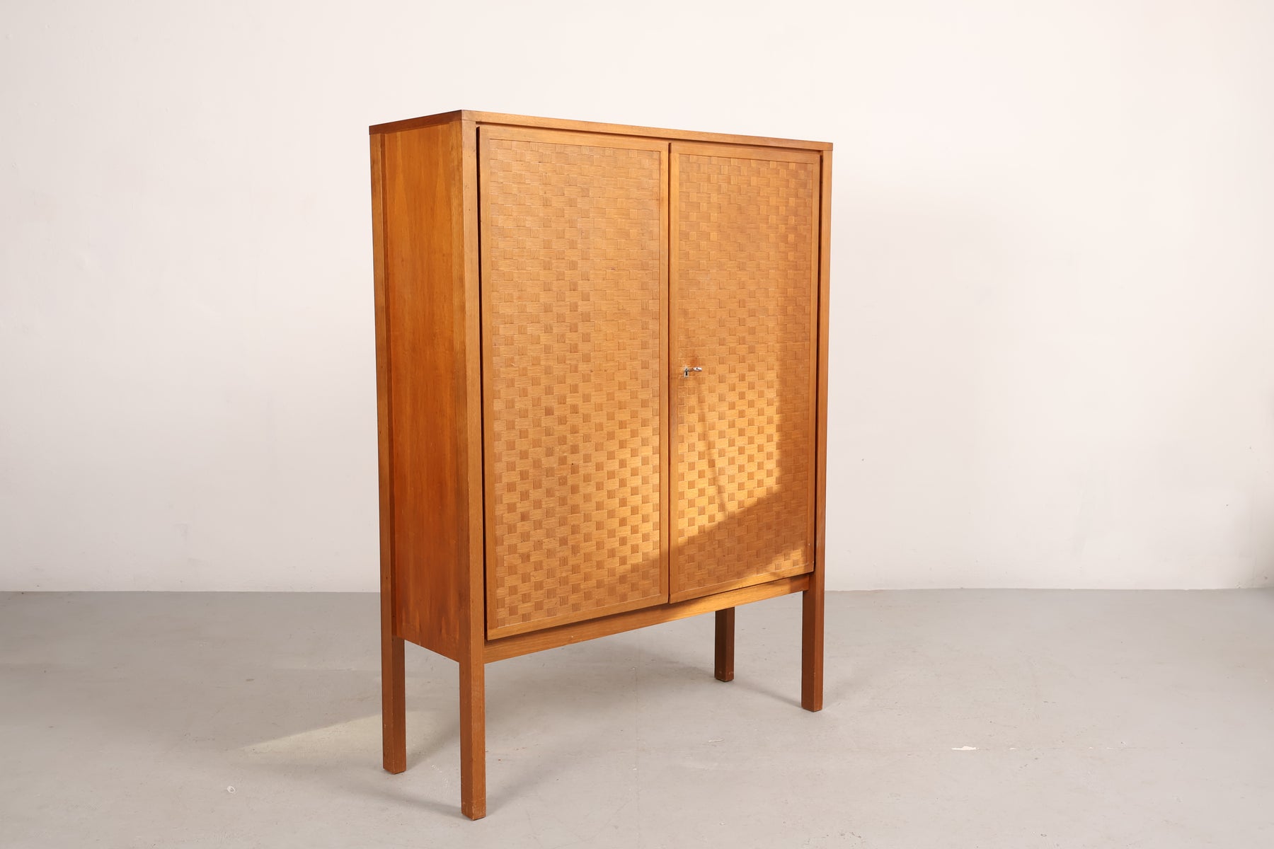 Highboard aus den 60er-Jahren von Leo Bub. Hergestellt in Deutschland. Gefertigt aus Nussbaum. Höhe 135 cm, Breite 100 cm, Tiefe 35 cm.