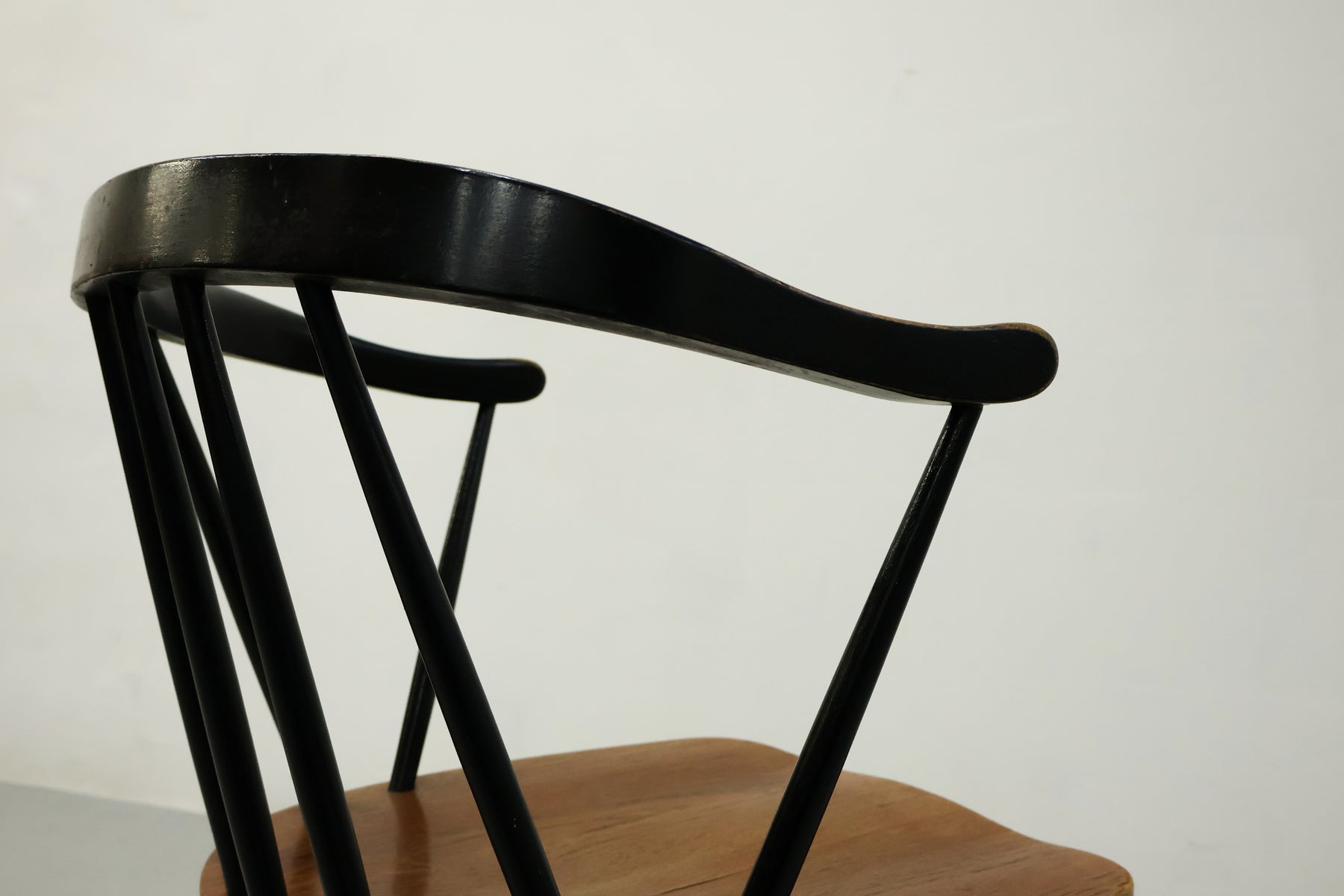 Stoel uit de jaren 50 voor Fanett. Gemaakt in Denemarken. Vervaardigd uit hout. Hoogte 76 cm, breedte 51 cm, diepte 50 cm.