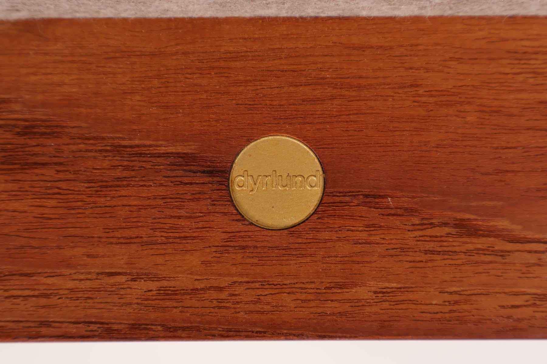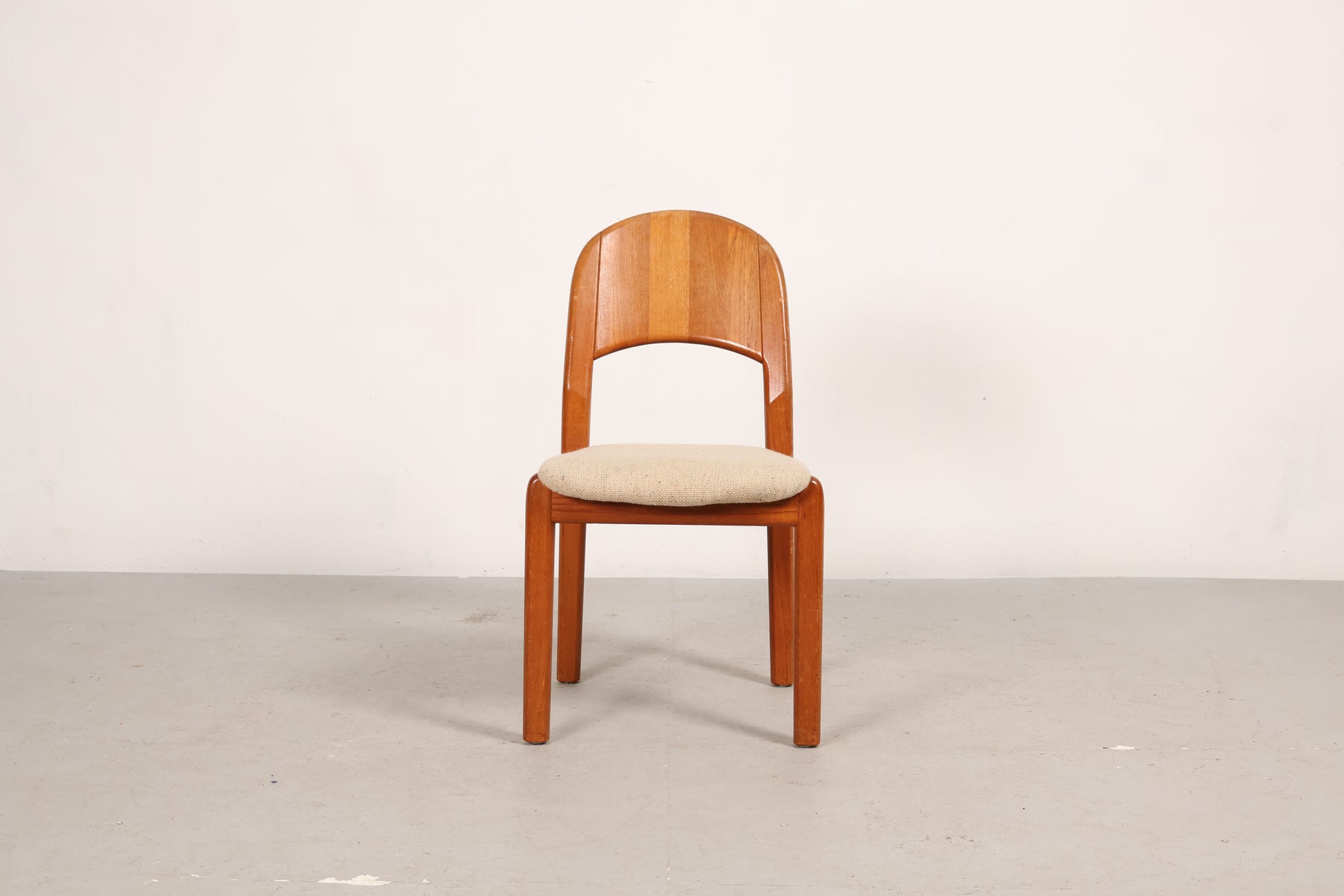 Stuhl aus den 60er-Jahren für Dyrlund. Hergestellt in Dänemark. Gefertigt aus Teak. Höhe 87 cm, Breite 47 cm, Tiefe 44 cm.